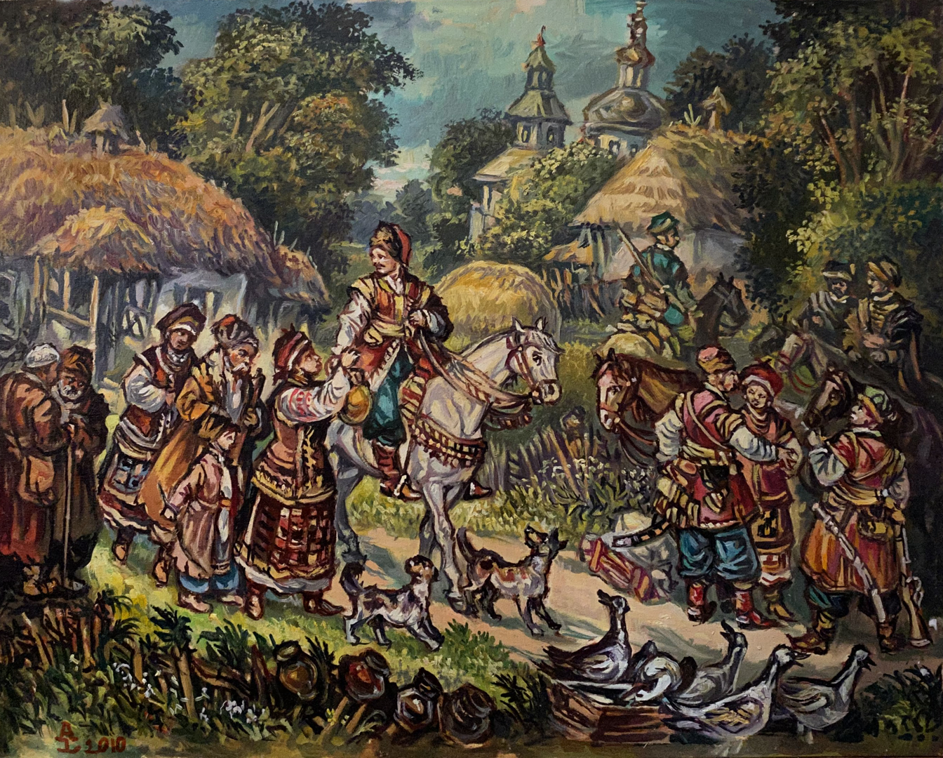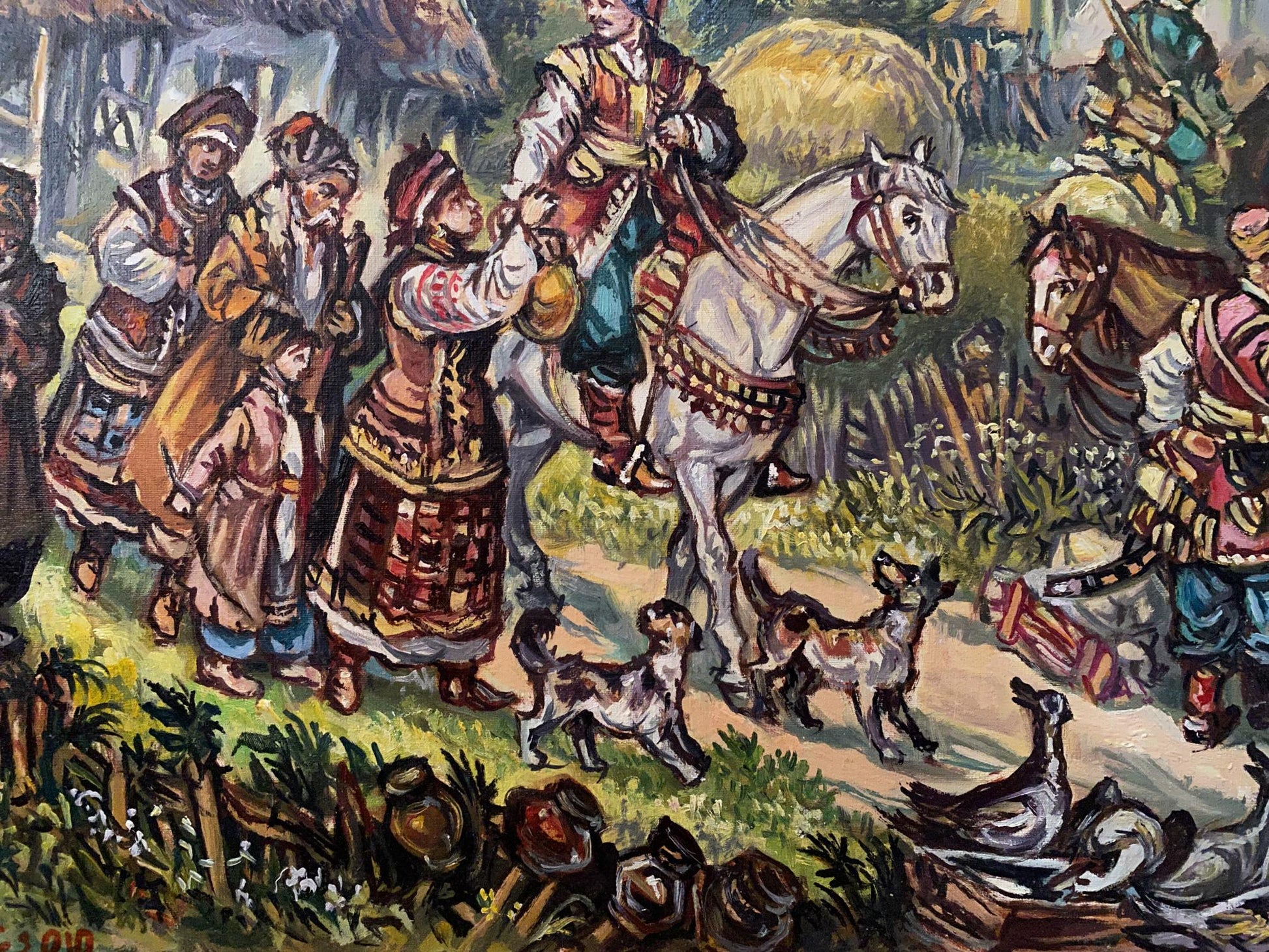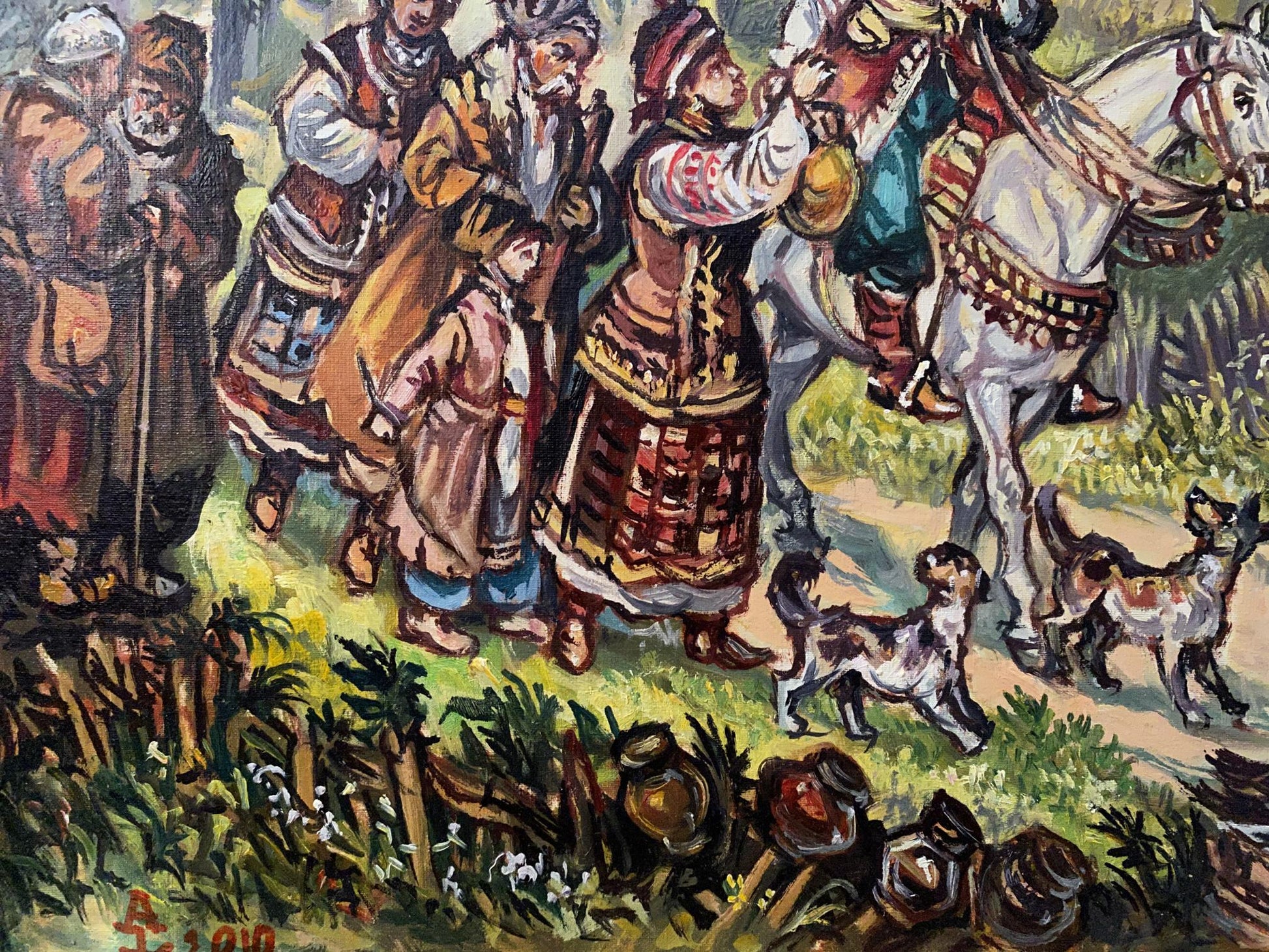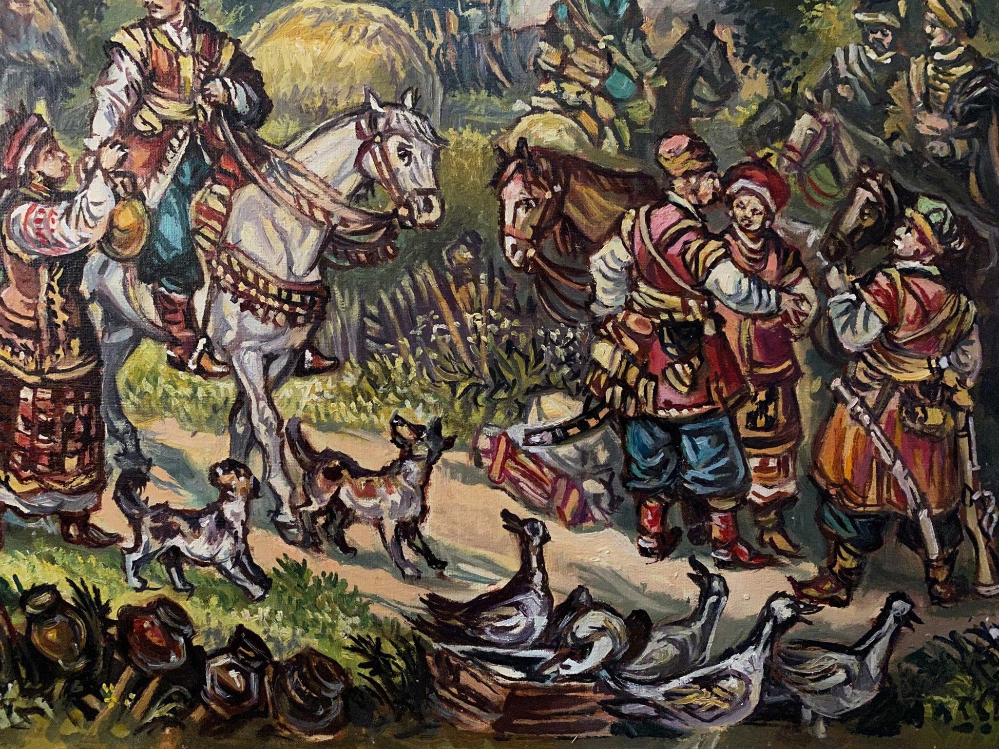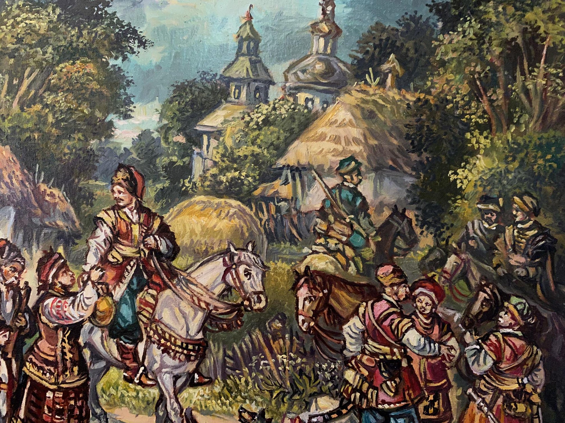 Oil painting Seeing off the Cossacks Alexander Arkadievich Litvinov