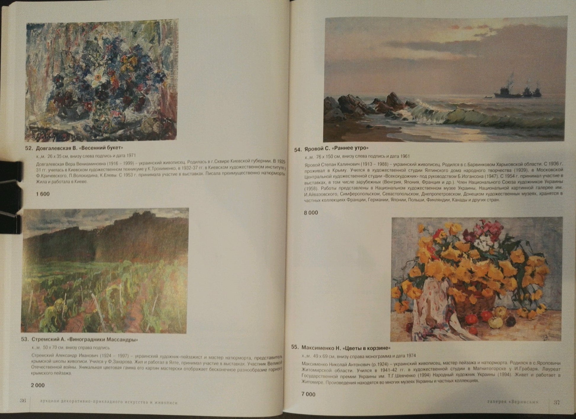Personal exhibitions were held in 1956 in Yalta, in 1960 and 1964 in Simferopol, Sevastopol and Yalta.