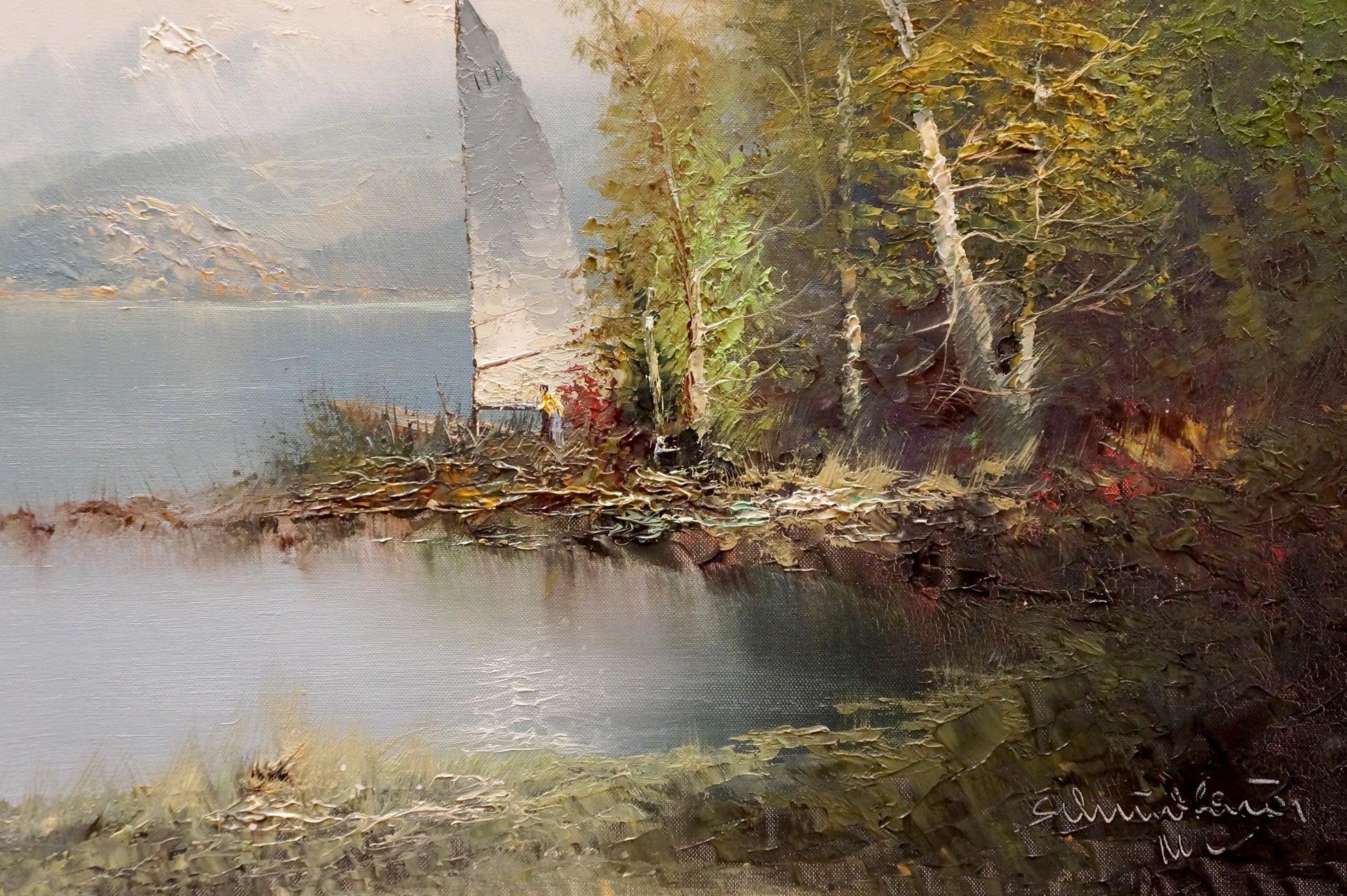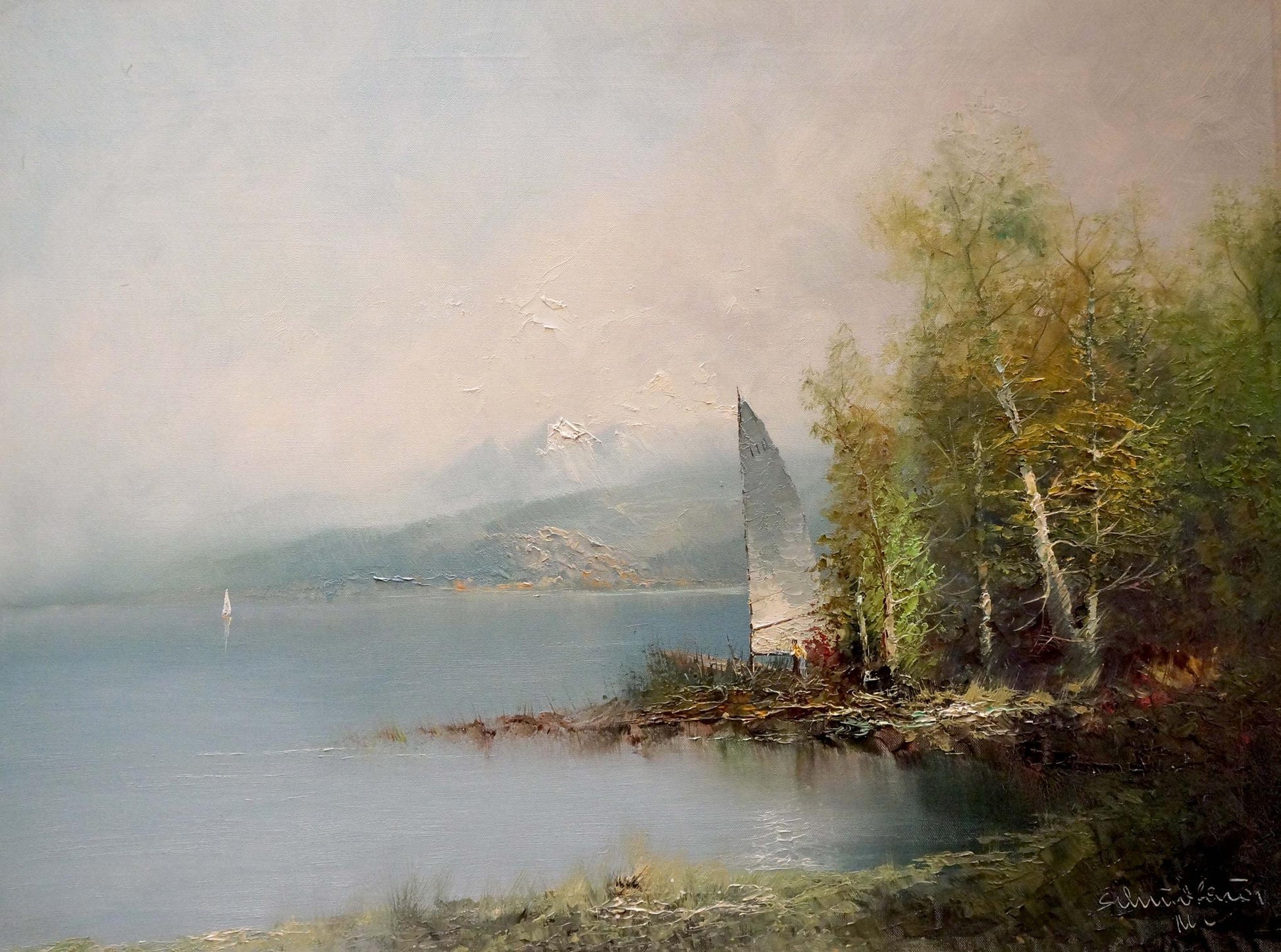 Oil painting Shore landscape H. Schumacher