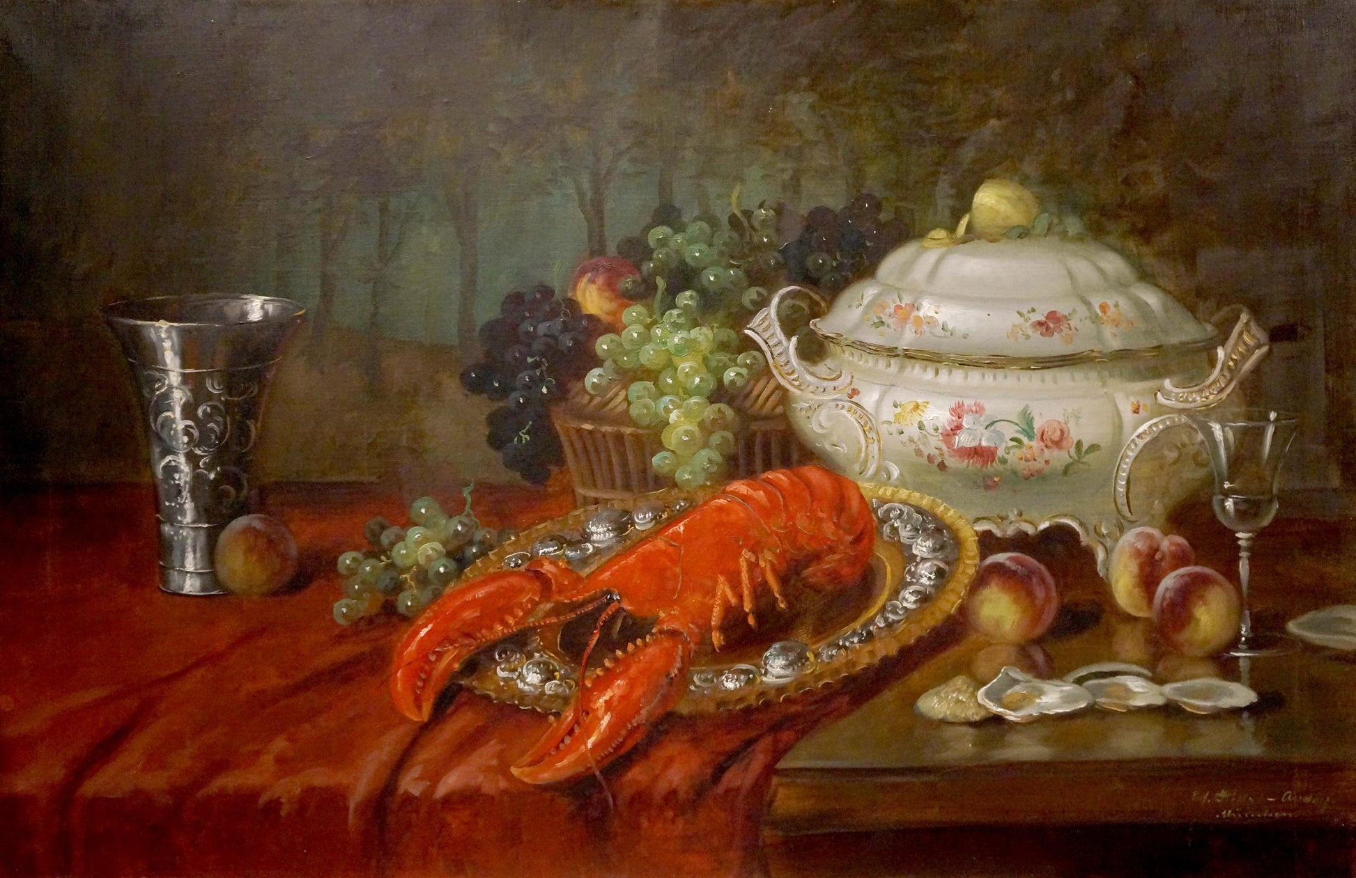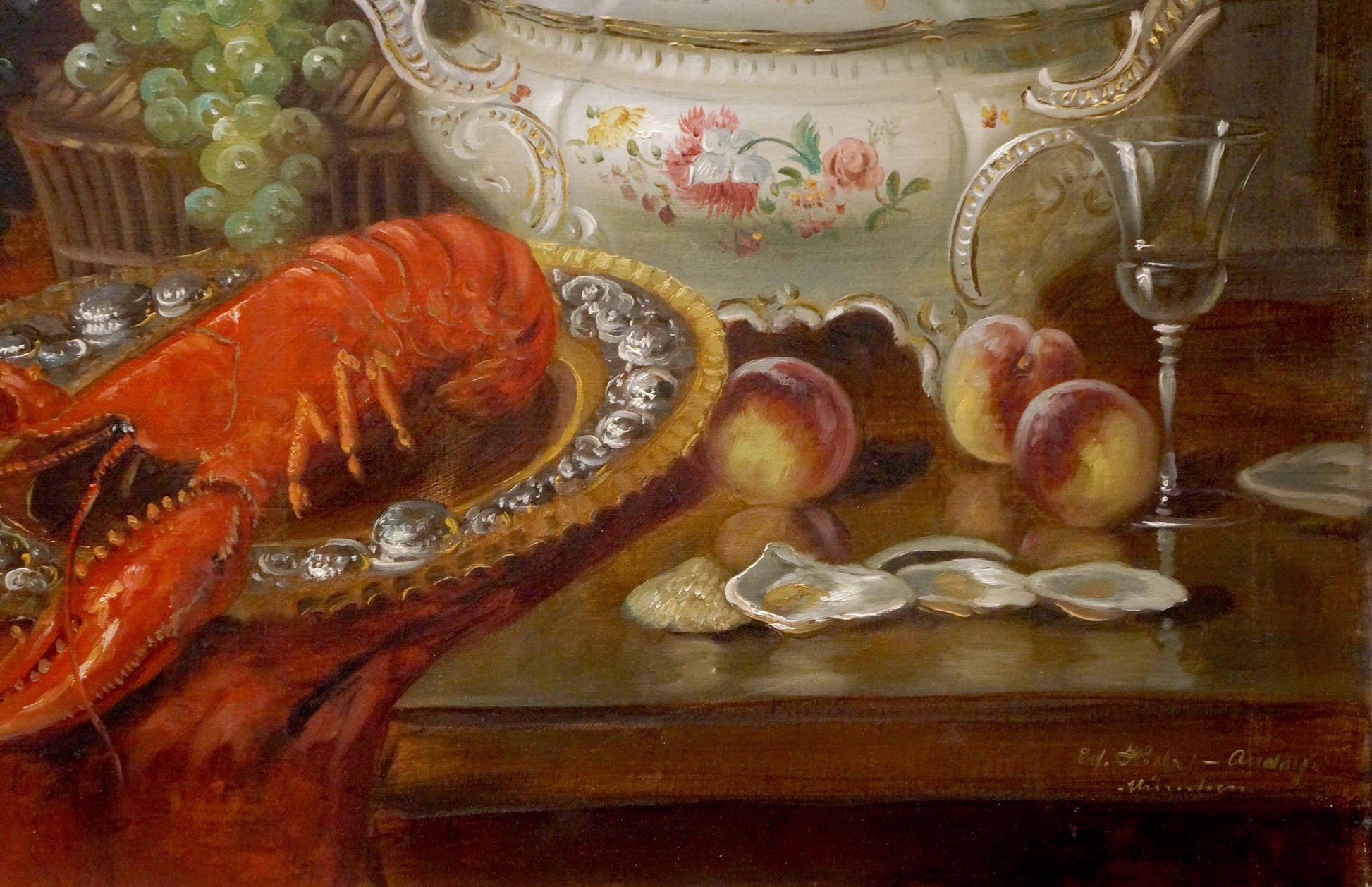 Oil painting Shrimp on the table Eduard Huber-Andorf