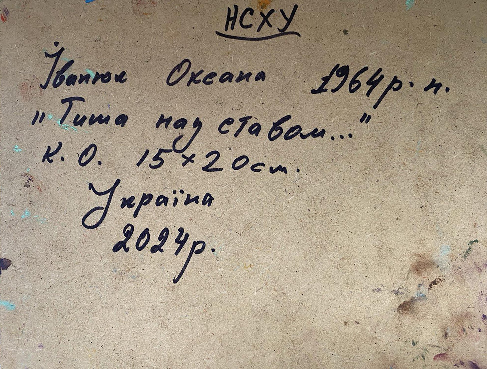 Ivanyuk Oksana works in the landscape and still life genre. Personal exhibitions: Kyiv, Museum of Ukrainian Heritage; T. Shevchenko National Museum; the diplomatic mission of Ukraine to the USA (California) and others. She has participated in numerous exhibitions both in Ukraine and abroad.