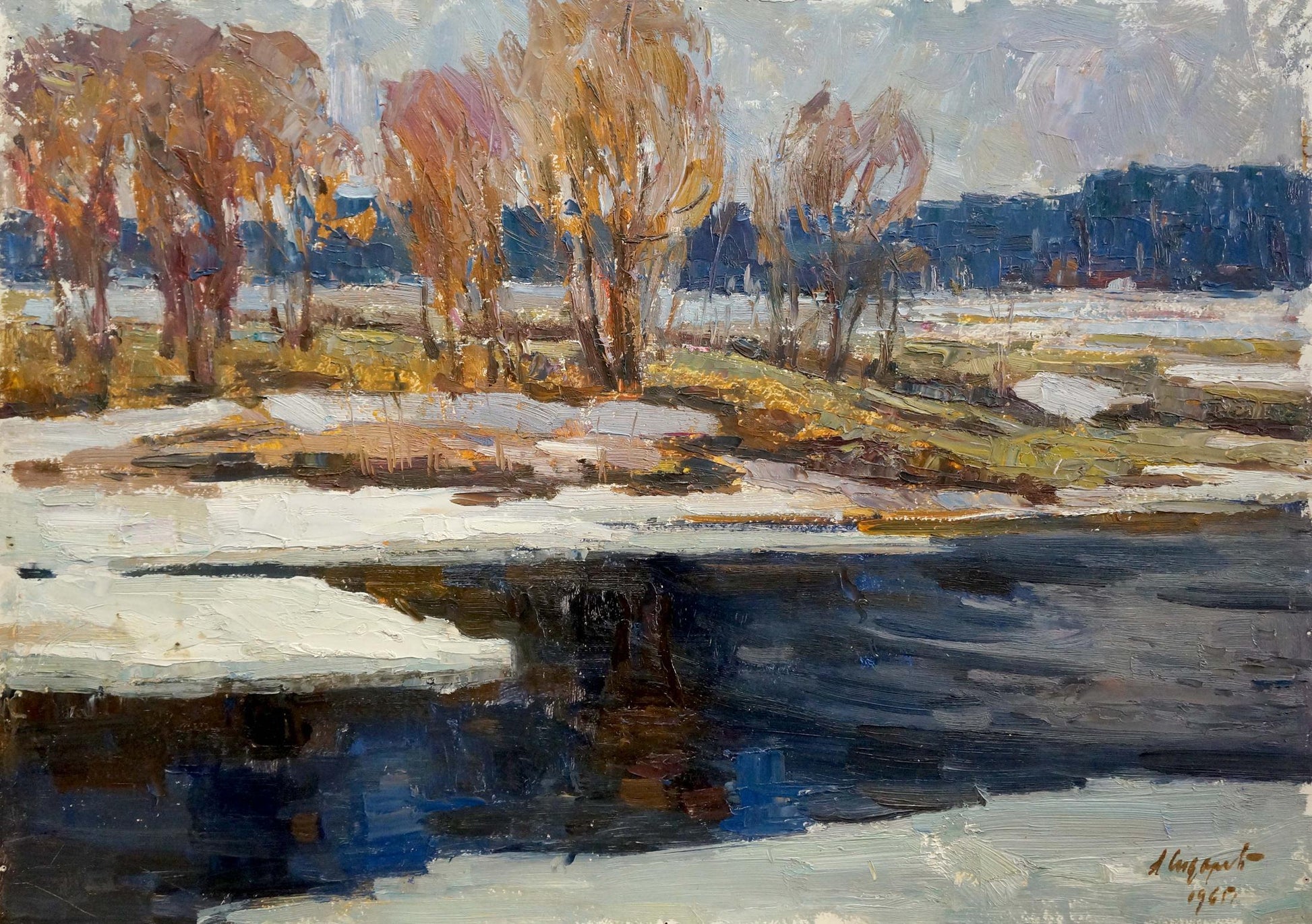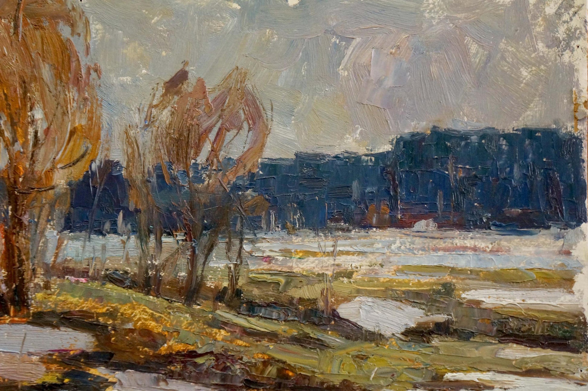 Oil painting Snow melts Sidorov Alexey Evdokimovich