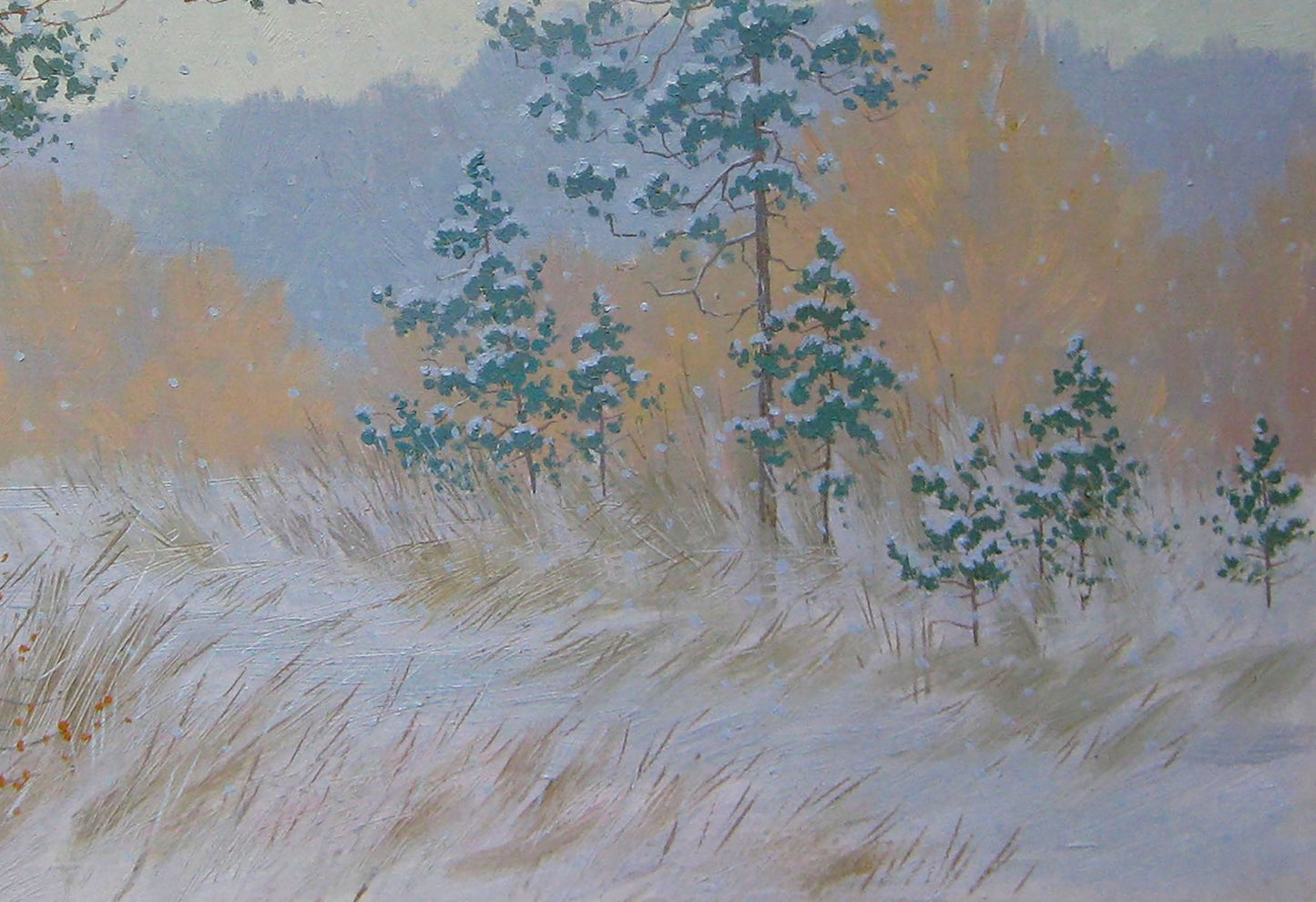 Savenets uses soft, muted colors and gentle brushwork to convey the tranquil beauty of the first snowfall. The contrast between the rich green of the pine trees and the pale, snow-covered ground emphasizes the transition from autumn to winter. The artist’s careful attention to detail creates a harmonious balance between nature’s elements. For those looking to Buy a Oil painting that captures the peaceful charm of a winter day, "Snowing" offers an ideal reflection of the season’s quiet elegance. As seen in Other works by Savenets Valery, the artist's talent for capturing nature’s subtle changes is evident in this serene landscape.
