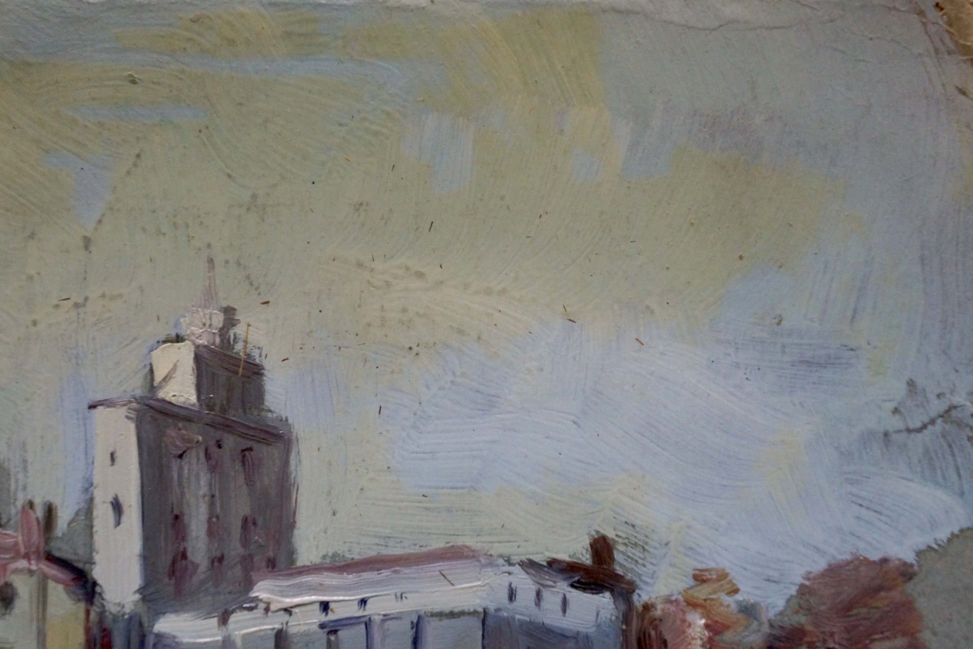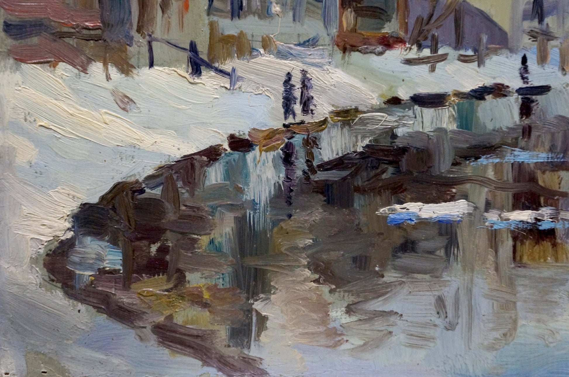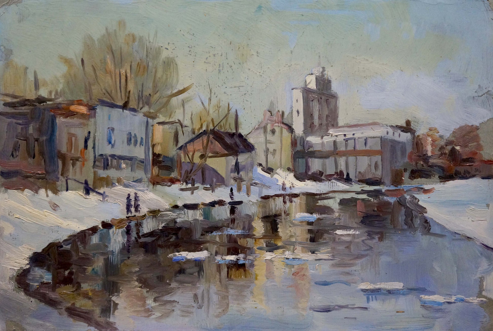 Oil painting Snowy city by the river Unknown artist