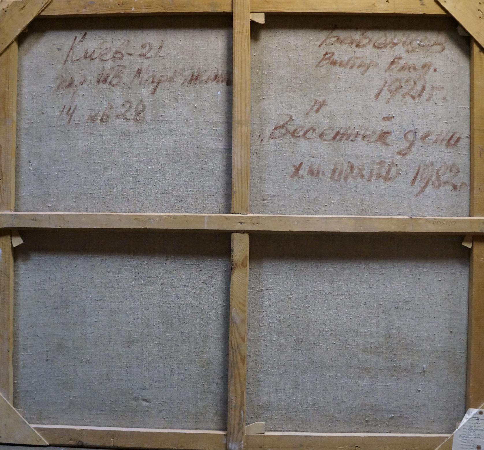 About the artist: Born on February 5, 1921 in the village of Litvinovka (now Dnepropetrovsk region). Graduated from the Kiev Art Institute (1952). Teachers by profession - V. Kostetsky, K. Trokhimenko. He worked in the field of easel painting. Member of the National Union of Artists (1956). Honored Artist of the RSFSR (1977). People's Artist of Ukraine (2004). Member of the CPSU. Member of the Great Patriotic War. He was awarded the Order of the Red Star and medals. Participated in republican and all-Union exhibitions since 1951. Foreign exhibitions: in Japan (1974-1976), Finland (1977), Bulgaria (1984). Major works: "Lesya Ukrainka" (1952, 1962), "Autumn Putin" (1957); Metrostroyevtsy (1957), Into Science (1961); “On the construction of the Dneprodzerzhinsk HPP” (1963); TG Shevchenko in Kamenets-Podolsk (1964); "Memories of Karmalyuk" (1964); Metrostroevtsy (1967); "At the Wall of the Communards" (1967 - 1969); “I stood and listened to the spring ...” (1970), “On the liberated land. Year 1943 "(1978)," Crimea "(1981)," Portrait of a mother "(1984)," Commissioner of the 186th Brest division P. Kudryavtsev "(1985)," Armored fighters "(1989)," Seascape "," Blooming almonds "(1991). The works are kept in the National Art Museum, Kharkov, Dnepropetrovsk, Donetsk, Cherkassk, Berdyansk art museums; Kherson, Sevastopol art galleries; in the Museum of Lesya Ukrainsky (Kiev), Kamyanets-Podolsk, Kiev historical museums; Khmelnitsky, Novomoskovsky, Korsun-Shevchenkovsky local history museums. He died in 2012.