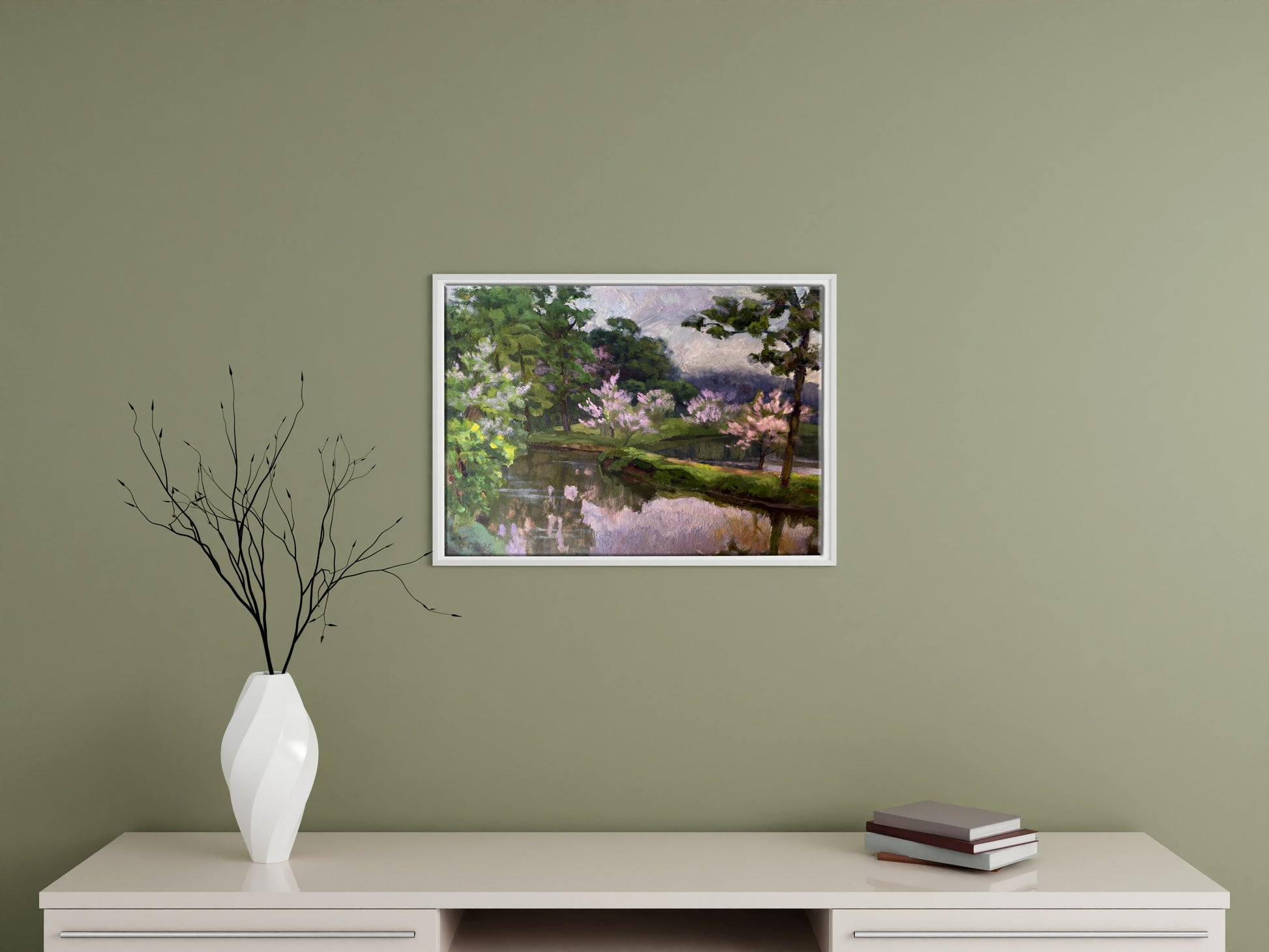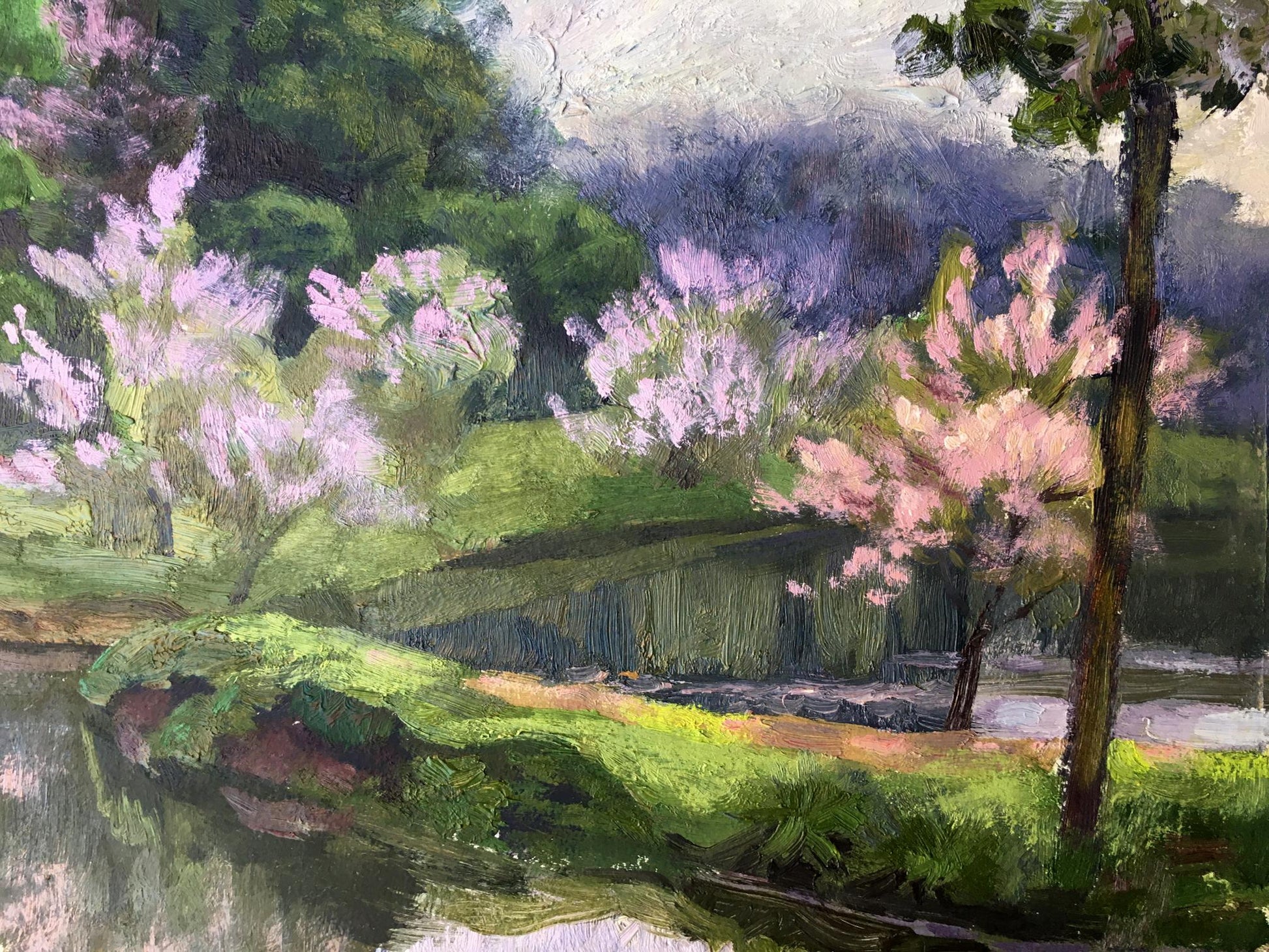 Oil painting Spring lake in the forest Vladimir Batrakov