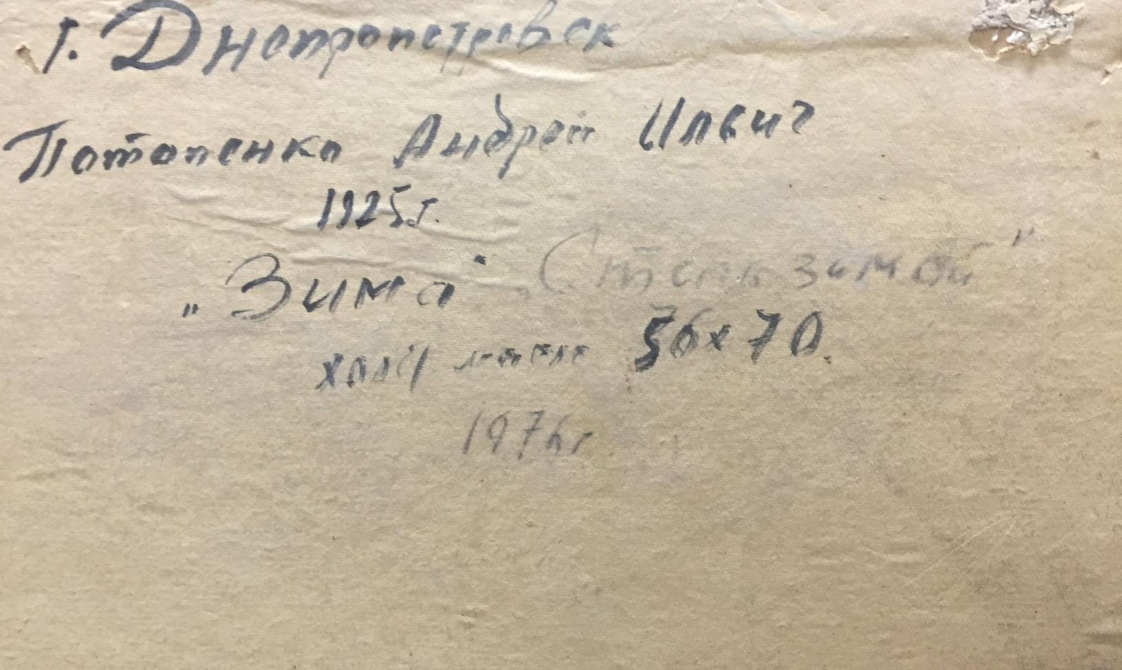Andrei Potapenko belongs to a generation of artists whose formation and personality were influenced by World War II. In 1943, A. I. Potapenko volunteered for the front, was wounded, but returned to duty and fought until the end of the war. After 1945 he continued his studies at the art school, and after graduation he worked as a custodian of funds in the Dnepropetrovsk Art Museum.