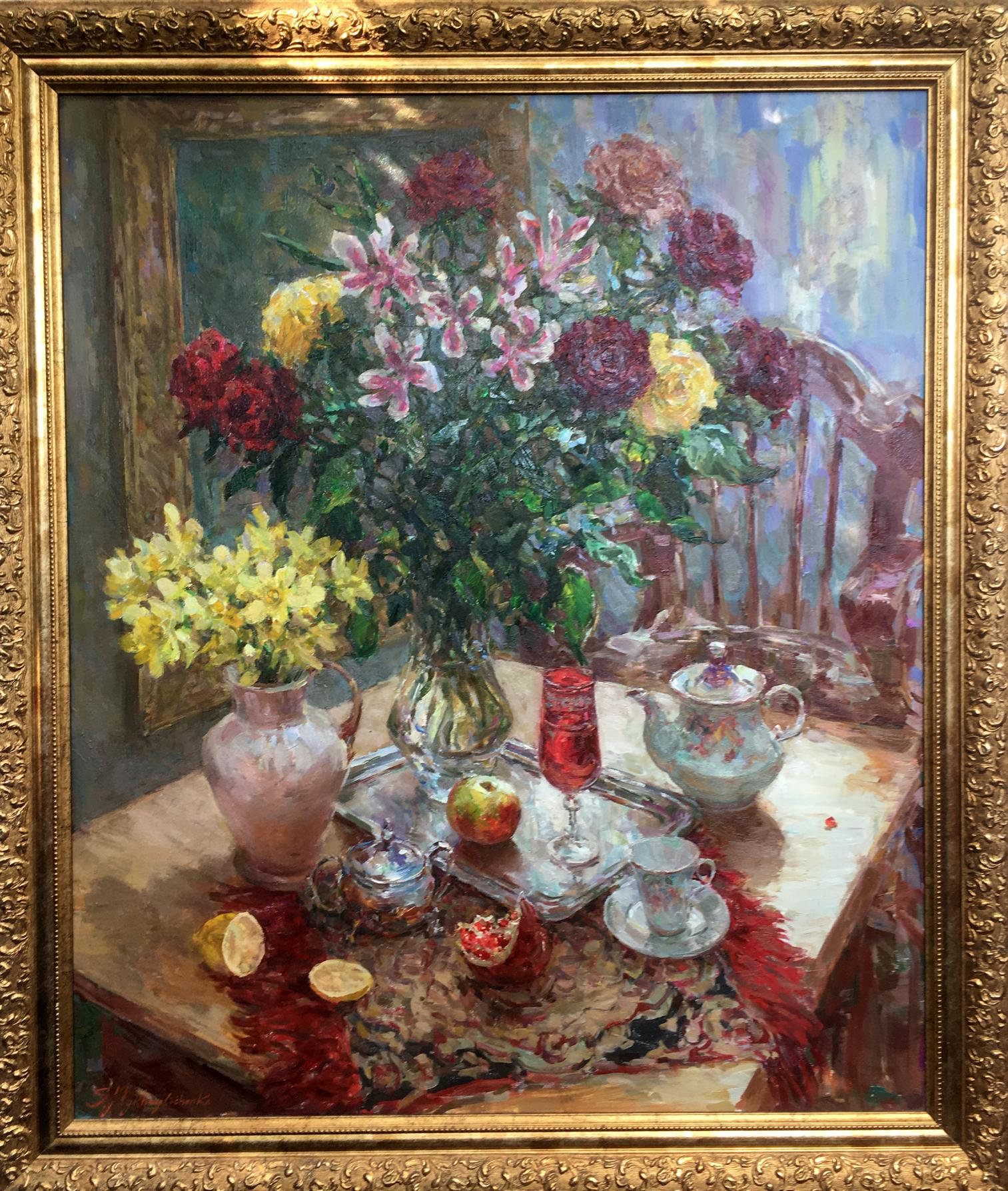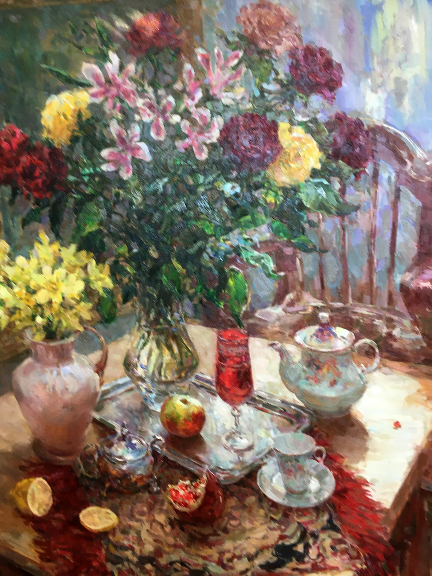 Oil painting Still life of red and yellow roses Sergey Mikhailichenko