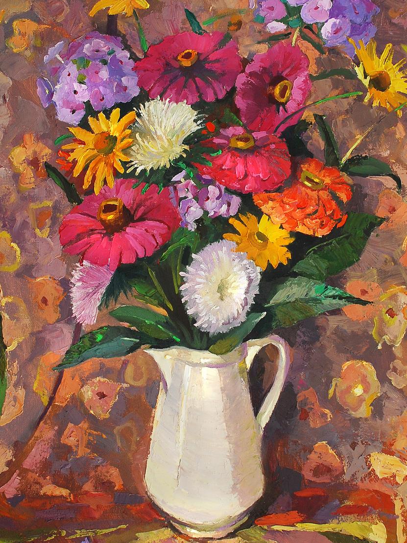 Oil painting Still life with a white vase Egor Shvachunov