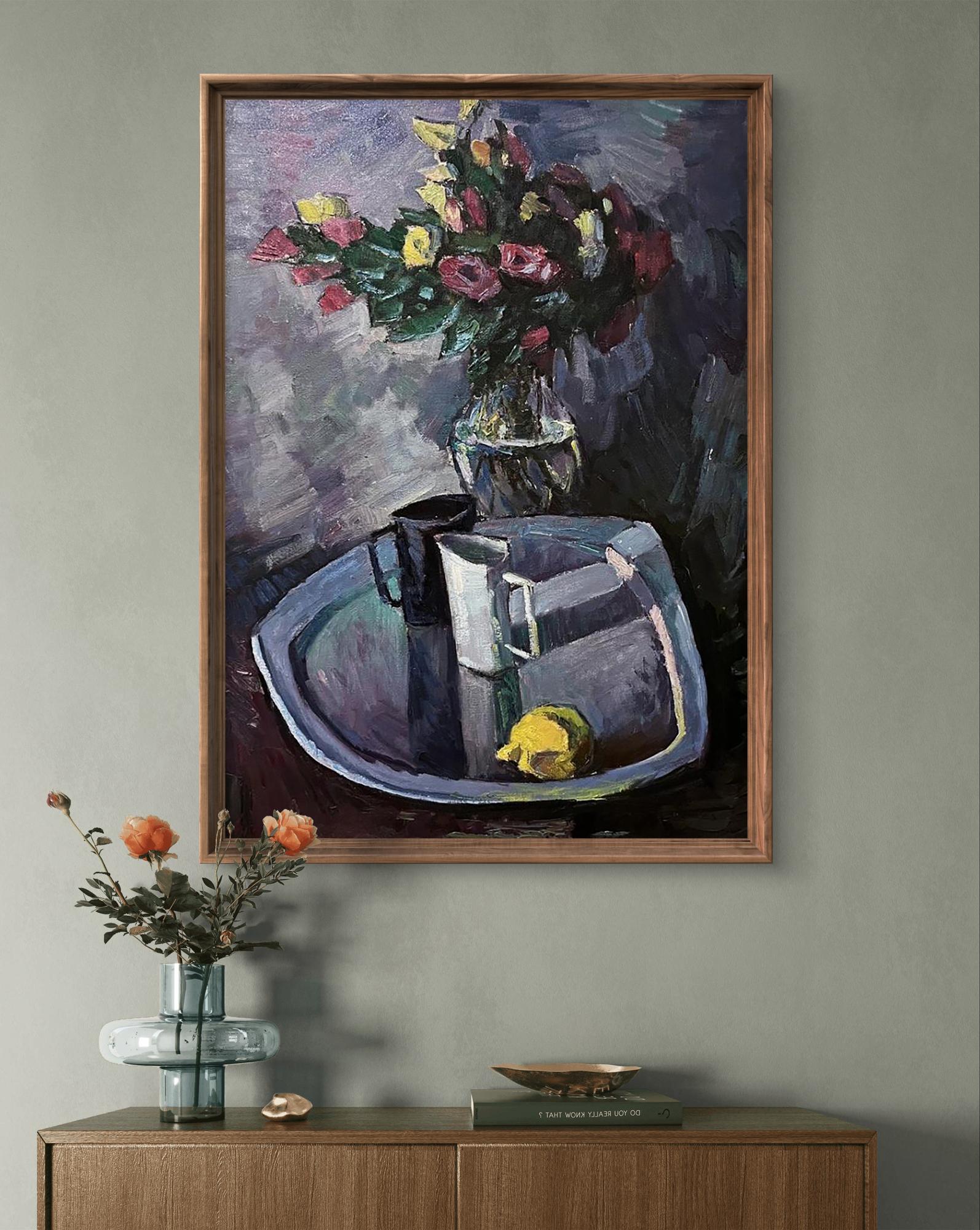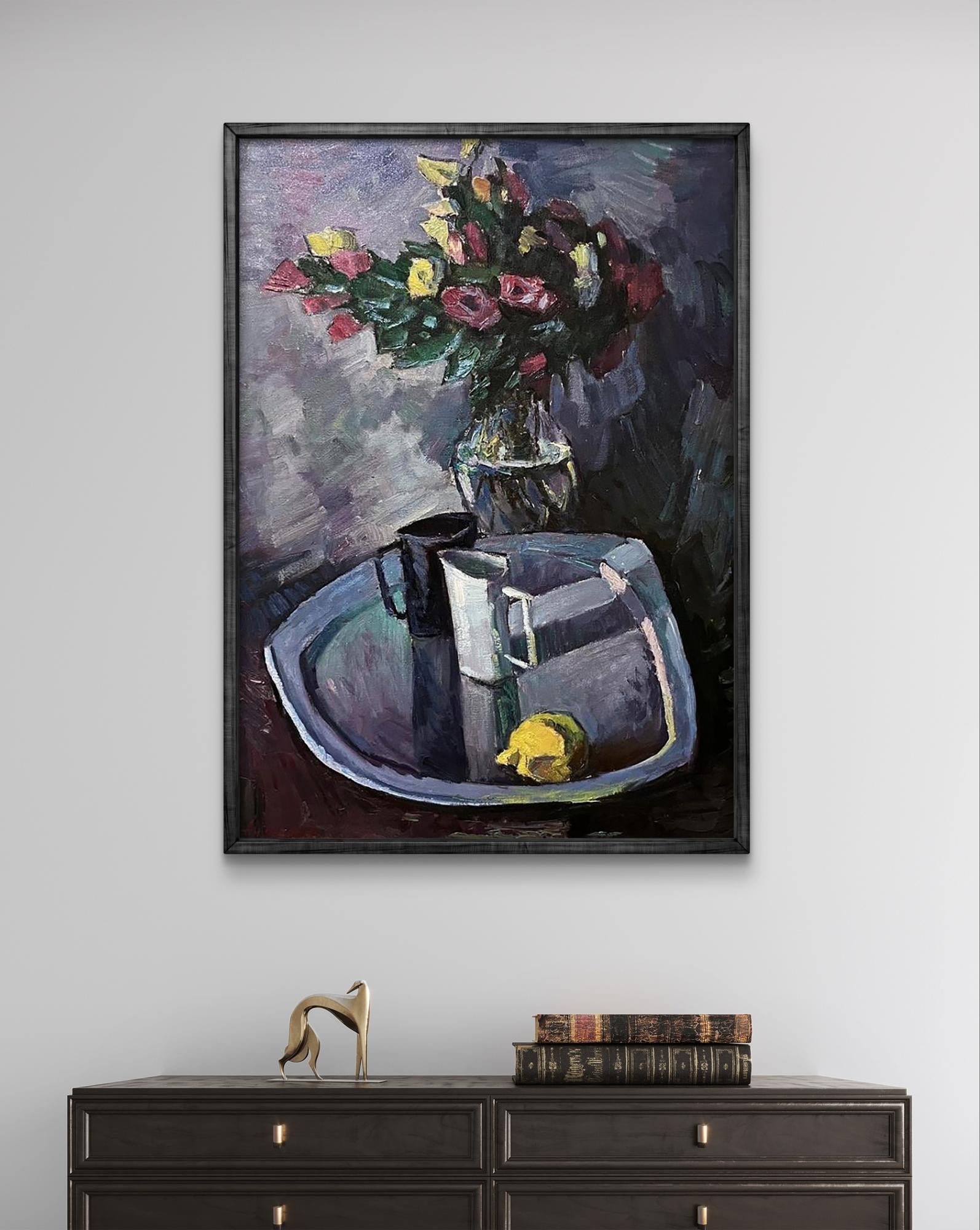 Oil painting Still life with flowers and lemon Oleksandr Andreev