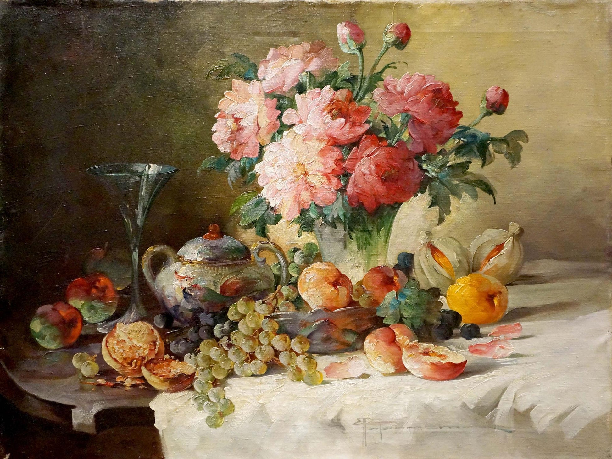Oil painting Still life with fruit Arnaldo Casella Tamburini