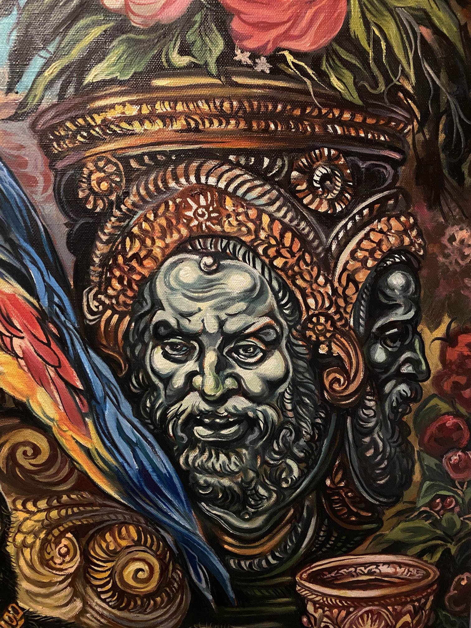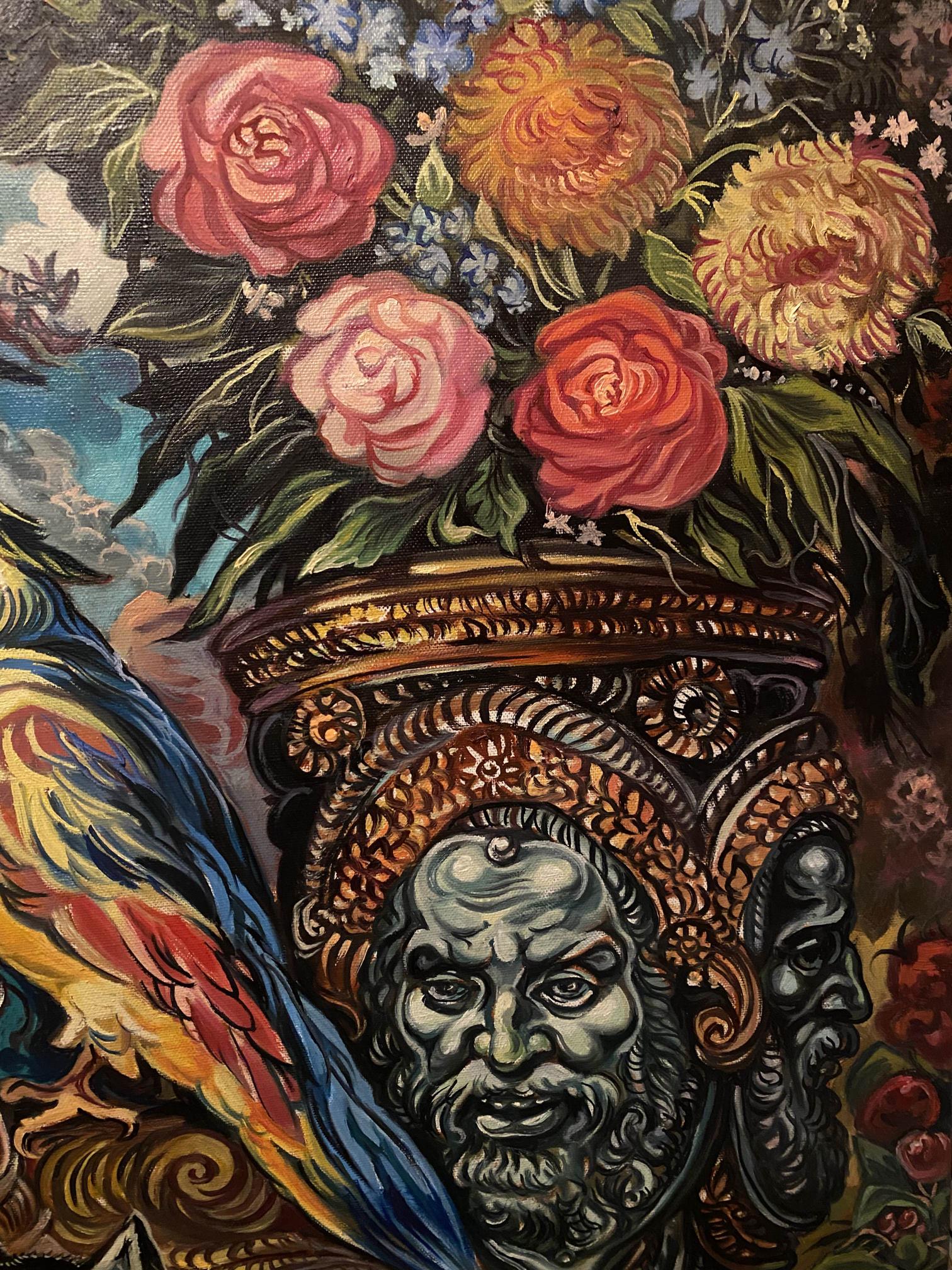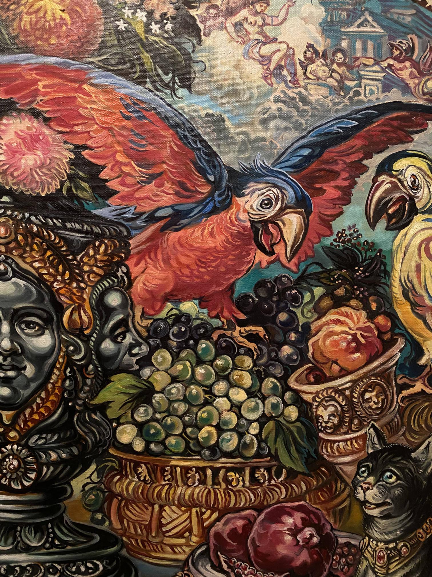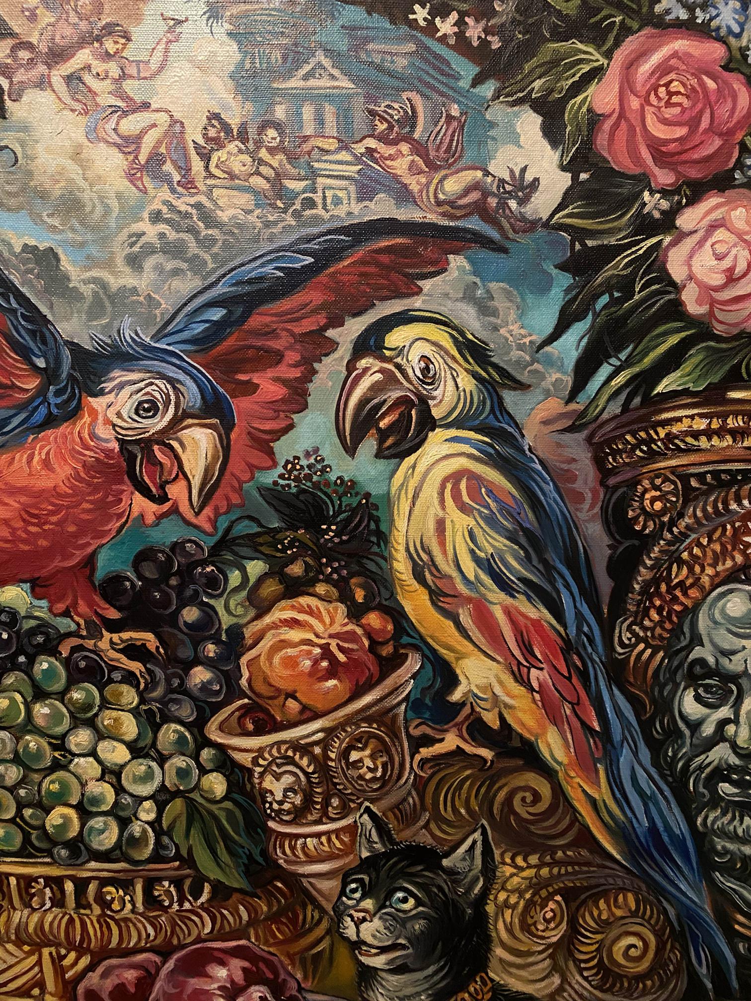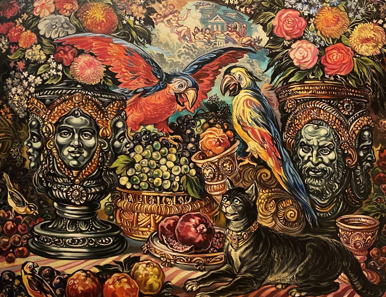 Oil painting Still life with parrots Alexander Arkadievich Litvinov