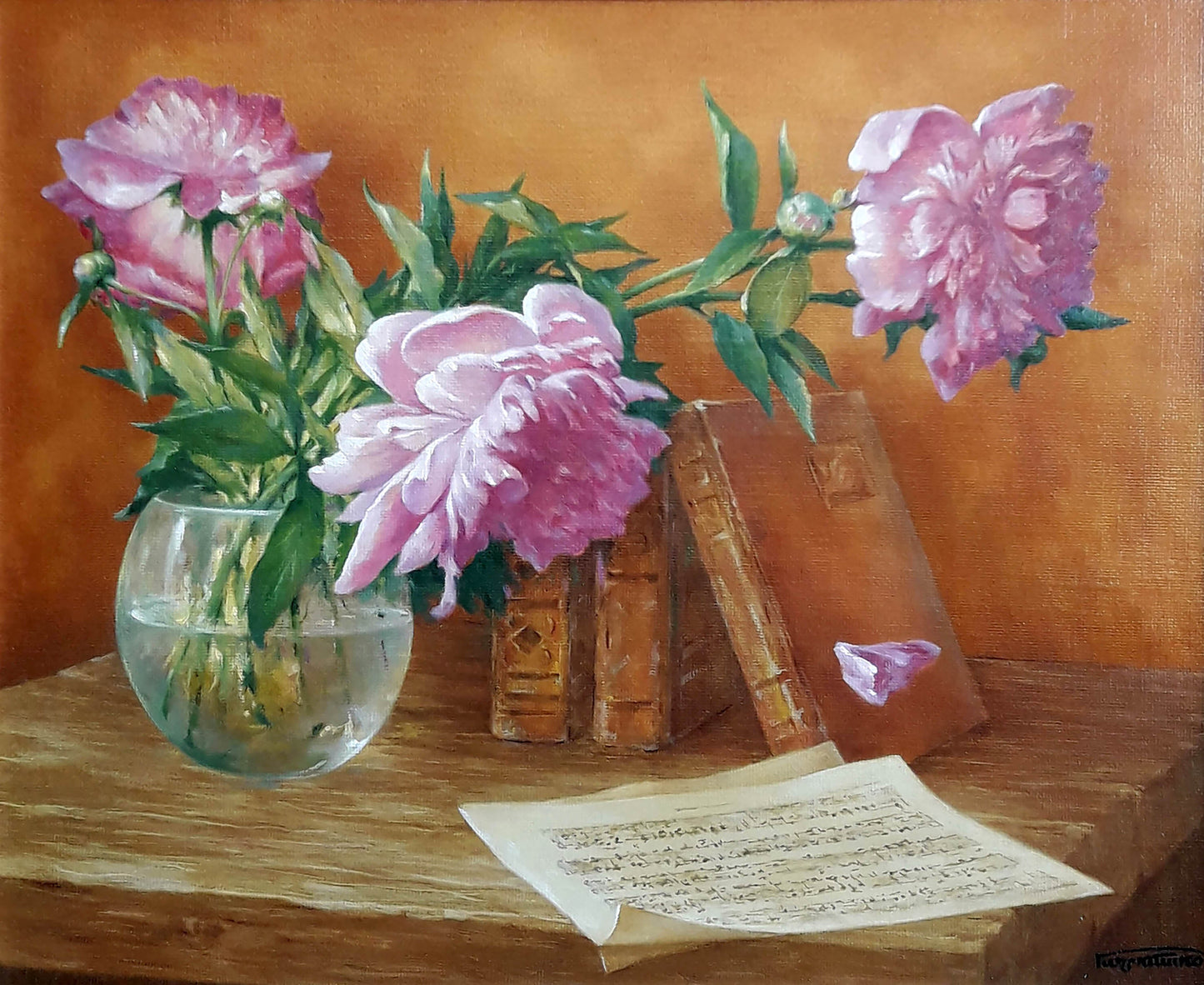 Oil painting Still life with pink peonies Vasily Korkishko