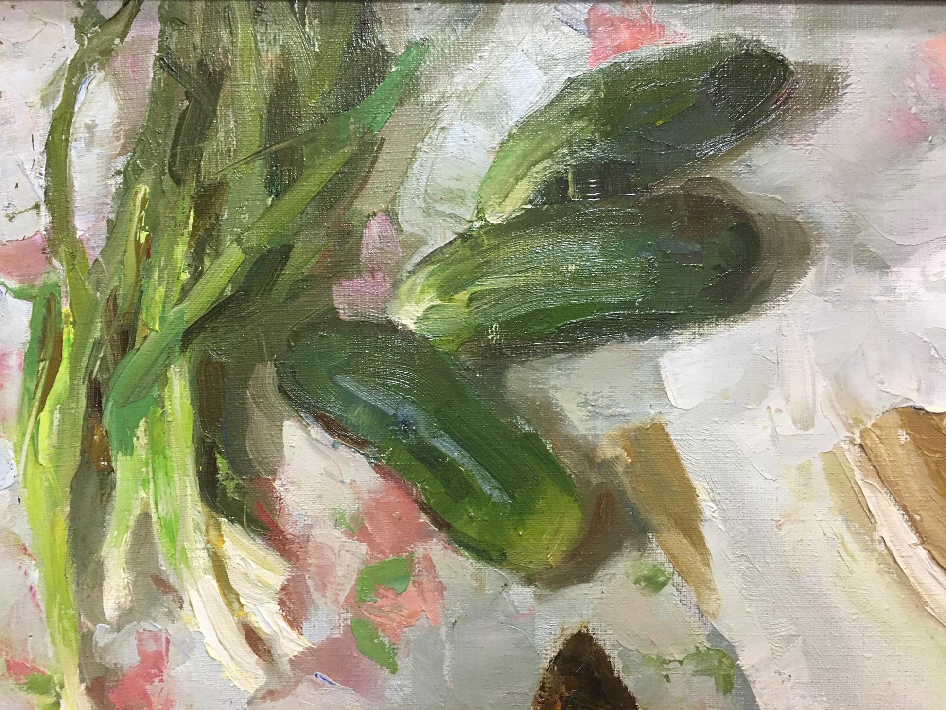Dear friends this painting sells unframed but stretched over a stretcher. Frame increases the cost of delivery. If you still want to get the painting in its native frame, then delivery costs 75$ more, and the frame is for free.