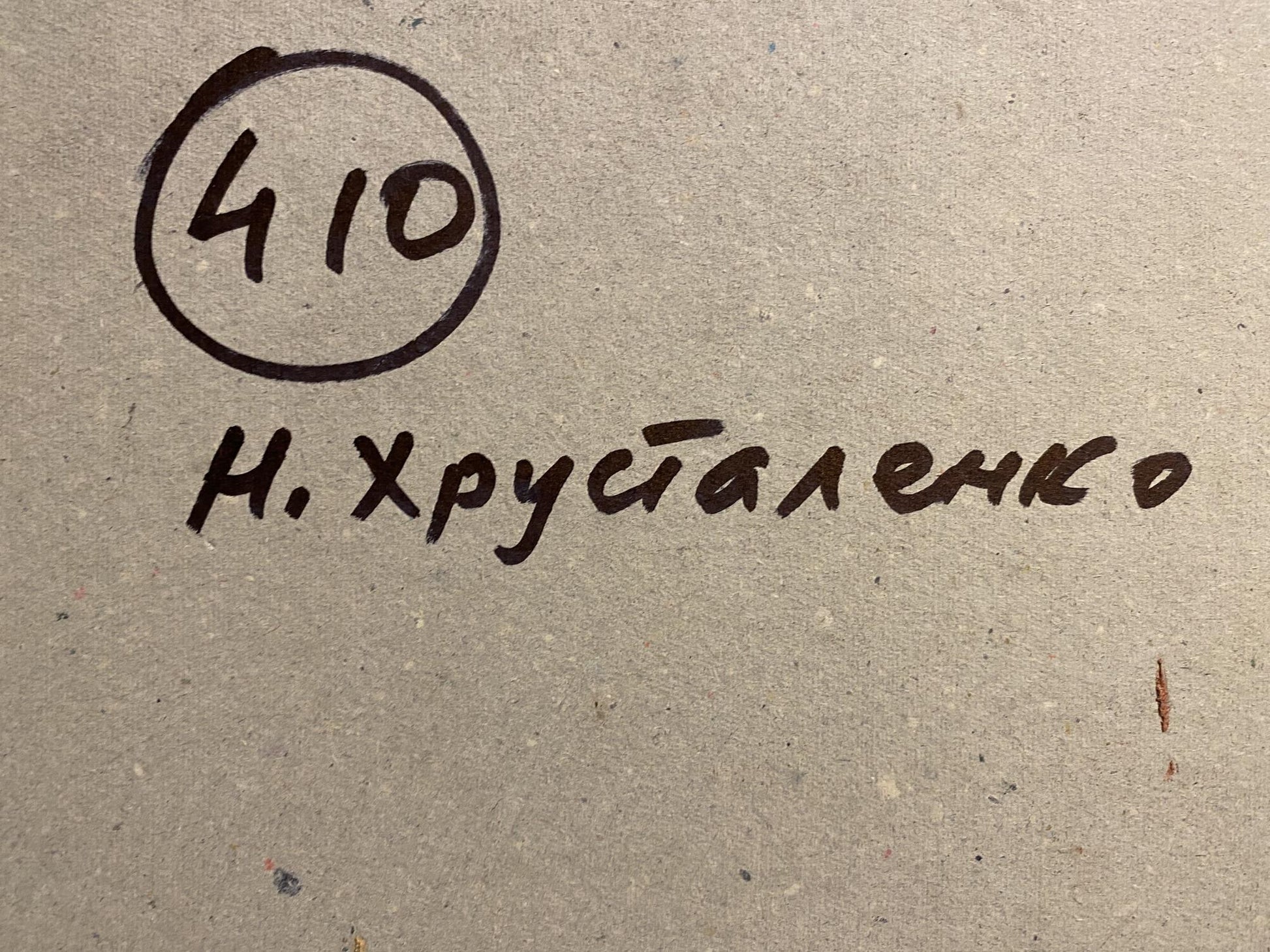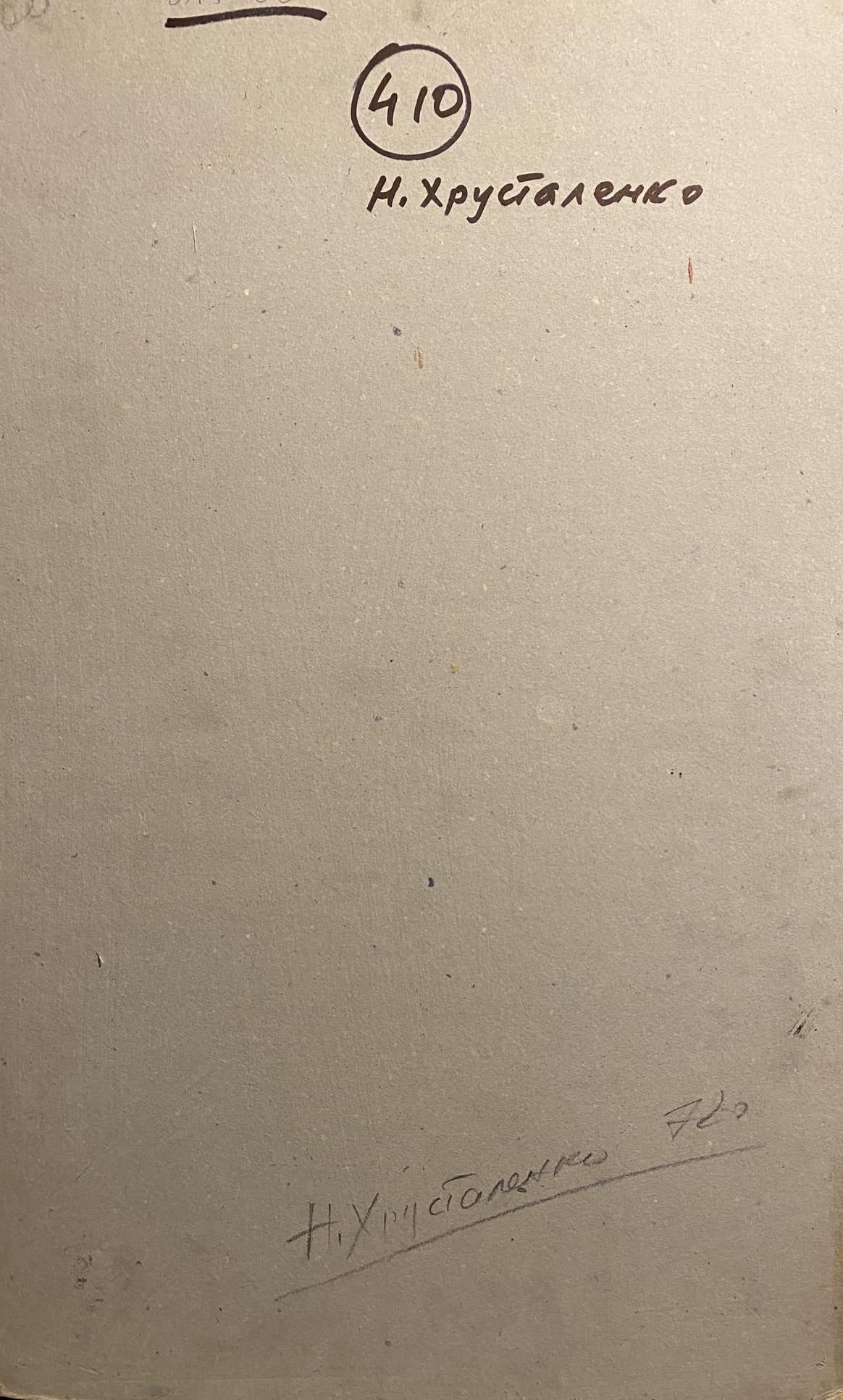 About the artists: Khrustalenko Nikolai Alexandrovich (1896-1984) - painter. He studied at KHI (1935-1941) with F. Krichevsky and P. Volokidin. He showed himself in complex painting genres - landscapes, portraits, still lifes. His early works are kept in the collections of the Belotserkovsky Museum of Local Lore.