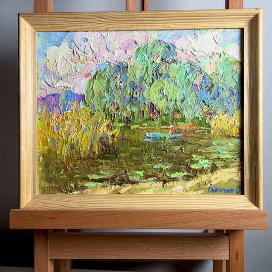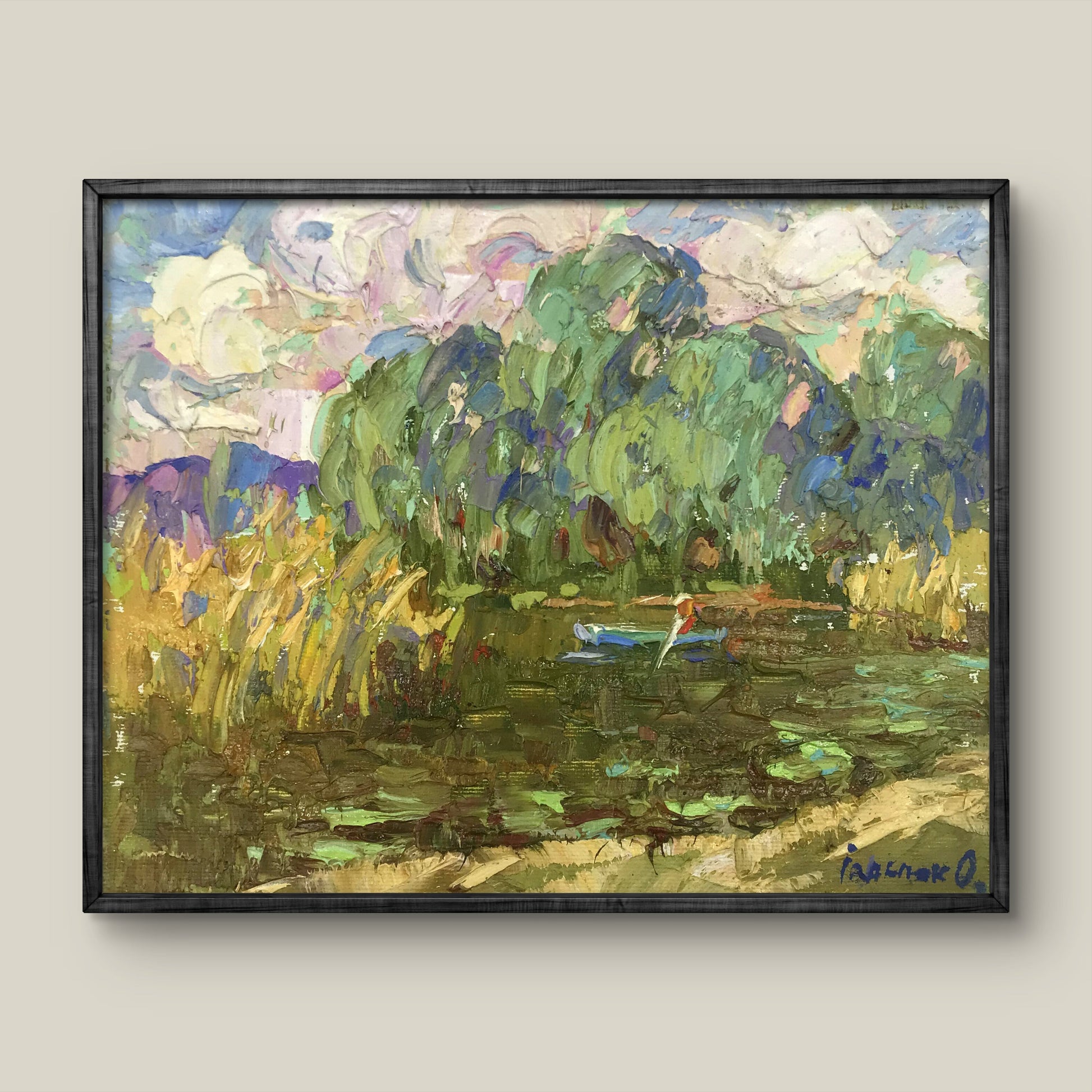 "Summer" is a captivating oil painting by Alex Ivanyuk, characterized by its vibrant depiction of a summer day. As part of our Collection of Nature Landscapes and River Landscapes, this piece brilliantly captures the essence of the season with its bright colors and dynamic composition.