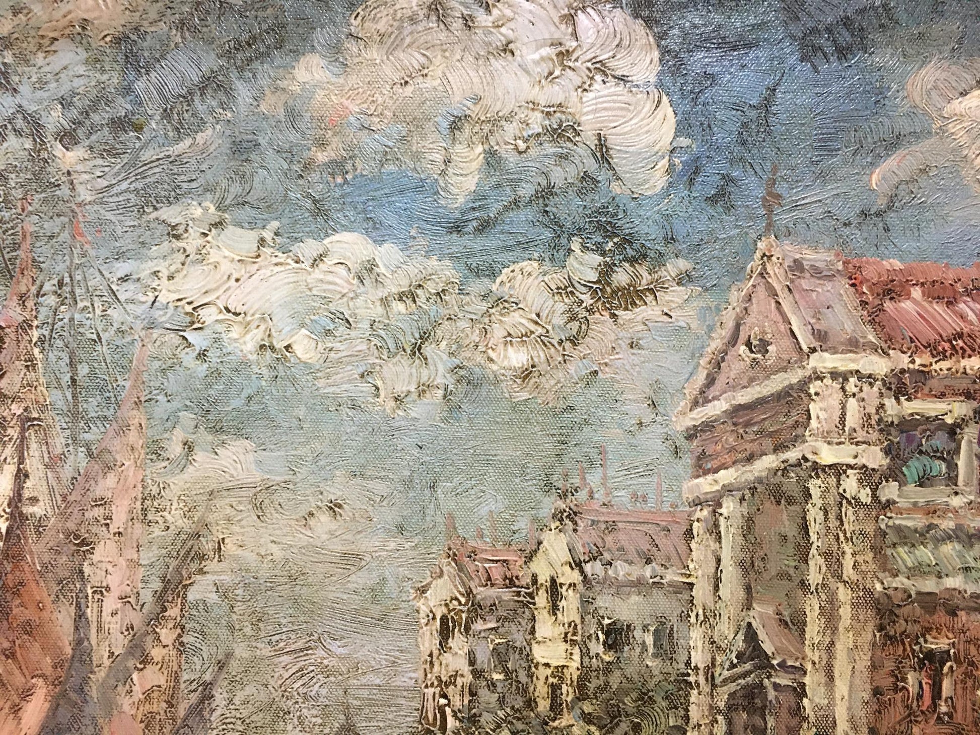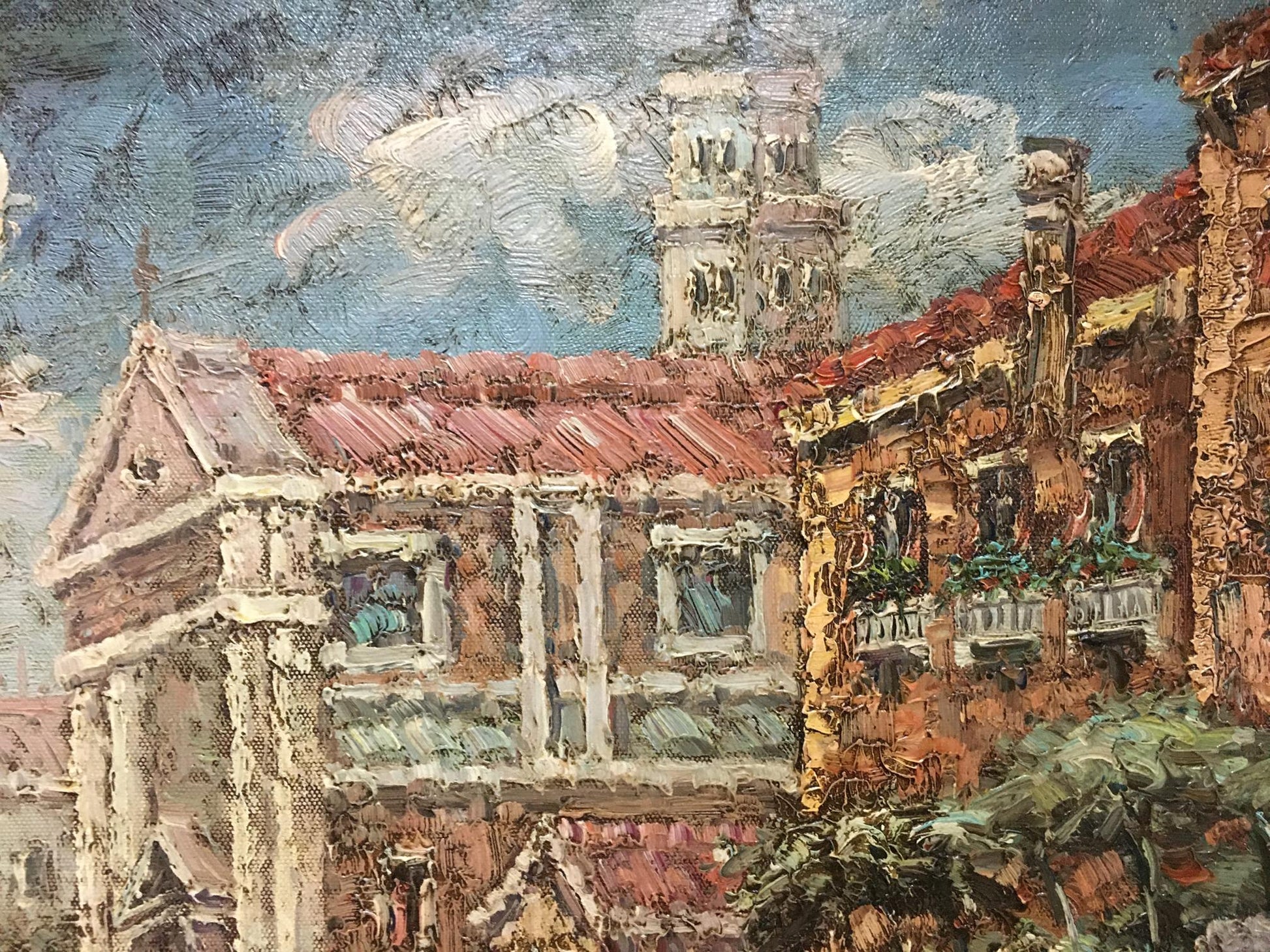 Oil painting Summer city landscape