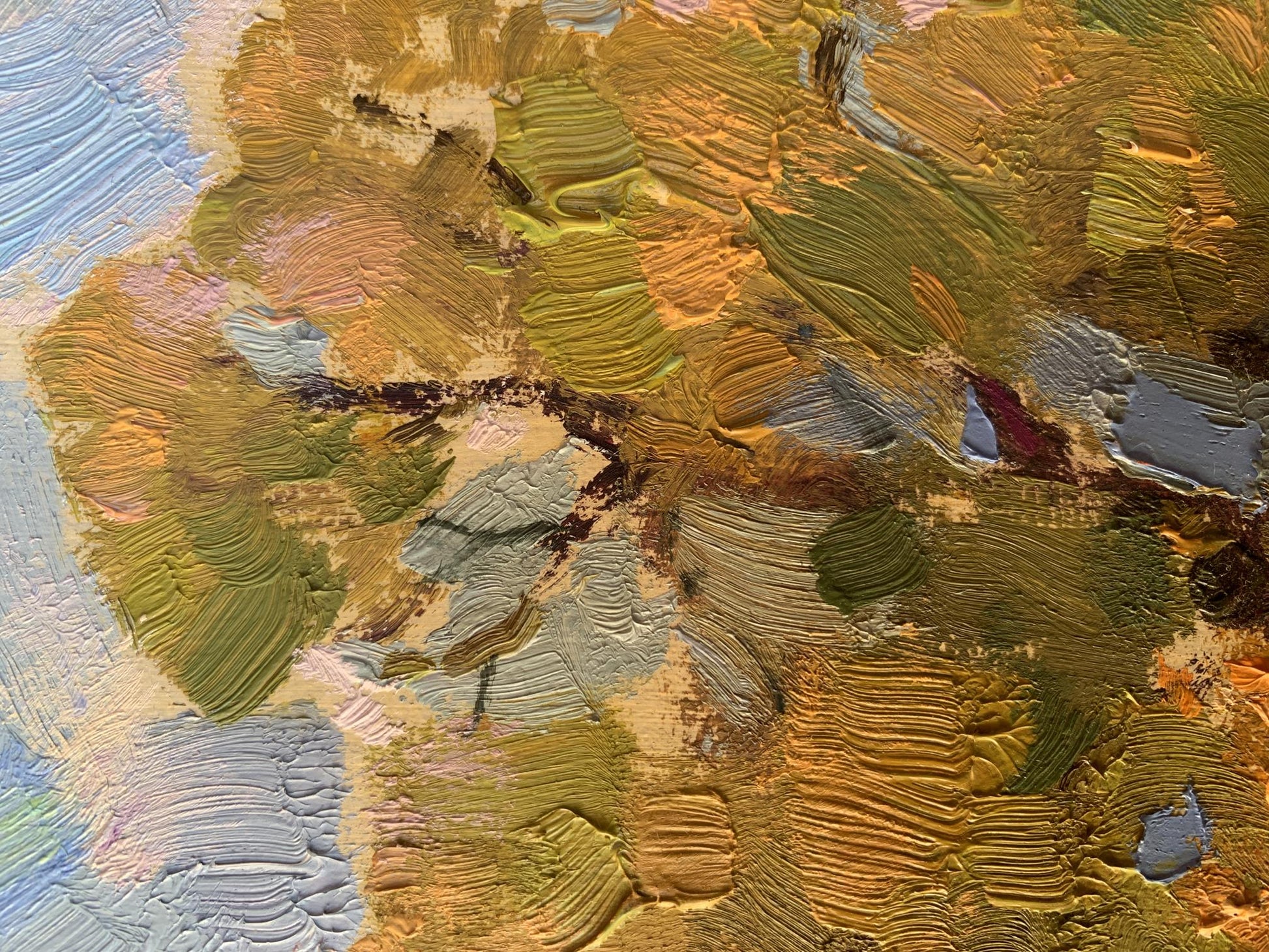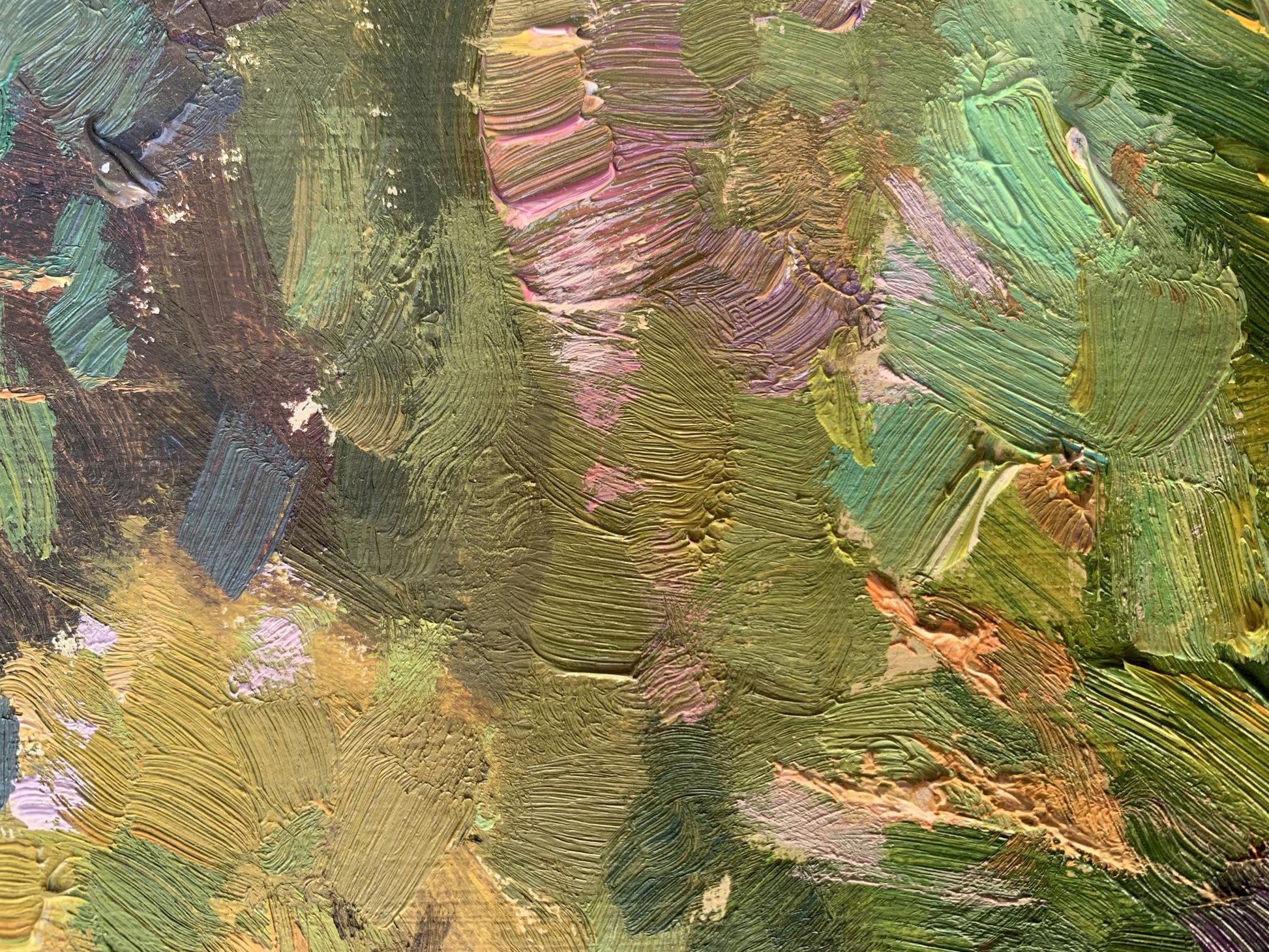 This oil painting, "Sunny Day," is a gorgeous piece that will bring the beauty of nature into your home. The clearing in the forest is incredibly peaceful, with flowers and bushes adding pops of color. The fir trees are tall and stately, and the sunny day just fills the painting with happiness. It's impossible to look at this painting without feeling at ease. Whether you're looking to add a touch of tranquility to your space or simply want a stunning piece of art, "Sunny Day" is the perfect choice.
