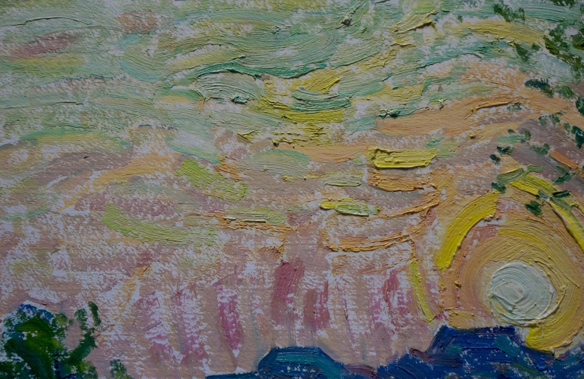 Oil painting Sunset landscape over the forest Viktor Sevastyanov