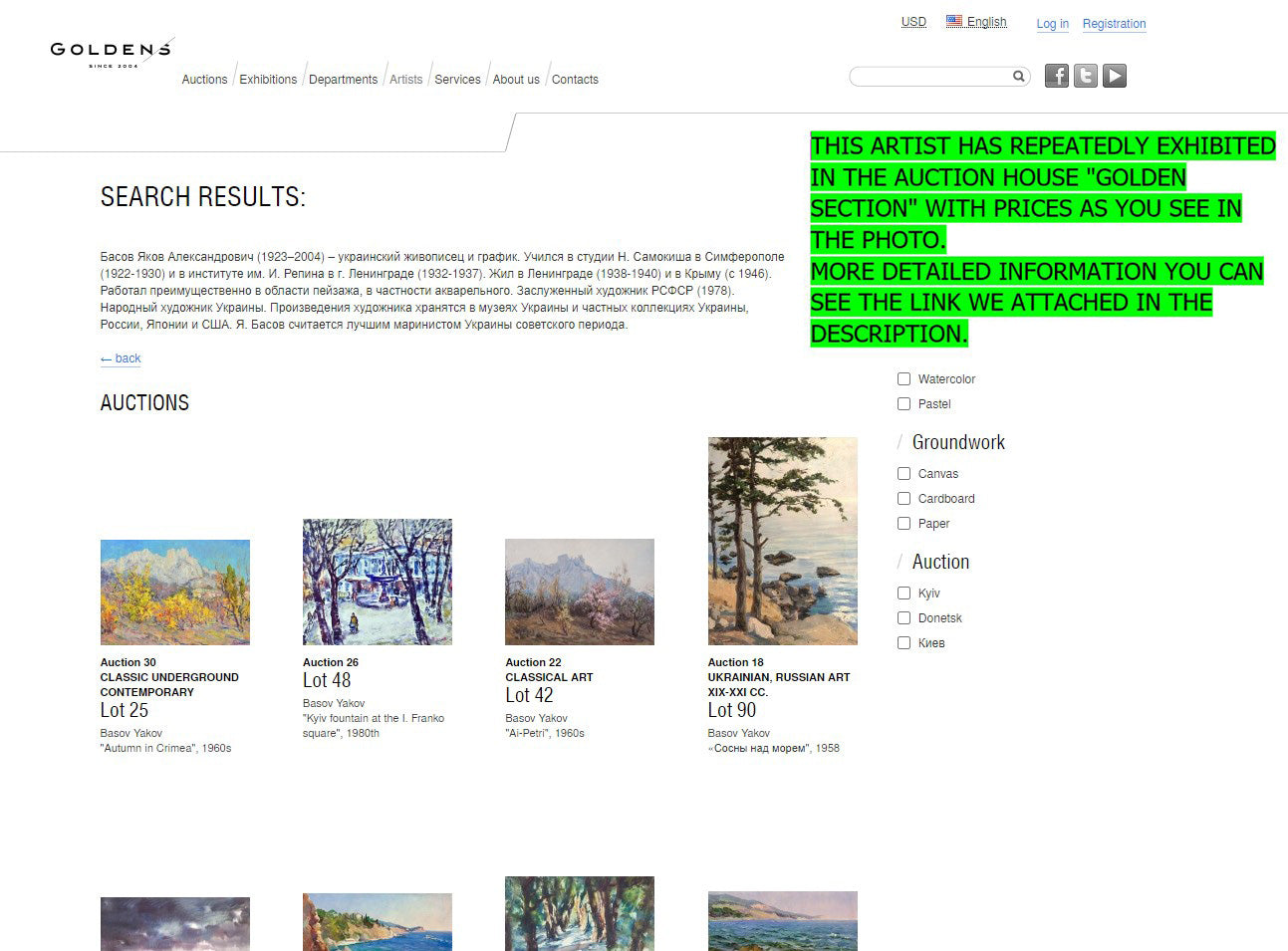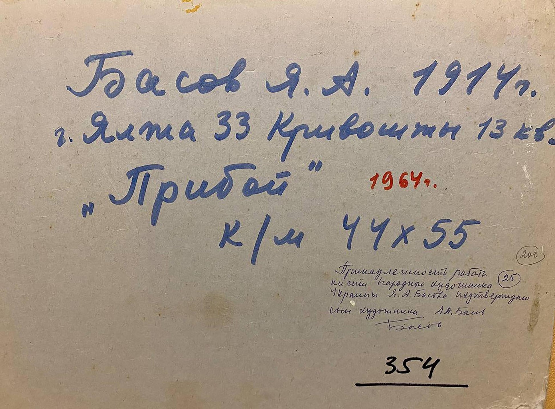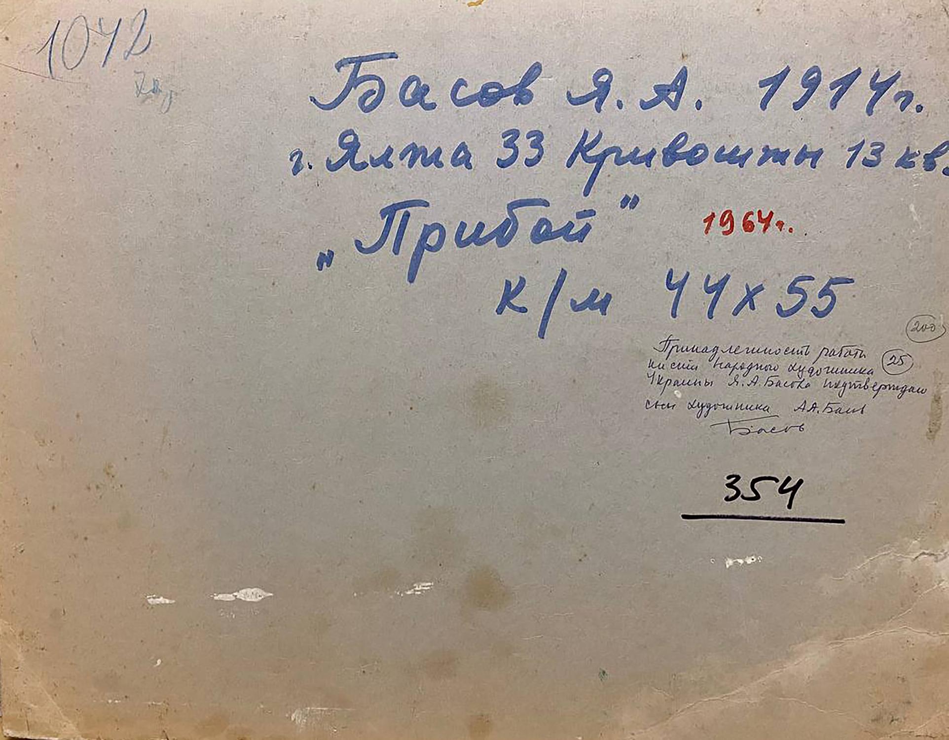 About the artists: Basov Yakov Aleksandrovich (1923–2004) – Ukrainian painter and graphic artist. He studied at the studio of N. Samokish in Simferopol (1922-1930) and at the Institute. I. Repin in Leningrad (1932-1937). Lived in Leningrad (1938-1940) and in the Crimea (since 1946). He worked mainly in the field of landscape, in particular watercolor. Honored Artist of the RSFSR (1978). People's Artist of Ukraine. The artist's works are kept in museums of Ukraine and private collections in Ukraine, Russia, Japan and the USA. Ya. Basov is considered the best Ukrainian marine painter of the Soviet period.