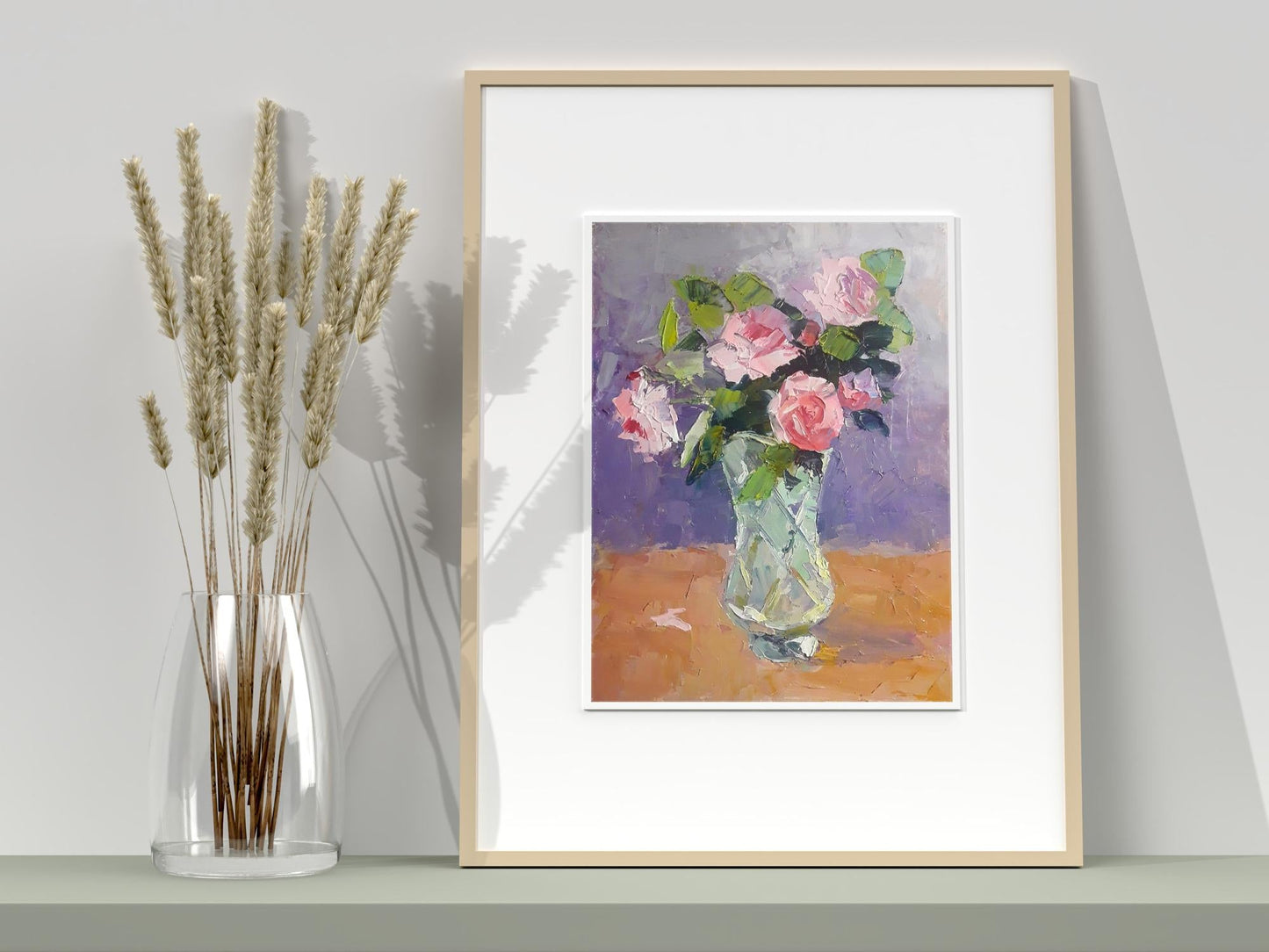 Ideal for any setting that craves a touch of natural elegance, "Tea Roses" promises to be a conversation starter in any home or office. Its serene composition and vibrant colors make it a perfect choice for those looking to add a refined and peaceful element to their decor.