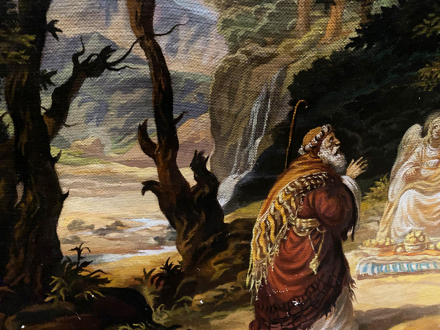Entitled "The Appearance of the Angels to Abraham," this captivating oil painting by Alexander Arkadievich Litvinov depicts a significant biblical scene with profound symbolism. Created using oil on canvas, it measures 59x49 cm (23.22x19.29 inches) and stands as an original masterpiece from Litvinov's esteemed collection. In the illustrious catalogue of Alexander Arkadievich Litvinov's works, "The Appearance of the Angels to Abraham" stands out as a profound interpretation of a pivotal biblical narrative. This original religion oil painting, part of our esteemed collection, presents a moment of divine encounter with breathtaking depth and sensitivity. Below, we explore the intricate details of this work and the artist's journey to its creation. There are other genres of painting in our catalog.
