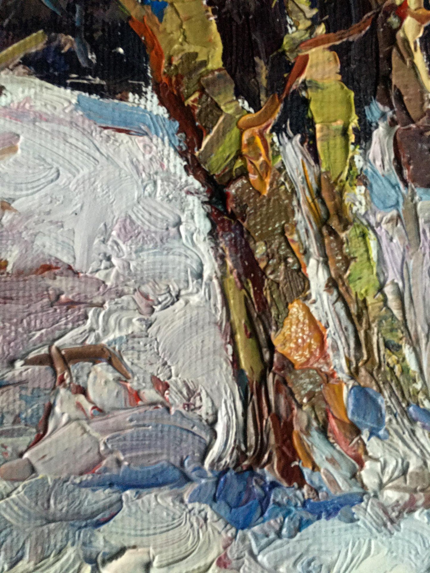 Oil painting by Ivanyuk Oksana beautifully encapsulates the quiet, introspective essence of winter, offering a glimpse into the stillness and tranquility of a snow-covered landscape.