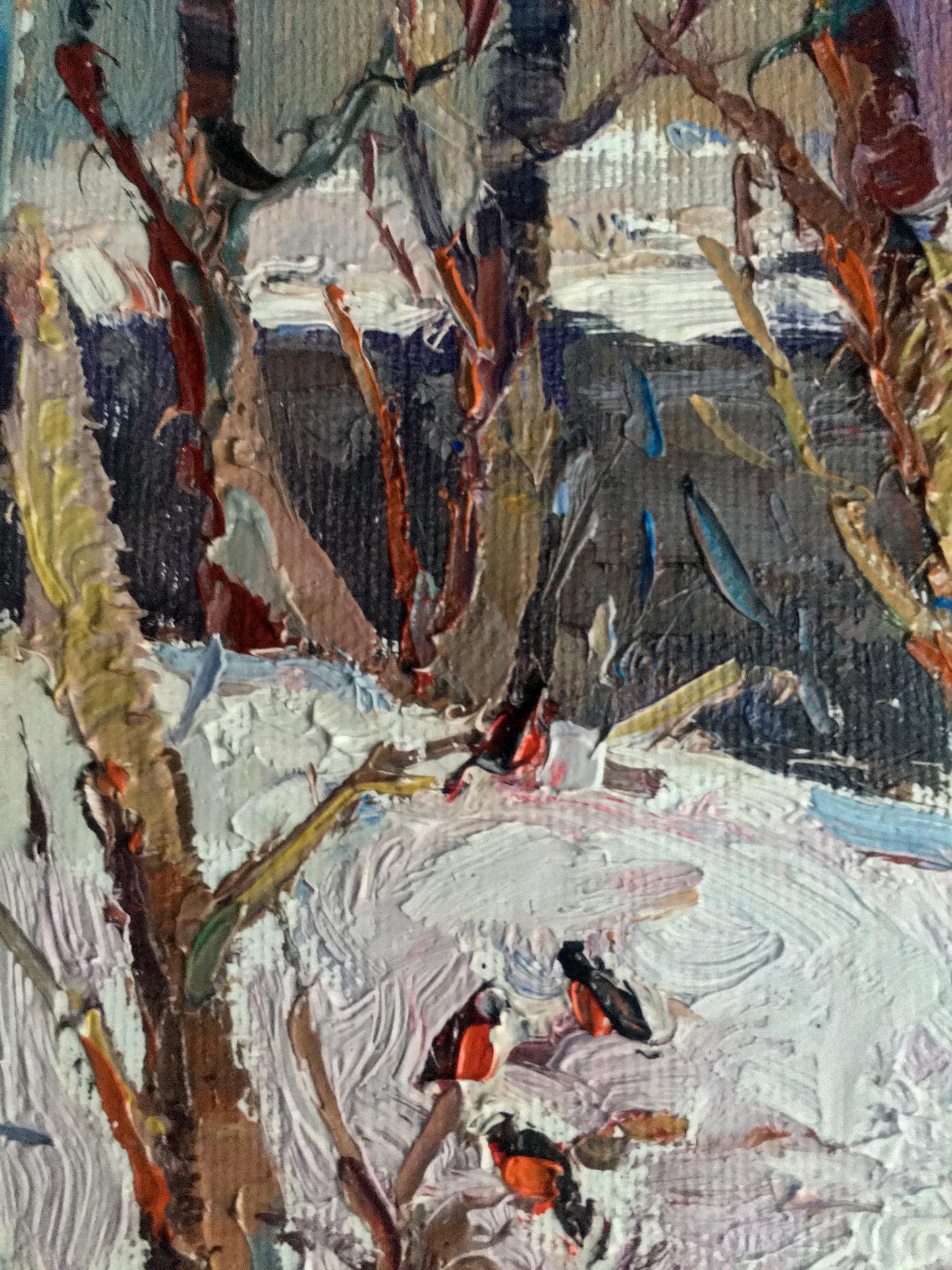 Oil painting The birds have arrived in winter Oksana Ivanyuk