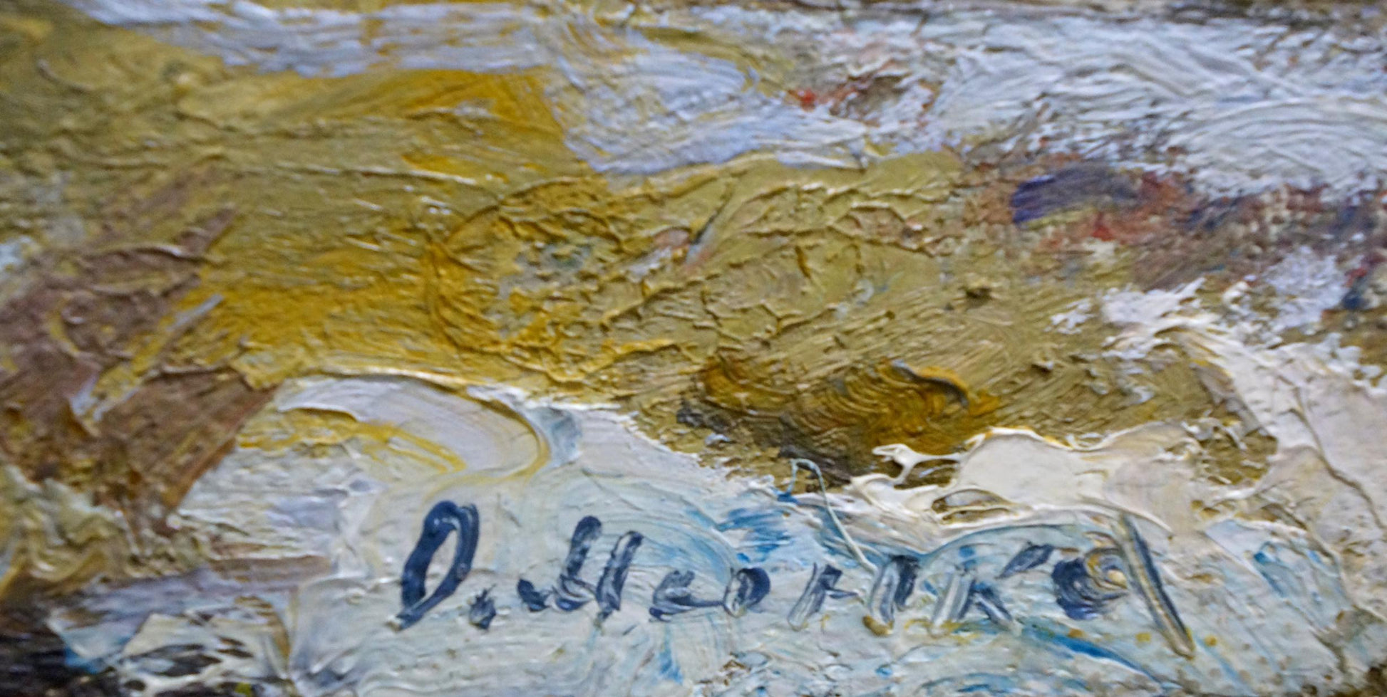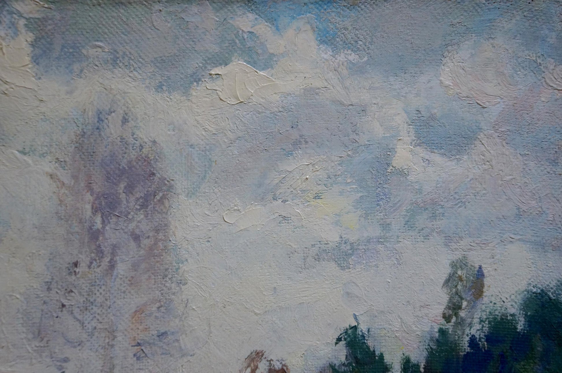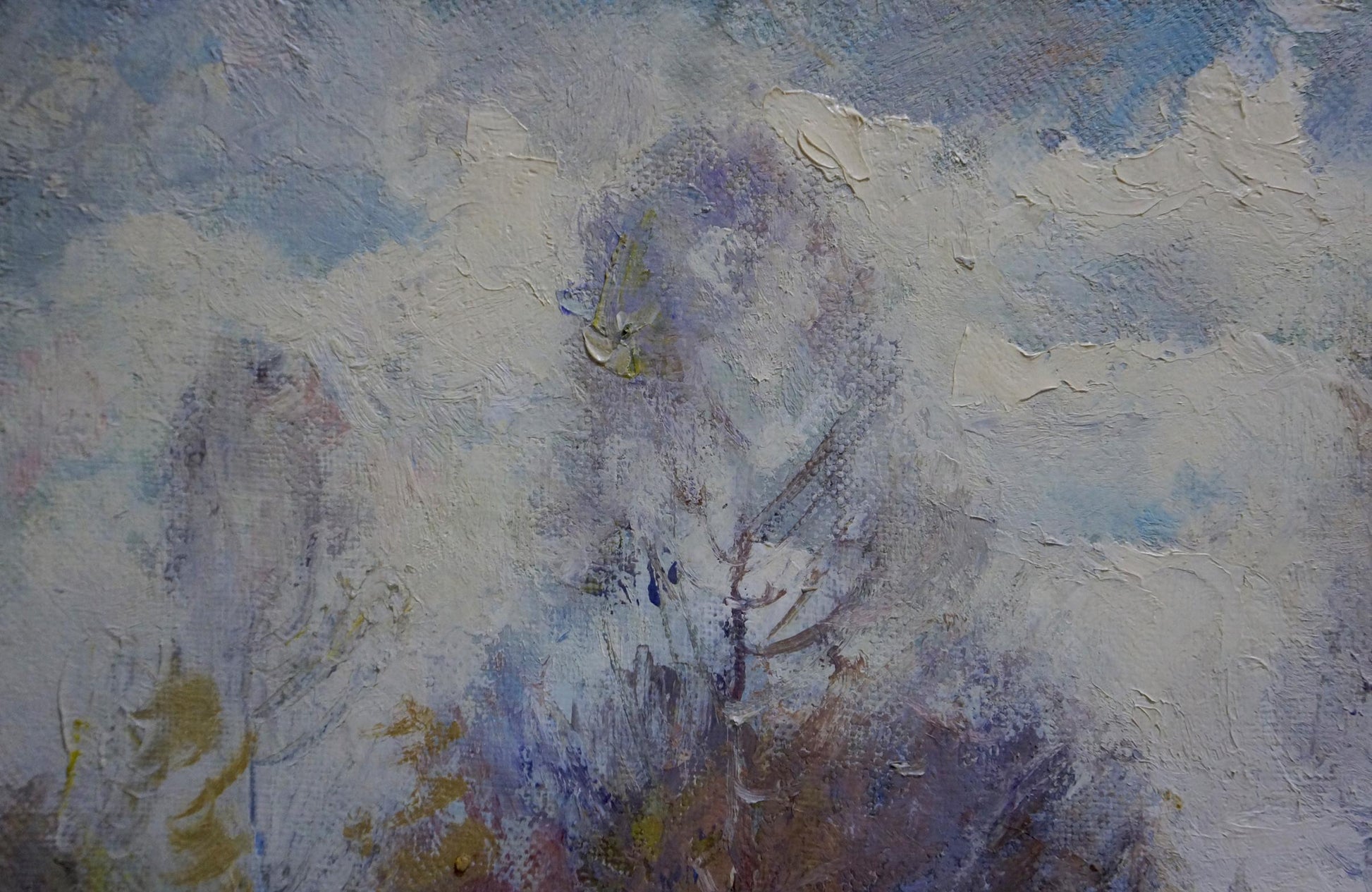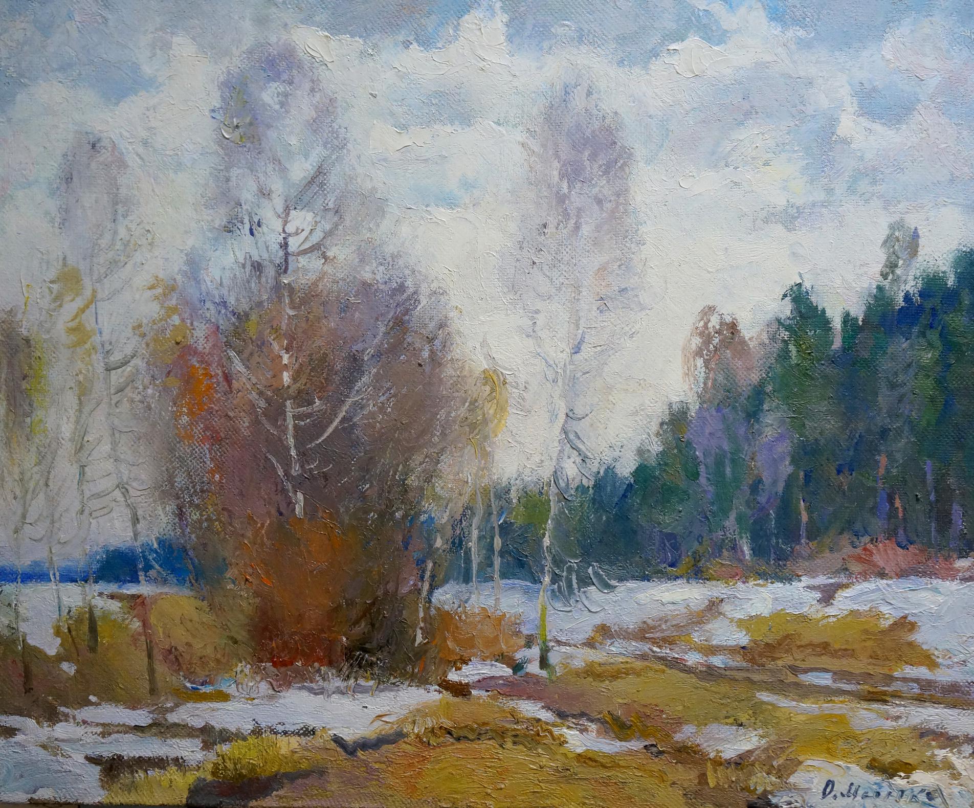 About the artist: Born May 15, 1938 in the Donetsk region. He studied at the Dnepropetrovsk Art College (1960-1965); Kiev Art Institute (1965-1970). Graduation robot - participation in the creation of the Korsun-Shevchenkovsky battle diorama . Zabashta. Painter and graphic artist, master of the landscape. Member of the National Union of Artists of Ukraine (since 1980). Participated in exhibitions: city, republican, all-Union and foreign. Personal exhibitions at the National Art Museum of Ukraine and the Ukrainian Culture Fund (2000). Major works: "Fields" (1982), "View of the Mountain" (1986), "Houses over the River" (1992), "Old Bridge" (1987), "Road to the Church" (1989), "Cloudy Day" ( 1984), On the Shore (1988), Under the Pink Clouds (1974), The House on the Shore (1982), Hot Summer (1986), Across the River (1988), The Path (1986) ), "To the Water" (1990), "New Village in Chernihiv" (1989), "Grandfather's House" (1989), "Bay by the Dnieper" (1998), "At the Green Grove" (986), "Winter Rainbow" (1991), “Summer Day in the Carpathians” (1998), “Shadows in the Snow” (1985), “The Prelude” (1998), “Rural Motive” (1980s), “Old Stodola” (1989), “Forest Lake "(1976)," Autumn Motive "(1979) Lived and worked in Kiev, died in 1999.
