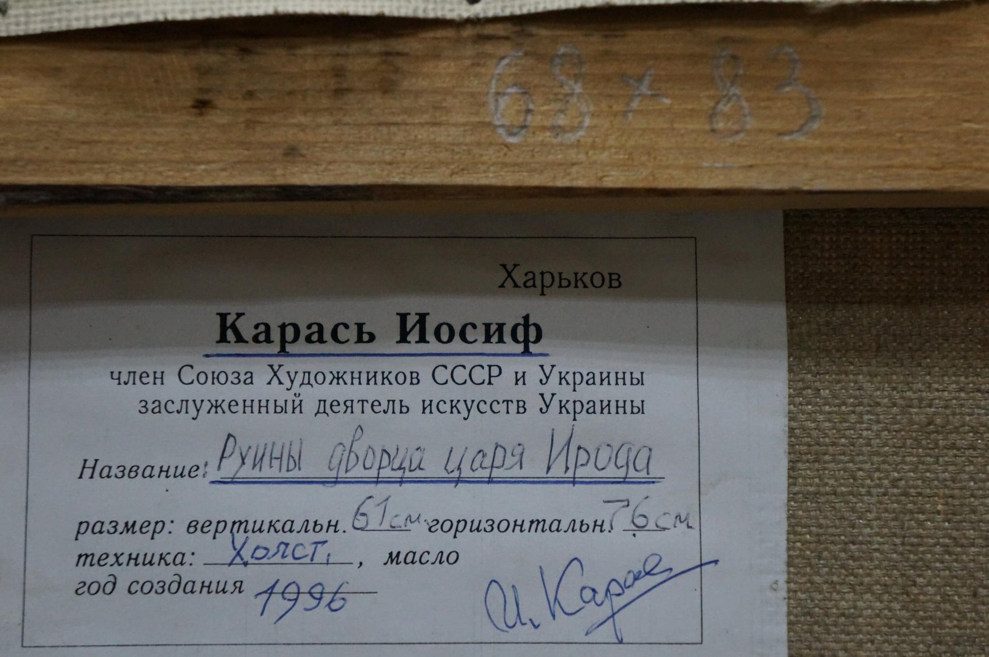 About the artist: Born on October 5, 1918, in the city of Khorol (now the Poltava region). He graduated from the Kharkov Art Institute (1948). Teachers by specialty - O. Kokel, S. Prokhorov. He worked in the industry of easel painting. Member of the CPSU. Member of World War II. He was awarded the Order of the Red Star and medals. Participated in exhibitions: republican (since 1949), all-union (since 1951). Major works: “In the Frontline Forest” (1958); "Haymaking" (1960); “Native Fields” (1960 - 1961); “Fields are endless” (1964); “Rodne banners” (1967 - 1968) and others. He lived and worked in the city of Kharkov. He died in 2000.