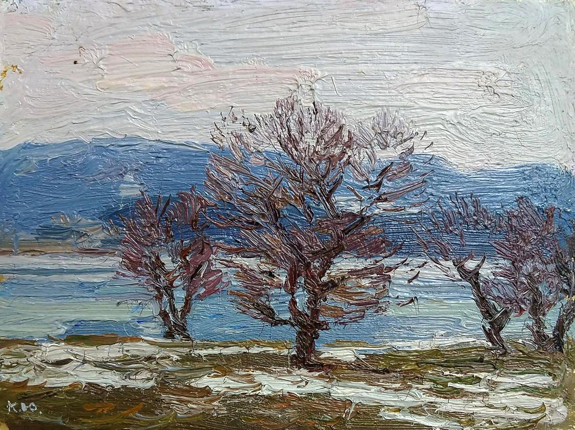 Oil painting The snow is melting Yury Konovalov