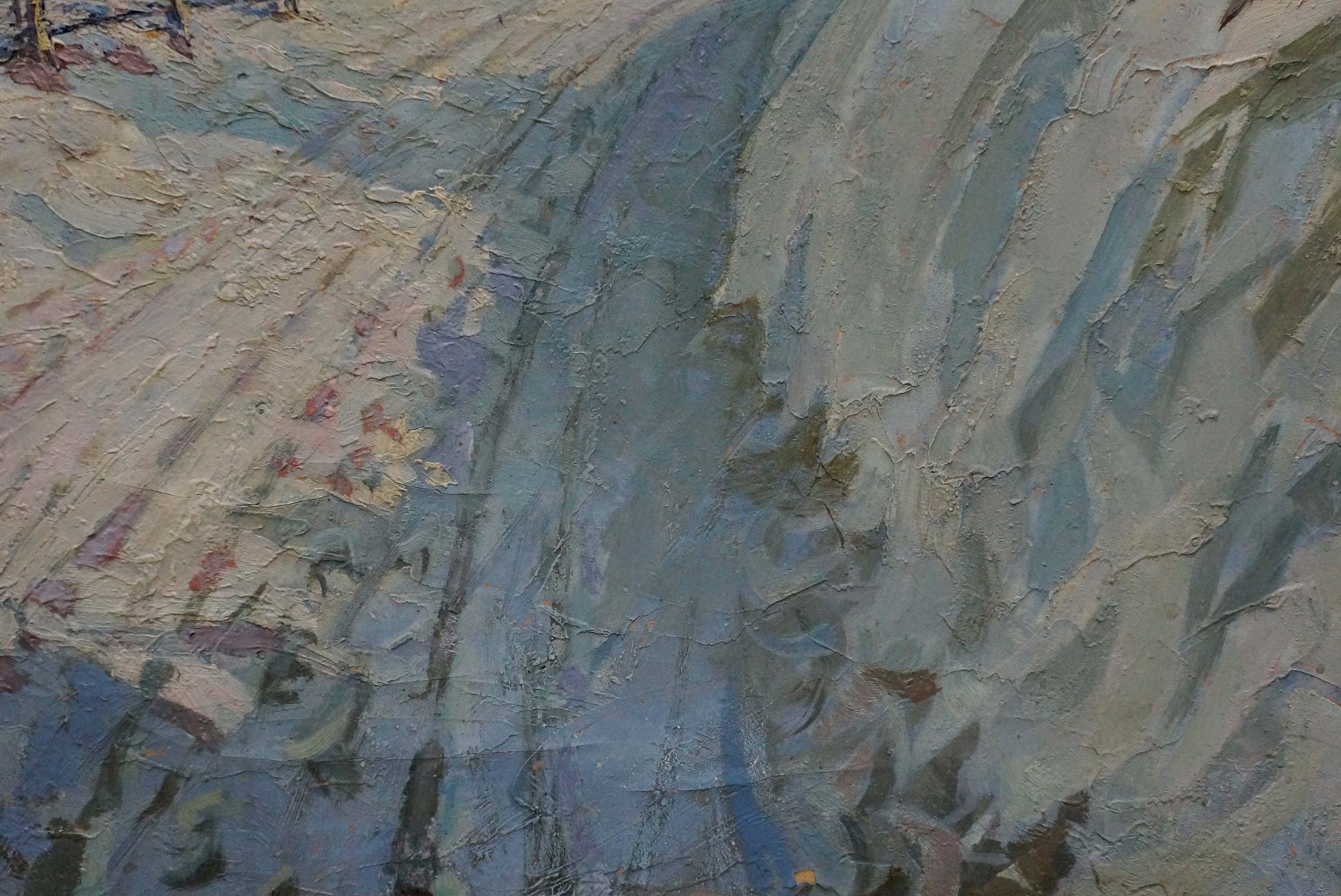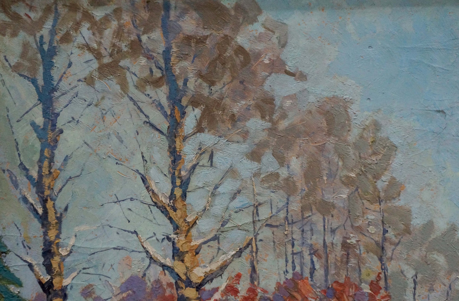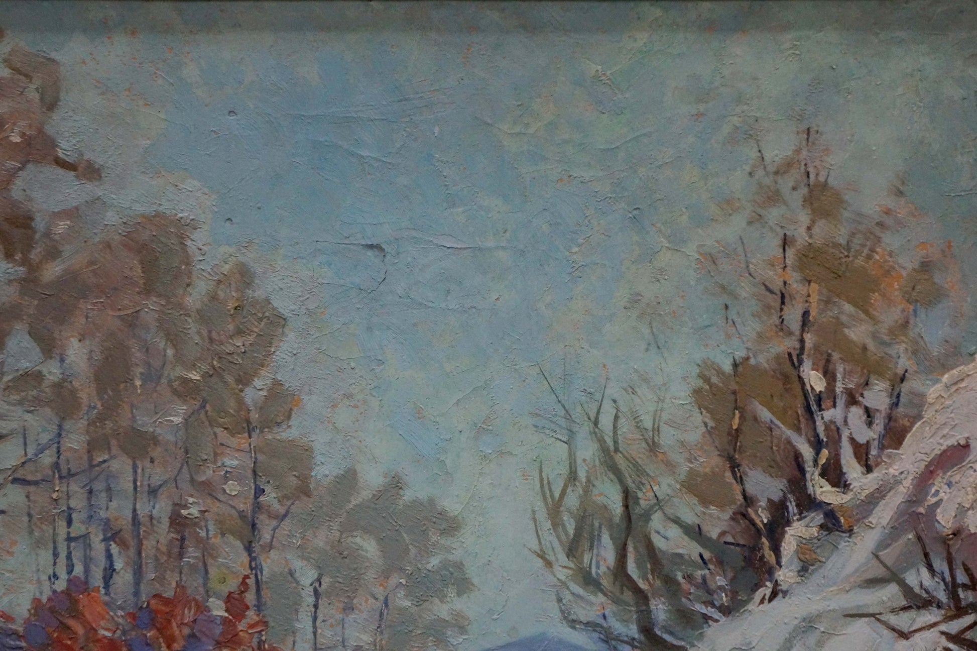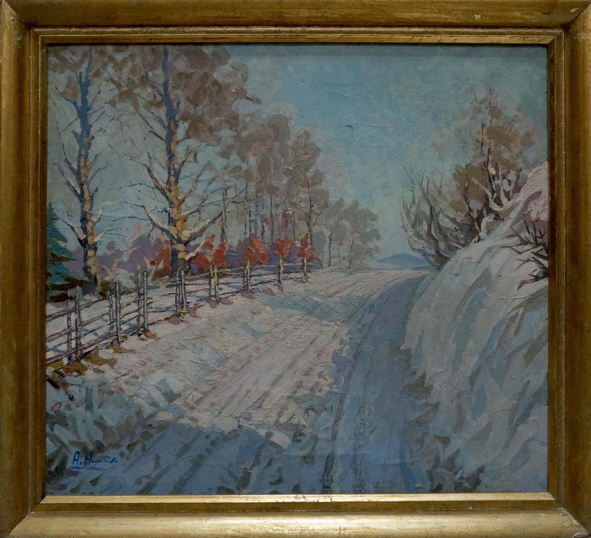 Oil painting Trees along a winter road Unknown artist