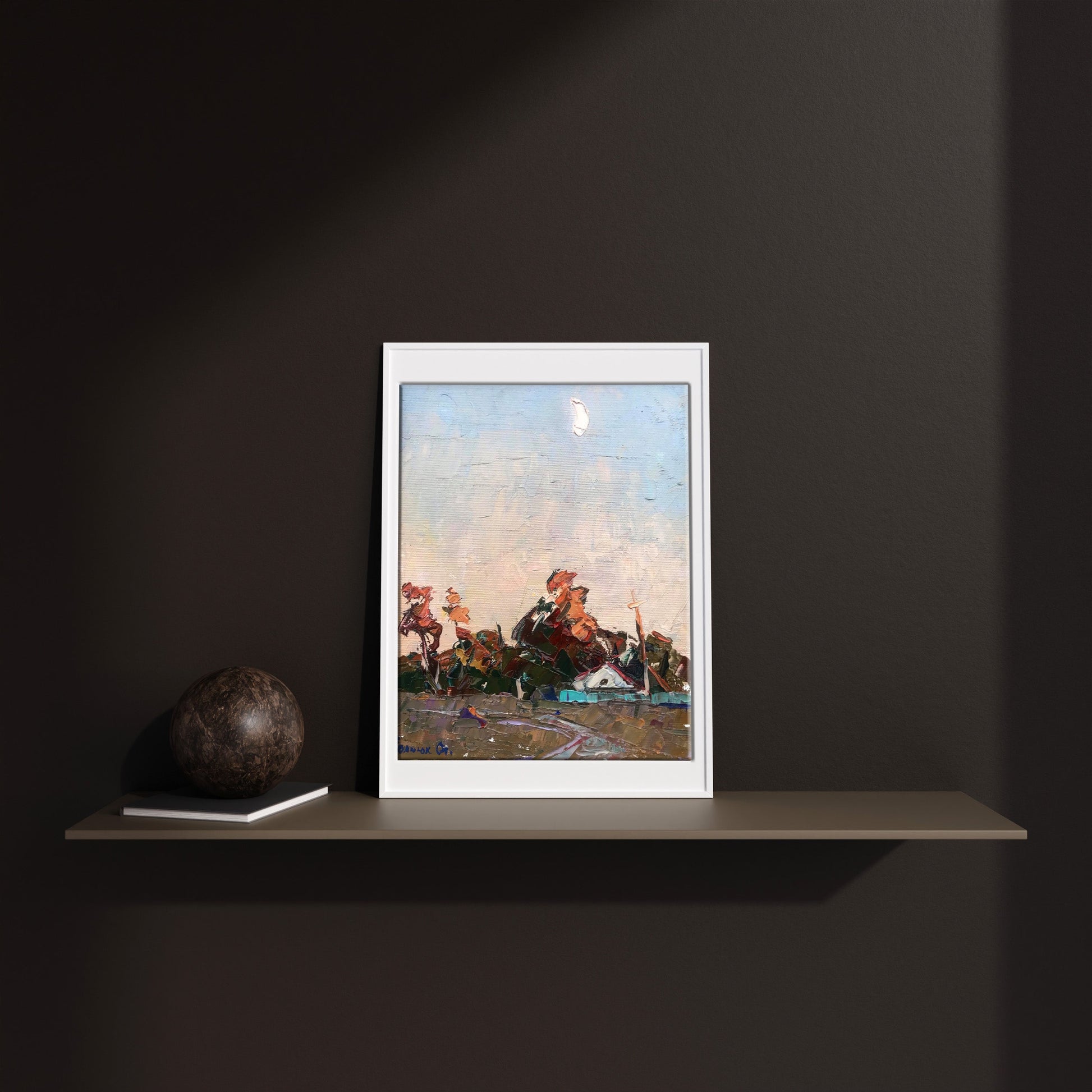 The "Twilight Colors Over the Countryside" oil painting is a beautiful and tranquil work of art. The idyllic scene shows a road winding through a field towards a distant village, with the sky gradually darkening as evening falls. The painting is sure to bring a sense of peace and calm to any home or office, making it the perfect choice for anyone looking to add a touch of beauty to their space.