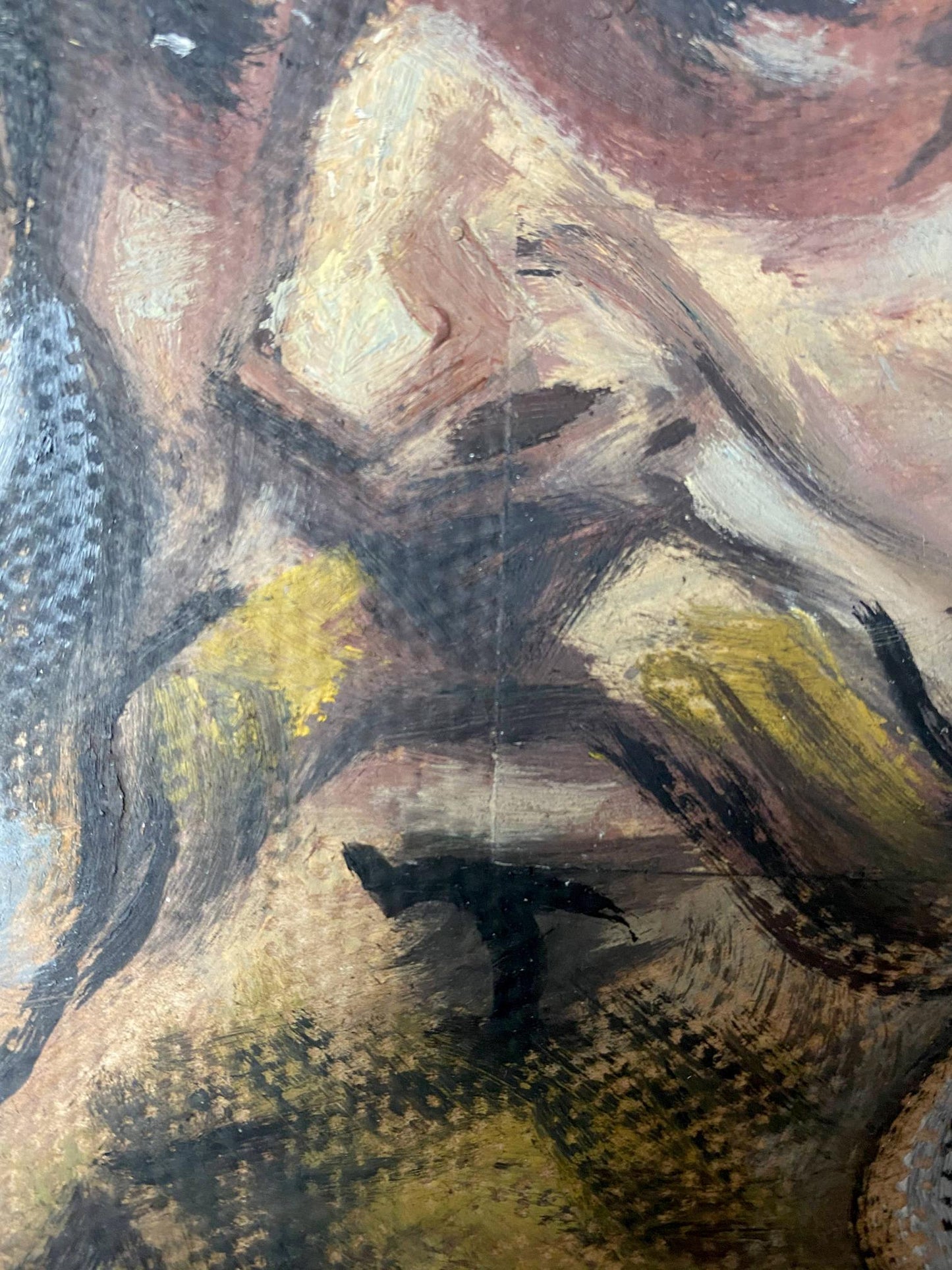 The oil painting titled "Warrior" is a captivating piece crafted by Alexander Arkadievich Litvinov. It measures 21.5x27.5 cm (8.46x10.82 inches) and is created on cardboard using oil as the medium. This painting is an original piece from the collection, meticulously hand-painted by the artist. Oil portrait "Warrior" is a profound expression of strength and valor, captured in oil on cardboard by the talented Alexander Arkadievich Litvinov. This original artwork from our collection embodies the essence of the warrior spirit, showcasing Litvinov's exceptional ability to convey the depth of character and the complexities of the human spirit through his art. The painting draws viewers into a moment of contemplation, reflecting on the virtues of courage and resilience. There are other genres of painting in our catalog.