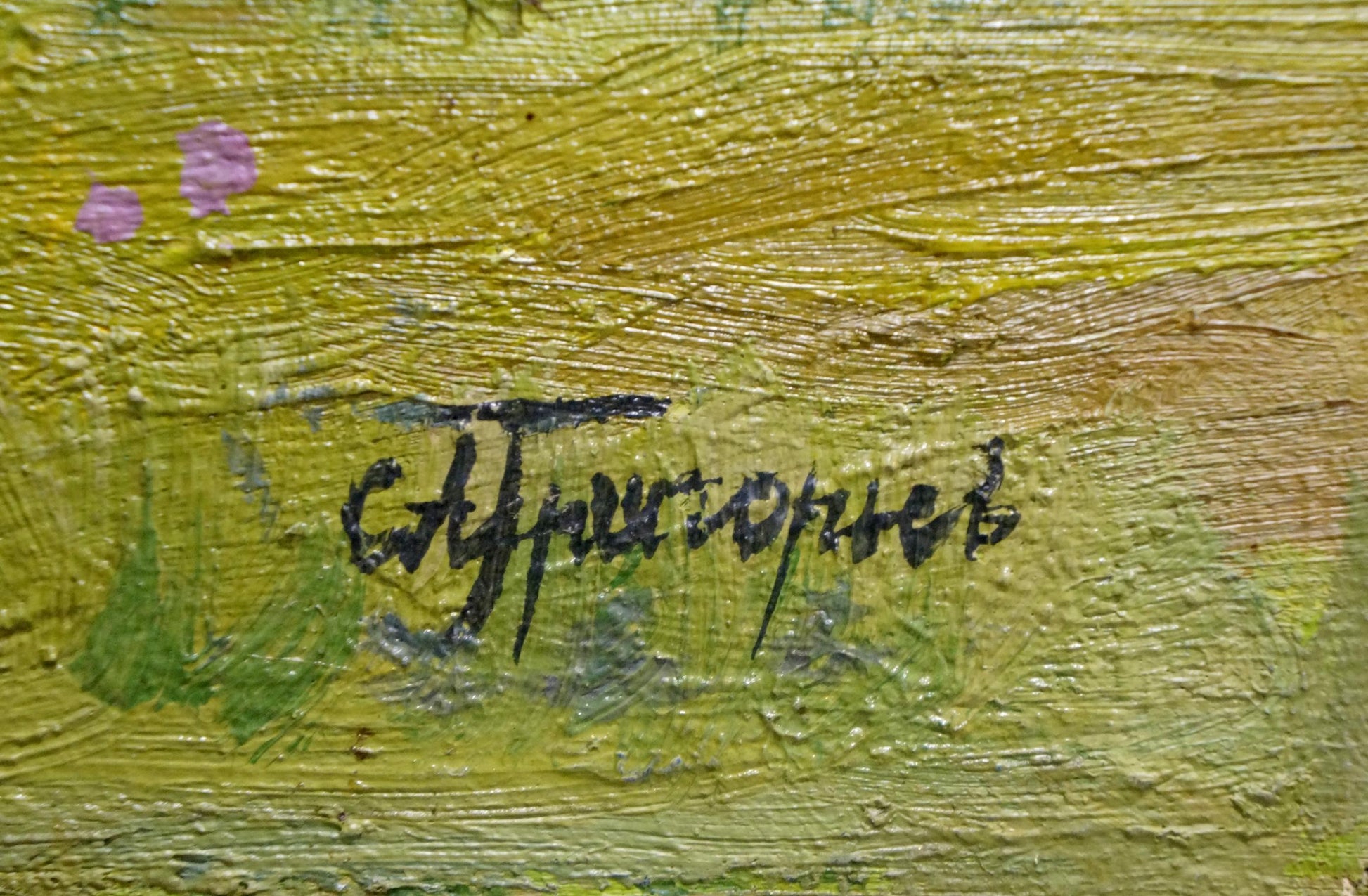 About the artist: Outstanding Soviet Ukrainian painter. People's Artist of the USSR. Laureate of two Stalin Prizes. Full member of the USSR Academy of Arts. Master of the genre painting. Grigoryev Sergey Alekseevich was born in Ukraine in the city of Lugansk on June 22 (old style on July 5), 1910, in the family of Alexei Vasilievich Grigoryev, a railway employee. A year later, the Grigoriev family moved to Zaporozhye, where he studied at the Zaporozhye art school from the age of 13 until 1926. He studied at the Zaporizhzhya art and professional school (1923-1926), at VKHUTEMAS in the workshop of V. A. Favorsky (1926-1927). The young artist showed a great love for drawing and painting, his dream was to enter the Leningrad Academy of Arts, but the teachers did not see the future talented artist in the young guy. Leaving Leningrad later in 1928 he entered the State Art Institute in Kiev, where he subsequently received the specialty of a graphic artist (1928-1932), studied with F. Krichevsky. Even while studying at the institute, he enters into a student creative association called the Union of Young Artists of Ukraine (1929). After graduating from the institute in 1932, the artist moved to the city of Kharkov, where he was hired by the Mistetstvo publishing house. Here are some of the works of the young artist, mostly these were posters: “Give the country bread”, “Leaders of Donbass”, “Komsomol” and others. S. Grigoriev works as a teacher, exhibits his works at exhibitions, (one of them in Poland in 1933), assists at the Faculty of Painting and Graphics at the Art Institute in Kharkov. In 1934, he moved to Kiev and was appointed assistant professor at the Kiev Art Institute. From 1938 to 1939, he fruitfully participated in exhibitions, where he presented the works “Skier”, “Children on the Beach’ ”,“ Bayanist ”,“ Mayevka ”, Episode of Youth” and others. In 1939, the artist was called up for military service, where he is partially engaged in design activities and at the same time creates the picture "Children's Music School". During the war he was a political worker, despite the fact that he was in the army until 1946, he never came up with the idea of creating paintings on military subjects. In 1947 he was awarded the title of professor, he heads the department of drawing at the Kiev Art Institute and creates his own works, such as "Portrait of Marshal Konev I. S". and “At the meeting” Since 1950, for 3 years he has been participating in all-Union exhibition activities, working in the nomination committee of the Stalin Prizes in the field of fine art, literature and architecture. In the same year he created the painting “Discussion of the Two”. In 1951 to 1955, Grigoryev was appointed rector of the KGHI, he runs a workshop of genre painting. He is also elected as a deputy, participates in the district council of deputies of Kiev. From 1952 to 1957, he was acting head of painting from the Ukrainian SSR. In 1954 he creates the painting "Returned." Since 1953, a member of the correspondent. In 1958, he was an active member of the Academy of Arts of the Soviet Union. In 1960, the painting “Parents' Meeting” was created in which his daughter posed for the image of a young teacher. Also in the 60s, he was equipped with a workshop in the village of Koncha-Ozernaya, where the painter painted various landscapes and a number of portraits. In 1973, a personal exhibition opens with the artist's works in Kiev. In 1987, Grigoryev again participated in the Republican exhibition in Kiev. On April 9, 1988, S. Grigoriev died, he was buried in the Baykovsky cemetery in Kiev. As you can see the track record from the biography of the artist Sergei Grigoriev is quite multifaceted and fruitful, thanks to the merits and talent of the artist, he was respected and respected everywhere and many important posts trusted him. Many of his colleagues could envy his career growth. Sergey Grigoryev lived his creative life not in vain, he created many paintings and graphic works, created a huge number of monographs, posters, reflecting the reality in which he lived and worked for the benefit of Soviet people. His paintings are now in various museums in Ukraine, Russia, Bulgaria and Japan. During his work and positions, Grigoryev was awarded many awards of the Soviet era, two Stalin prizes for the paintings “Goalkeeper,” Admission to the Komsomol and “Discussion of the Two,” he was awarded the honorary title of People's Artist of the USSR and the Ukrainian SSR, as well as various medals and 3 orders. He wrote memoirs about his path “Book of Memories”.