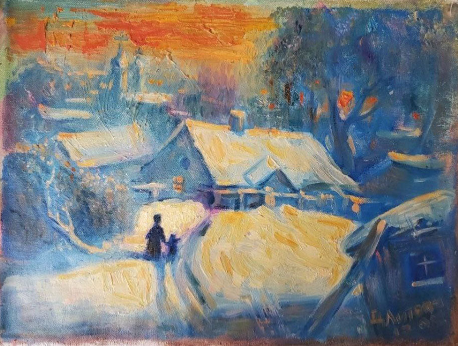 Oil painting Winter evening Litvinov Daniil Olegovich