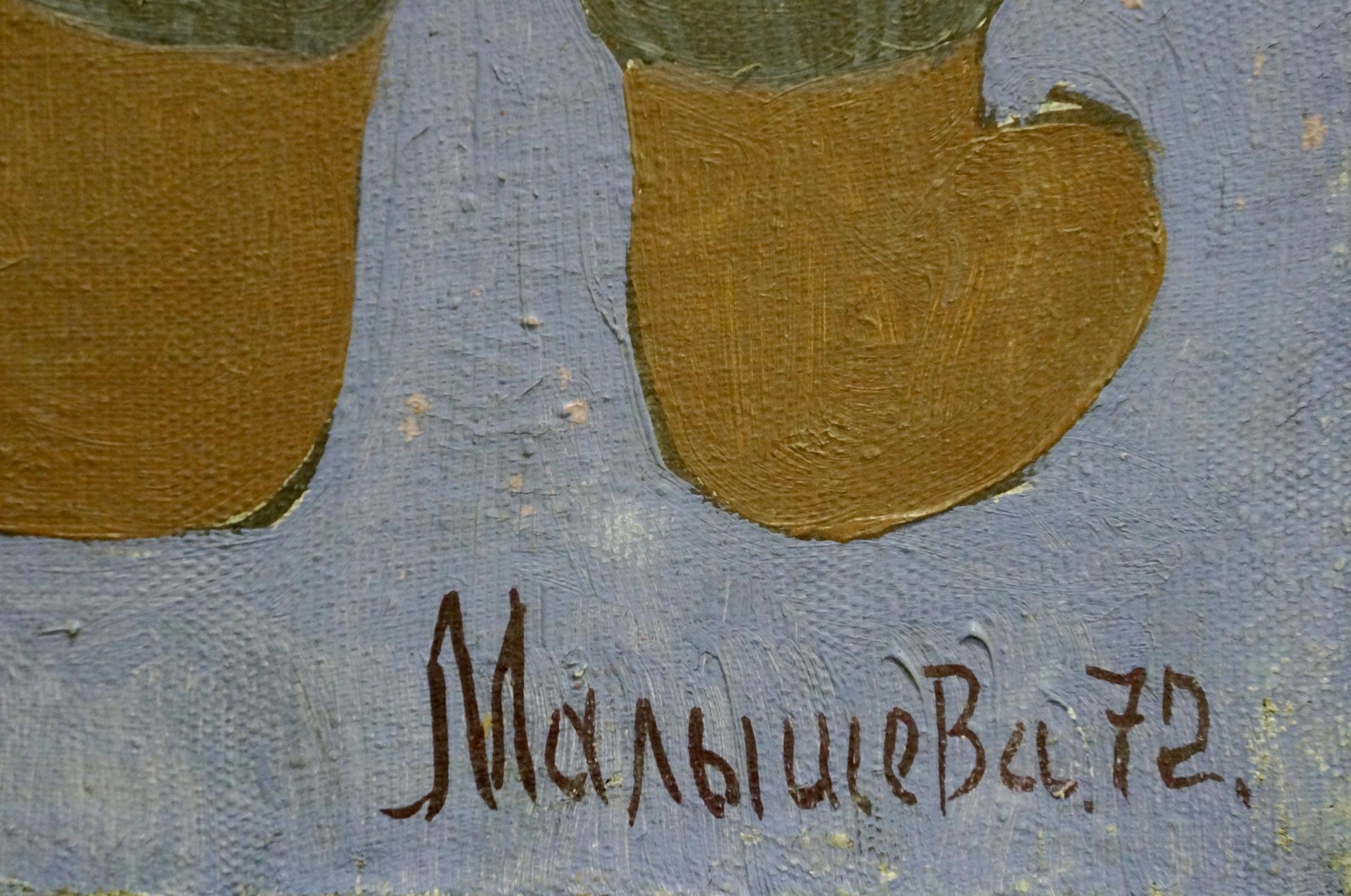 About the artist: Olga Vladimirovna Malysheva was born on February 24, 1920 in Feodosia. In 1940 she graduated from the Moscow Textile Institute, studied with L. A. Bruni and A. V. Kuprin. From 1940 to 1945 she worked in a monumental workshop at the Academy of Architecture of the USSR under the direction of L. A. Bruni.