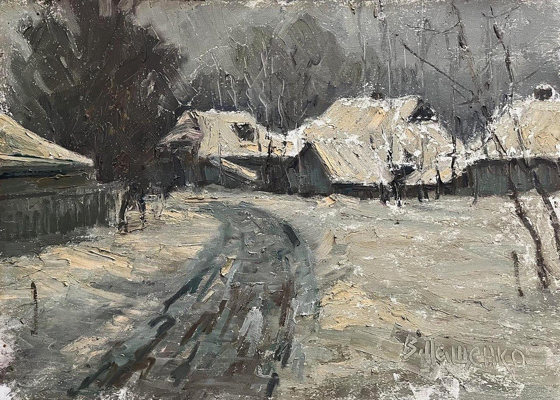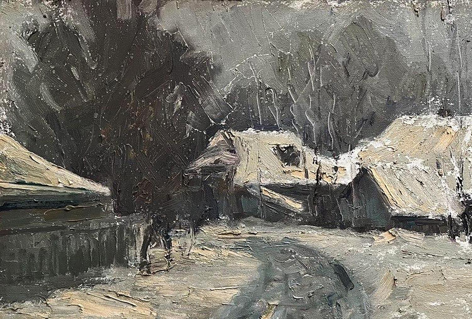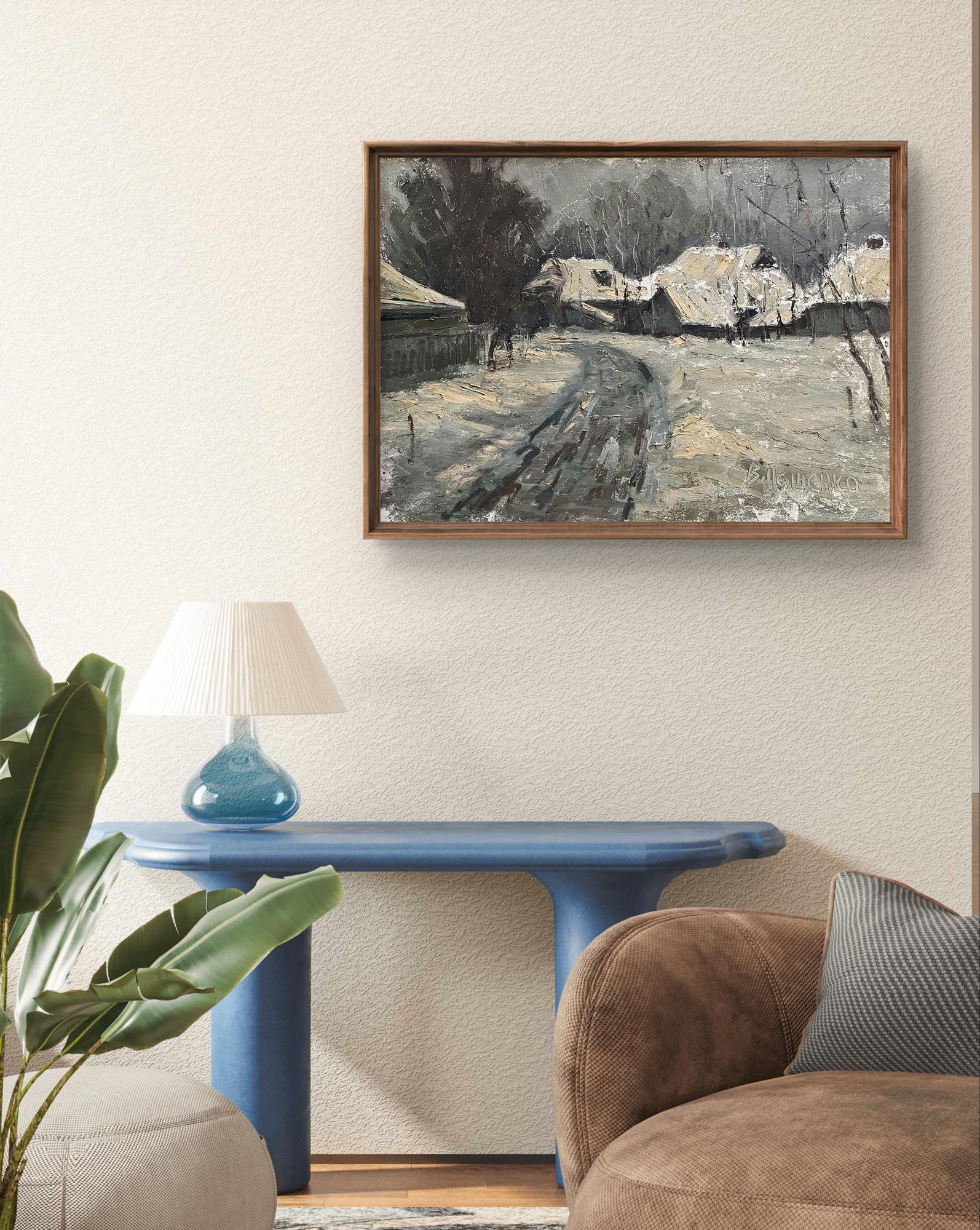 Oil painting Winter in the village Volodymyr Pashchenko