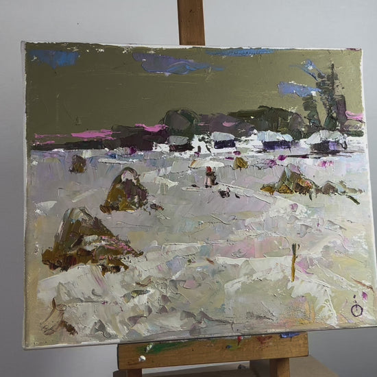 "Winter Landscape in a Field" is an exquisite oil painting by Alex Ivanyuk, renowned for his ability to capture the essence of tranquil landscapes with a masterful use of color and texture. Utilizing a bold impasto technique, Ivanyuk layers thick strokes of oil paint to create a vivid, three-dimensional effect that brings this wintry scene to life.