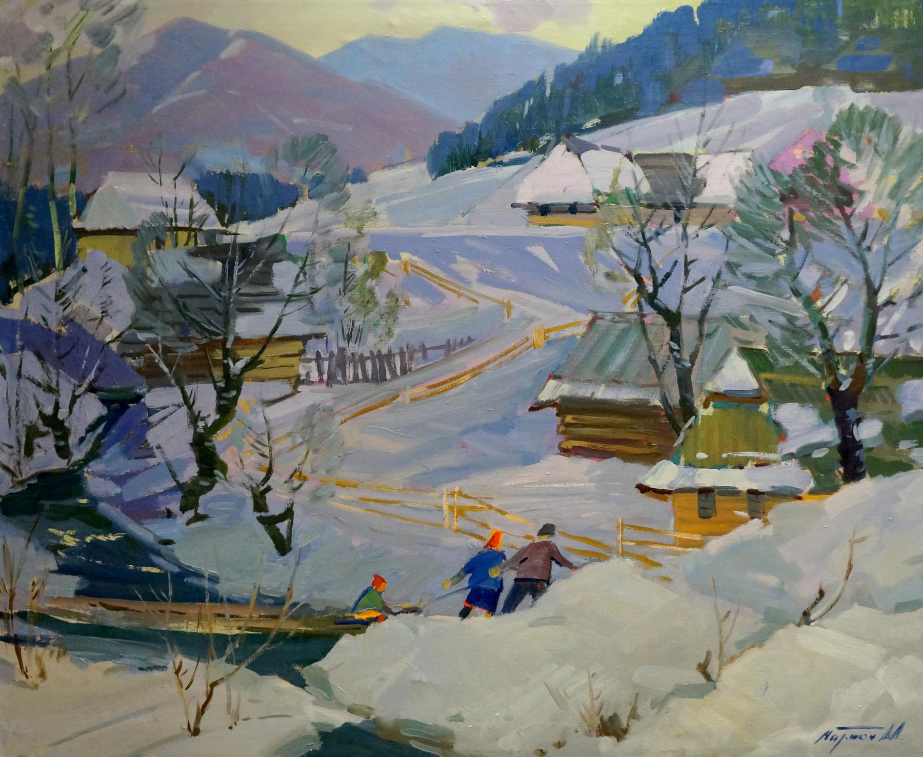 Oil painting Winter landscape in the village Marton Adalbert Aleksandrovich
