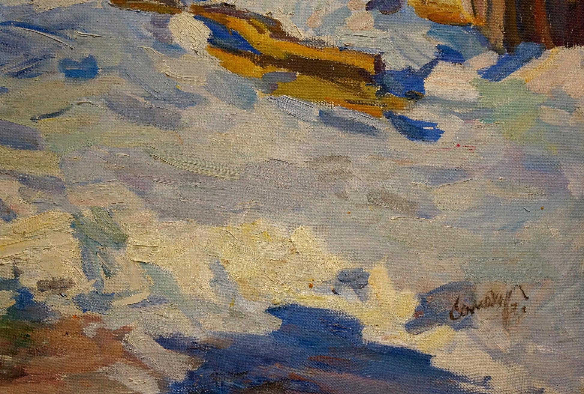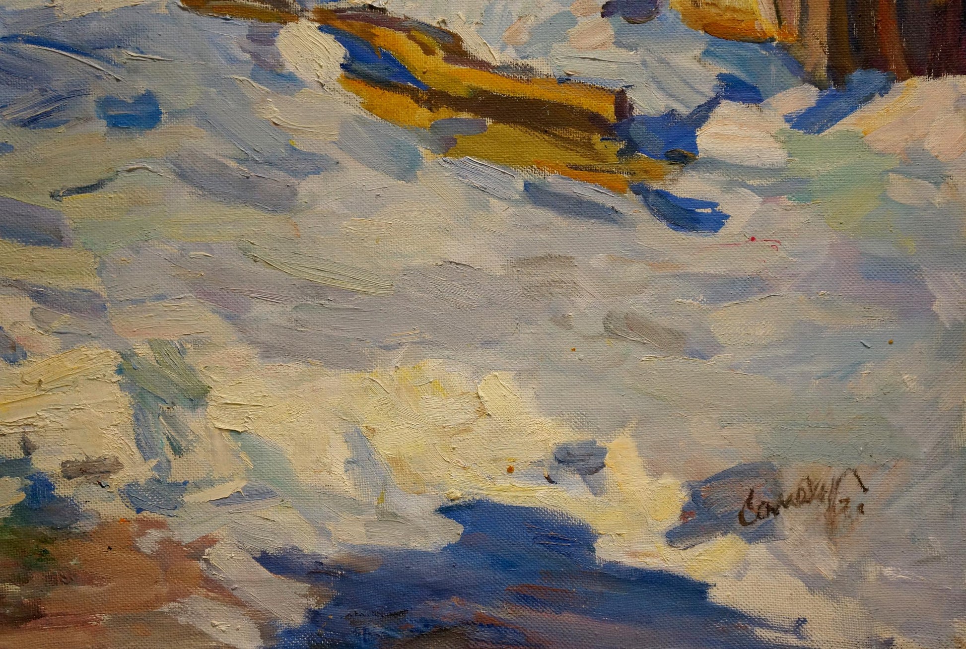 About the artist: He studied at the Academy of Arts (1914–1918), then at the Petrograd Free Art Workshops (1919–1923) with K.S. Petrova-Vodkina, D.N. Kurdova, A.A. Rylova. He was influenced by K.S. Petrova-Vodkin, with whom he traveled to Samarkand (1921). He was a member of the association "Circle of Artists", aesthetically close to the OST, and the association "October". He worked as a theater artist and book graphic artist, illustrated children's publications. For illustrations to the "History of a city" M.E. Saltykov-Shchedrin (1935) received the Grand Prix in Paris. In the 1940s Samokhvalov worked a lot as a theater artist. He designed a number of productions: “Dowry” (1935) and “Hot Heart” (1943) A.N. Ostrovsky, “Glass of Water” by E. Scribe (1943) and others. The author of the autobiographical book "My Creative Way" and the story "During the Restless Sun." The artist's works are stored in the State Tretyakov Gallery, the State Russian Museum and other museums and private collections.