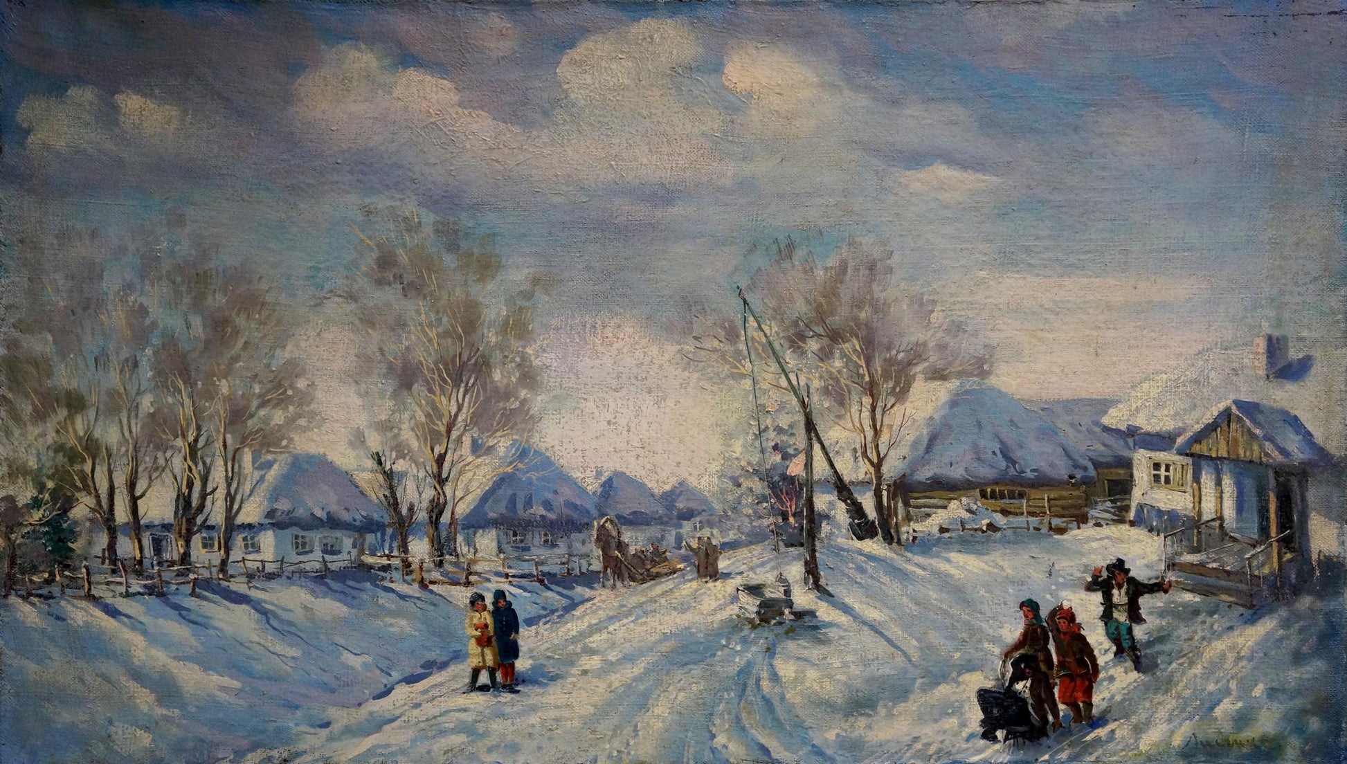 Oil painting Winter. Rural landscape Lysenko Sergey Nikolaevich