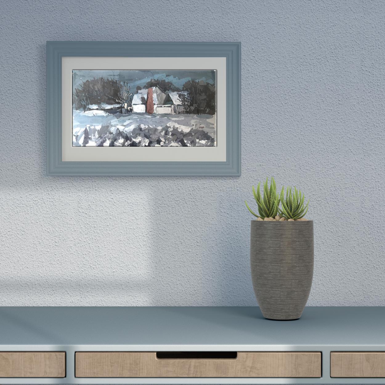 Welcome to our oil painting "Winter village landscape"! In this beautiful painting, we see a winter scene with a snowy field and a forest beyond. The village is picturesque and charming, with its quaint houses and buildings. This painting is sure to bring a touch of winter magic to any home!