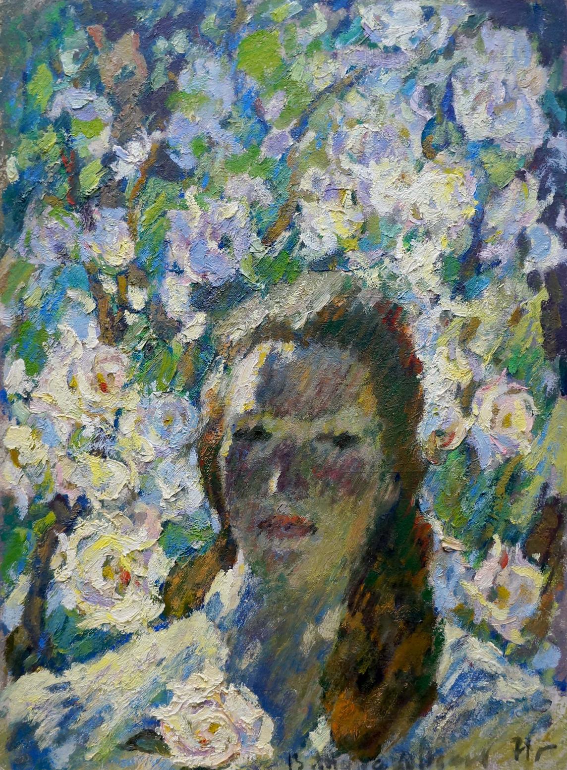 Oil painting Woman among the rose Zhurakovsky Victor Petrovich