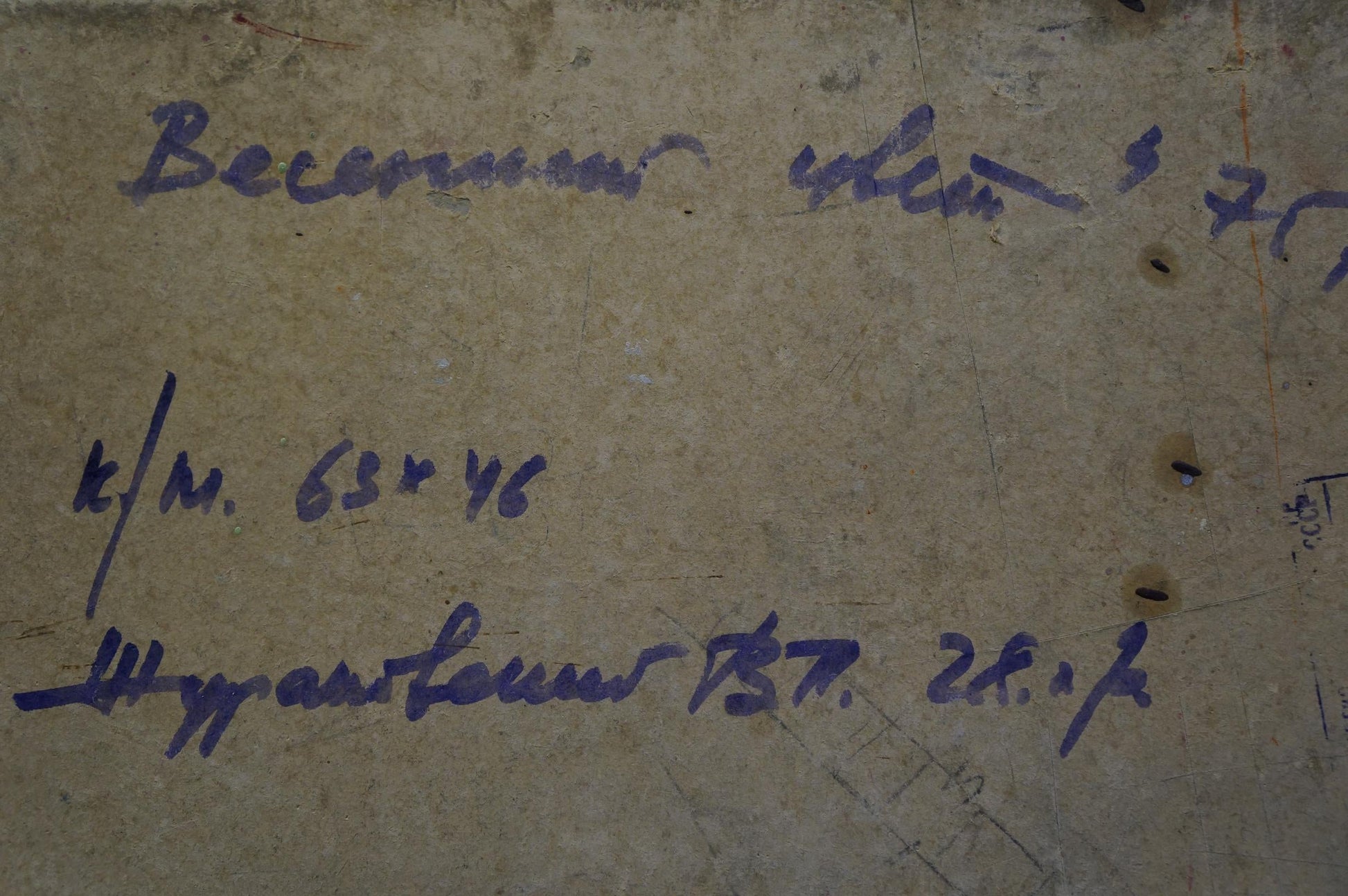 About the artist: Born May 29, 1928, in Harbin (now China). He graduated from the Odessa Art College (1952-1955). Teachers by profession - A.Muchnik, D. Frumina, M. Todorov, M. Mutselmacher. He worked in the industry of easel painting, specializing in landscapes. He participated in exhibitions of republican and all-union (since 1955). Major works: “With the catch” (1955); “Morning at the Port” (1957); Midday (1960); "Fresh Wind" (1961); "Soviet Ukraine" in the Odessa port "(1964) and others. He lived and worked in the city of Odessa. He died on September 19, 2001.
