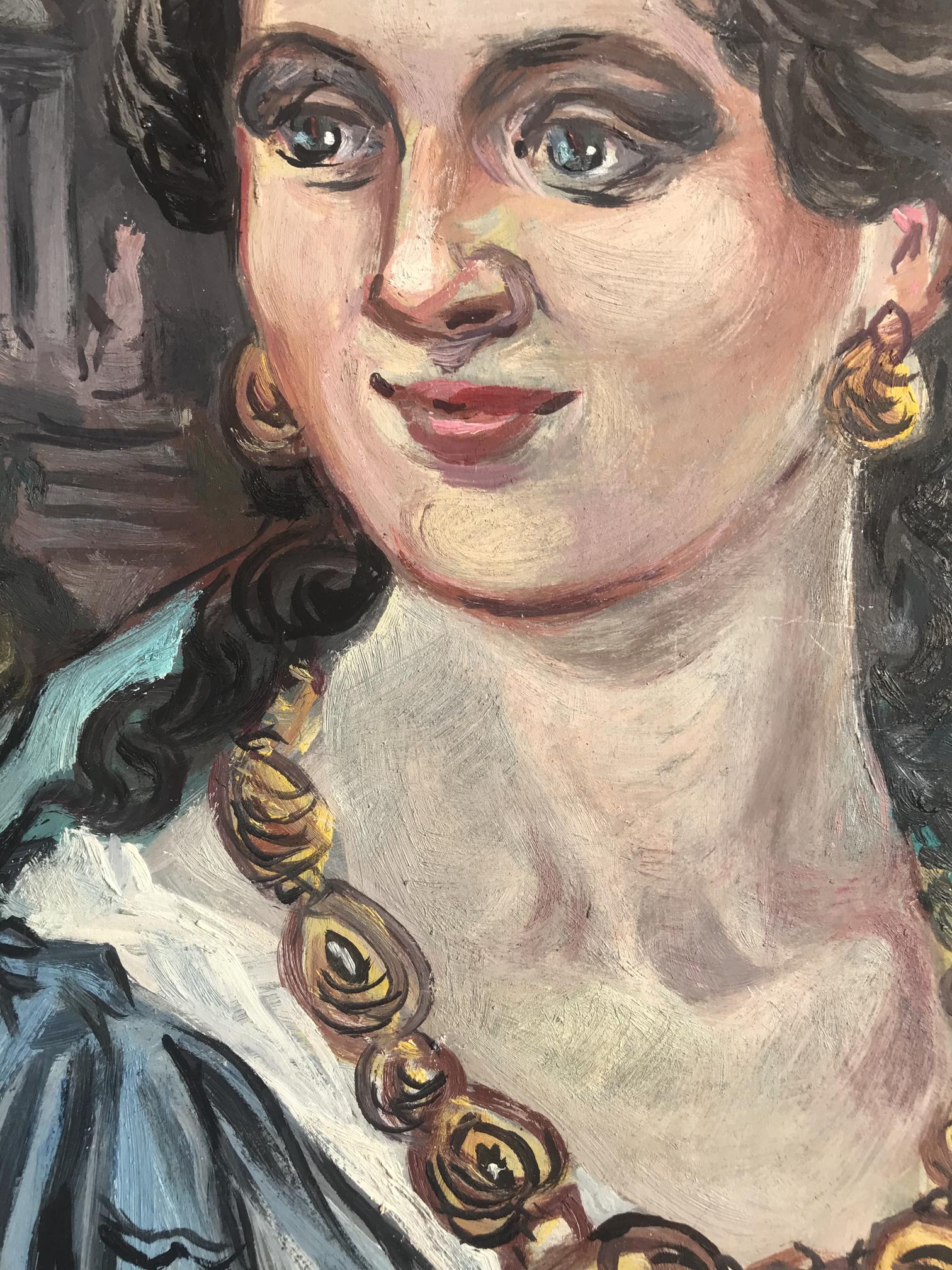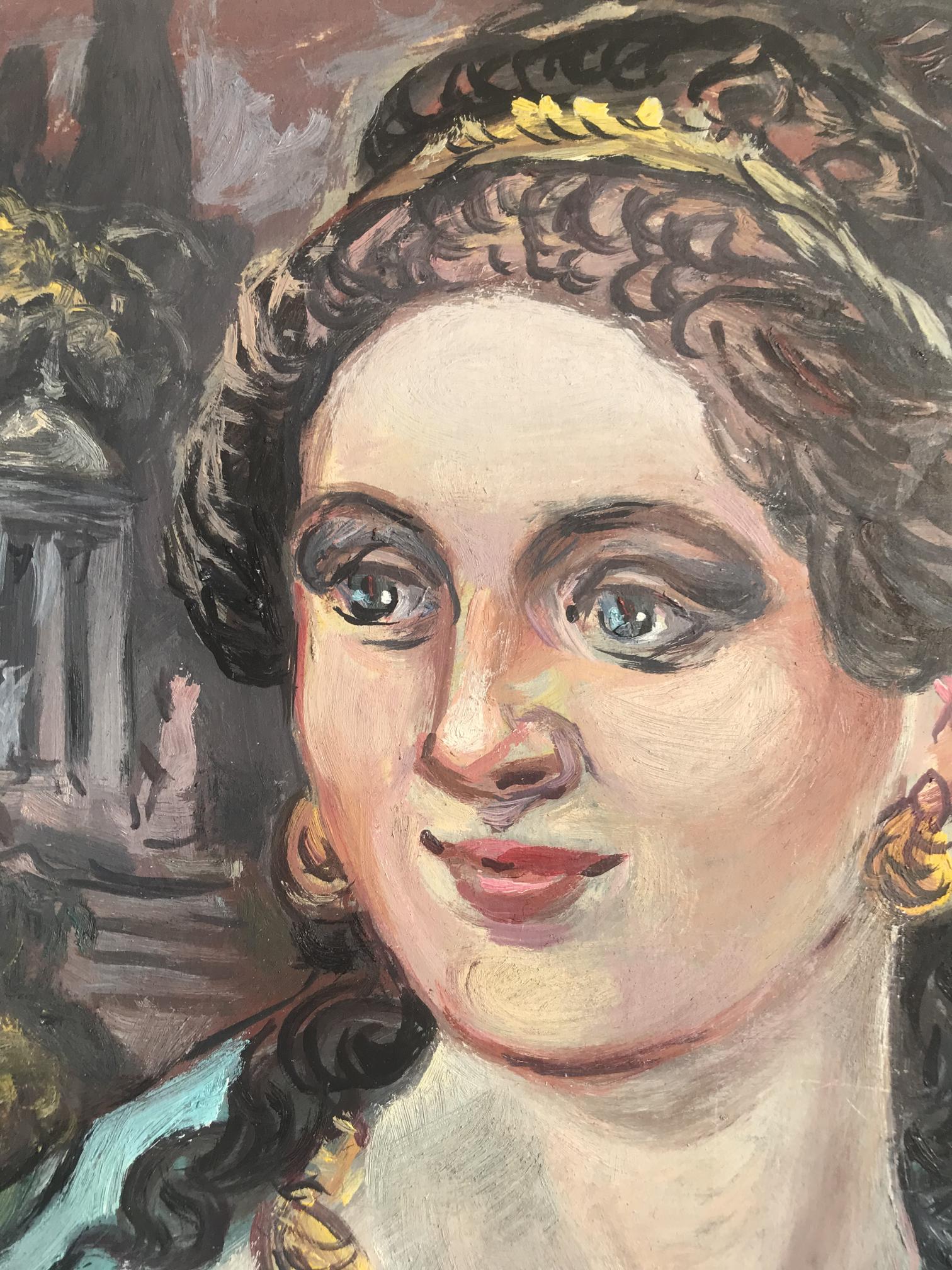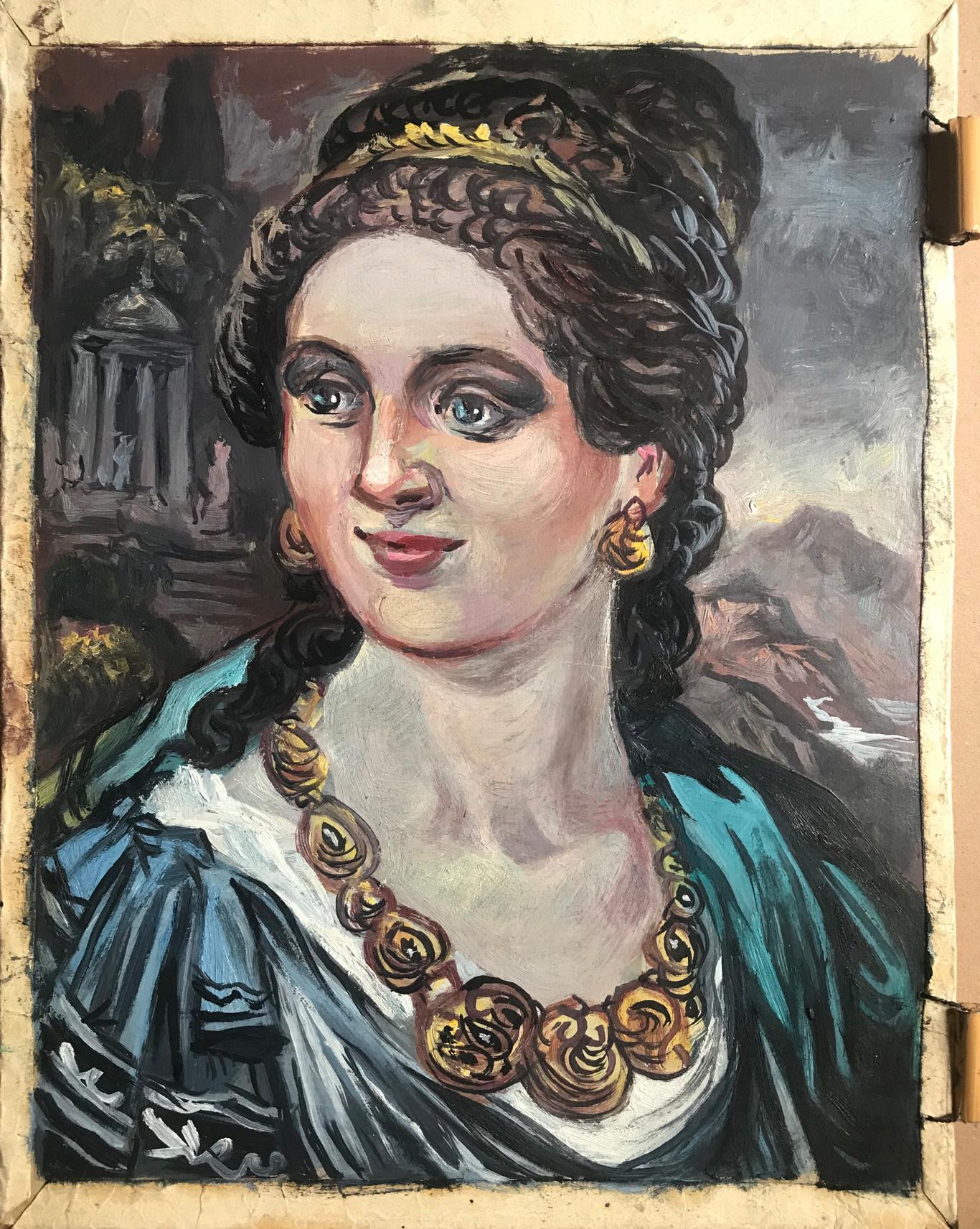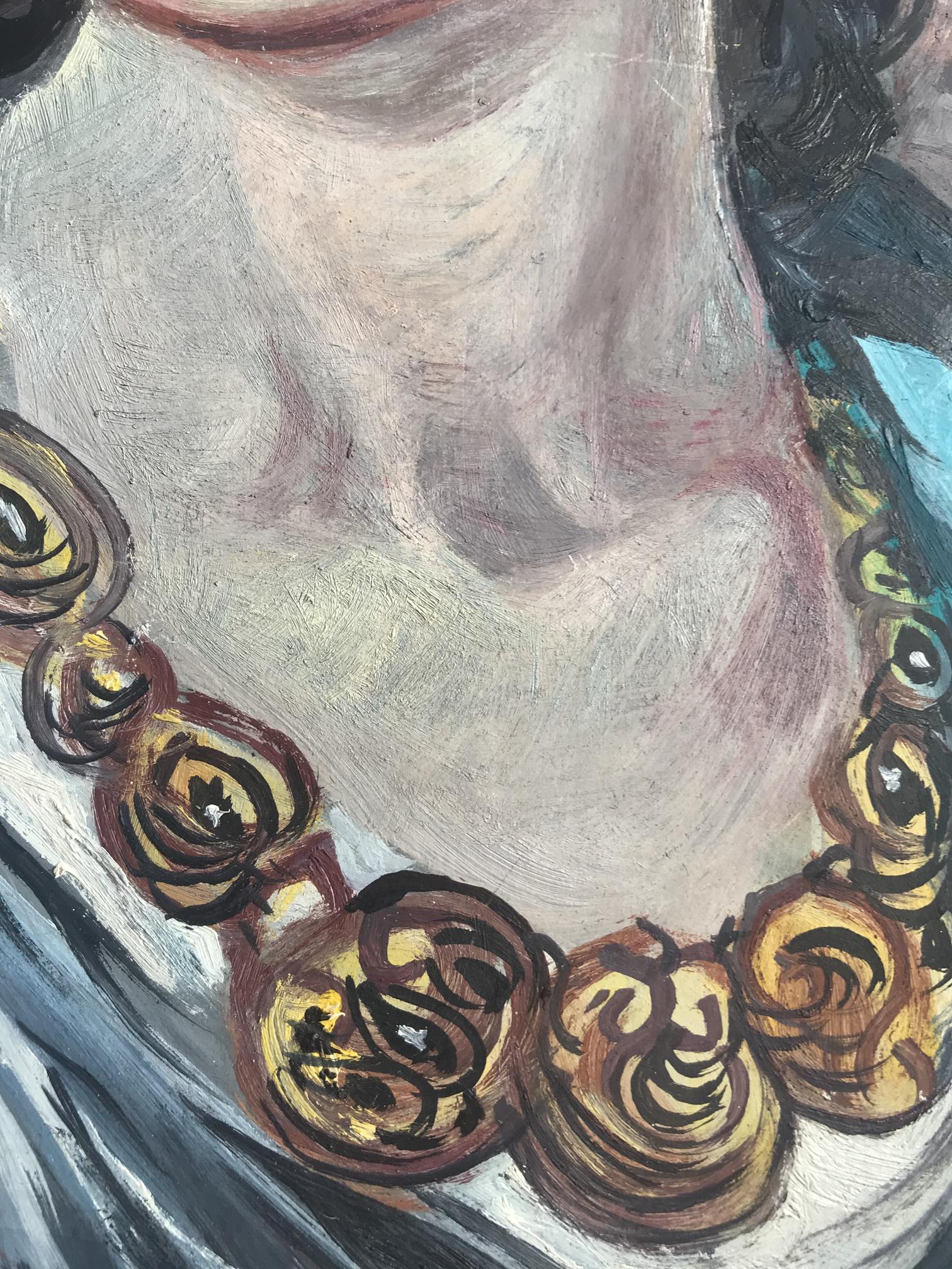 Introducing the "Woman with gold necklace" oil painting - an elegant and timeless piece that is sure to add a touch of class to any home or office. This beautiful painting features a young woman in an antique image, adorned with exquisite gold jewelry. The perfect addition to any art collection, this stunning oil painting is sure to impress anyone who sees it.