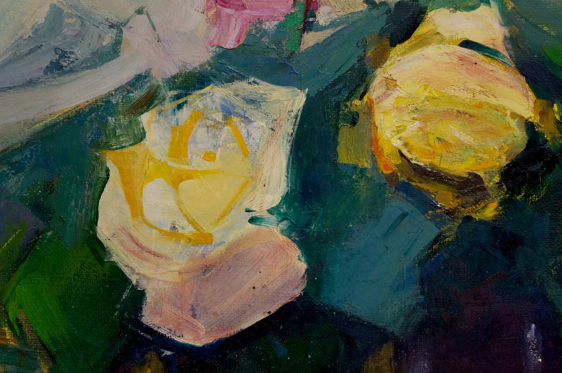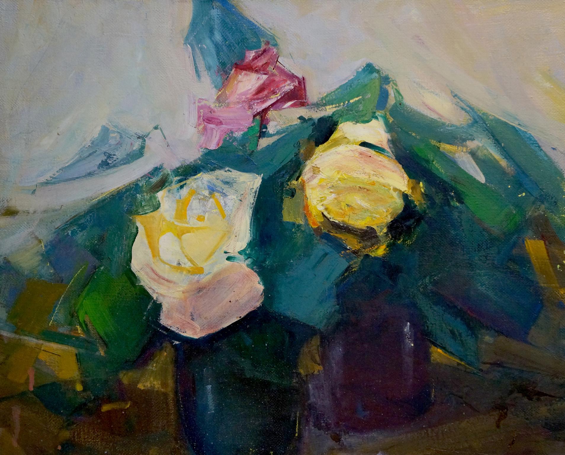 Oil painting Yellow and red roses Leonid Zaborovsky