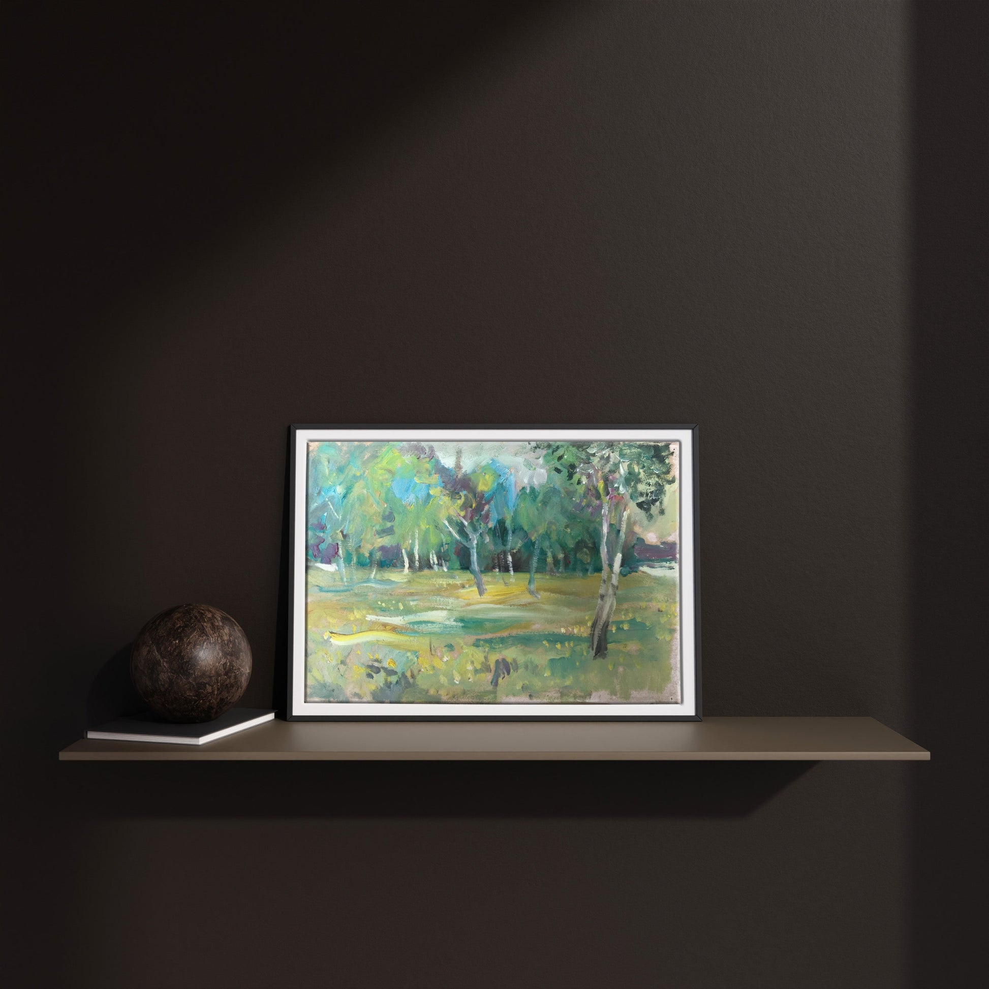 If you're looking for a breathtaking oil painting that will transport you to another world, then look no further than "Yellow flowers in the forest." Painted in shades of green and brown, this idyllic scene features a dense forest full of tall trees. The grass is a vibrant green, adding a pop of color to the painting. The light filtering through the trees creates a tranquil atmosphere, making this painting the perfect addition to any home.