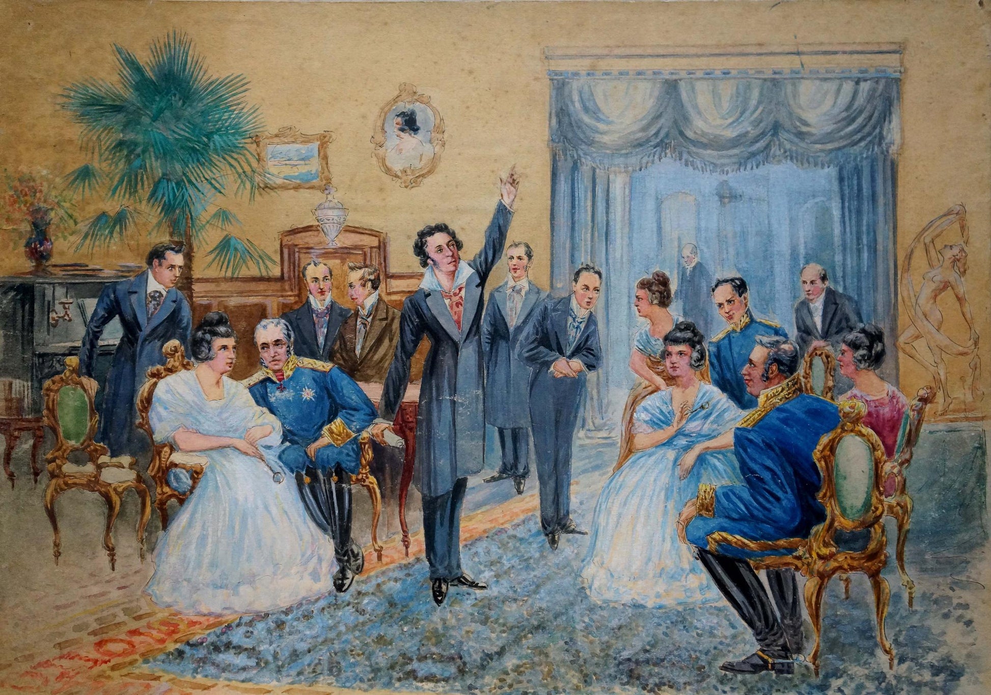 The couple worked together at times: so they both participated in the preparation of an illustrated edition of Gogol's Dead Souls (AF Marx's printing house, 1901). In one of the halls of the Vitebsk railway station (at that time - Tsarskoselsky railway station), erected in 1901-1904, the walls are decorated with panels created by them, which are dedicated to the history of the Tsarskoye Selo railway.