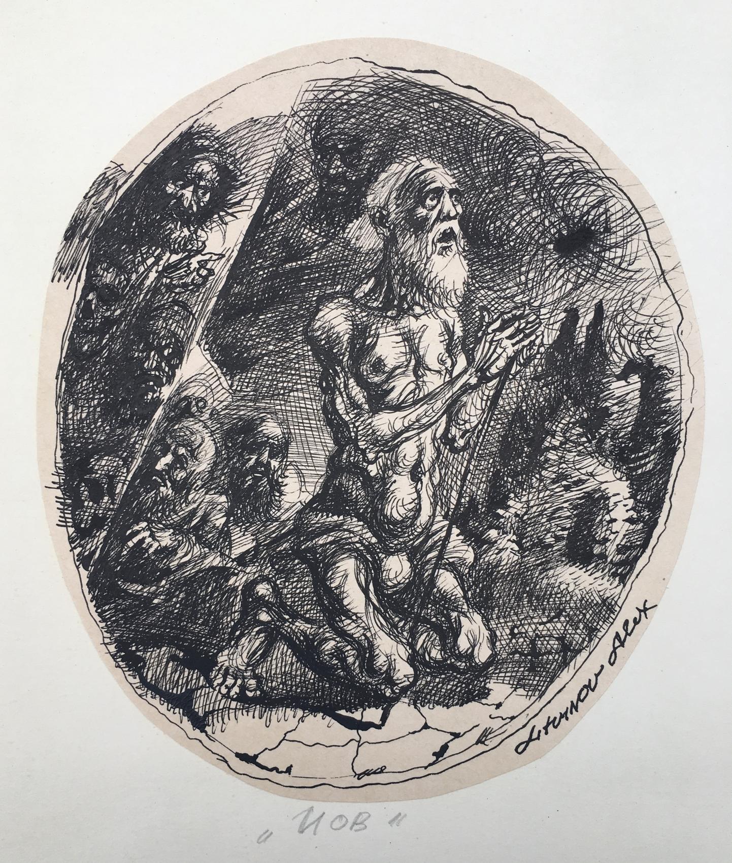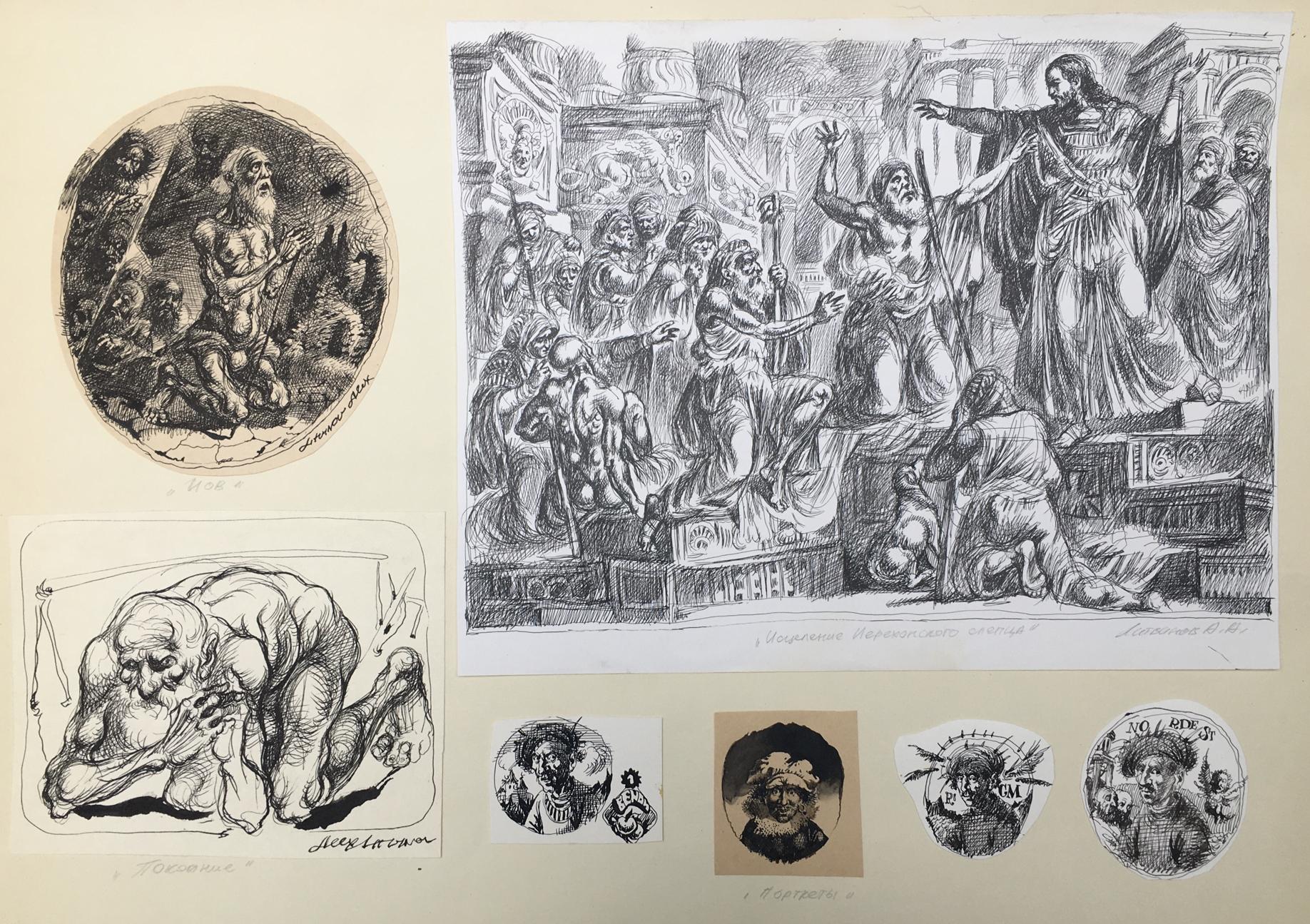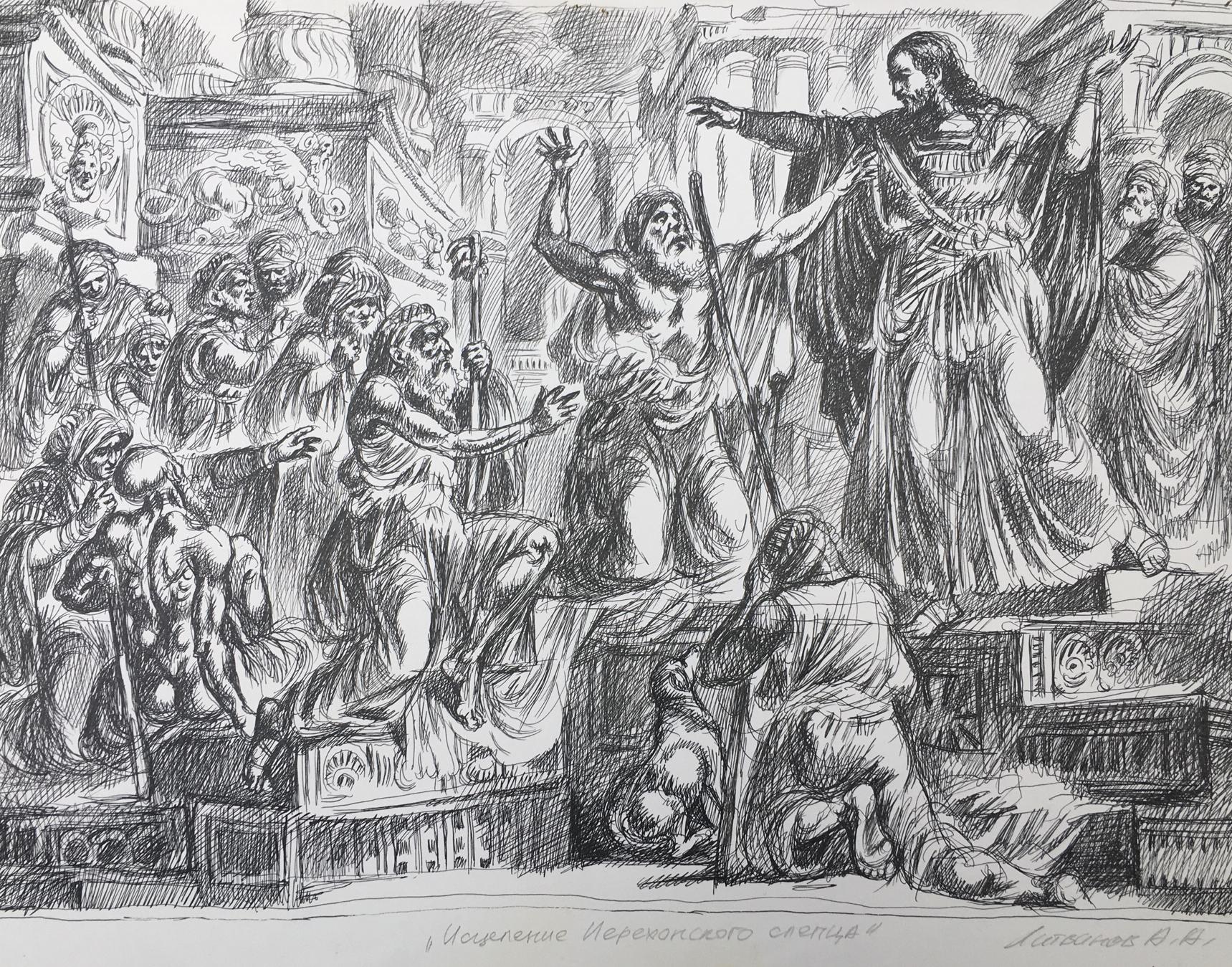 Pen and watercolor painting Healing the Blind Man of Jericho, Portraits, Job, Generation Alexander Arkadievich Litvinov